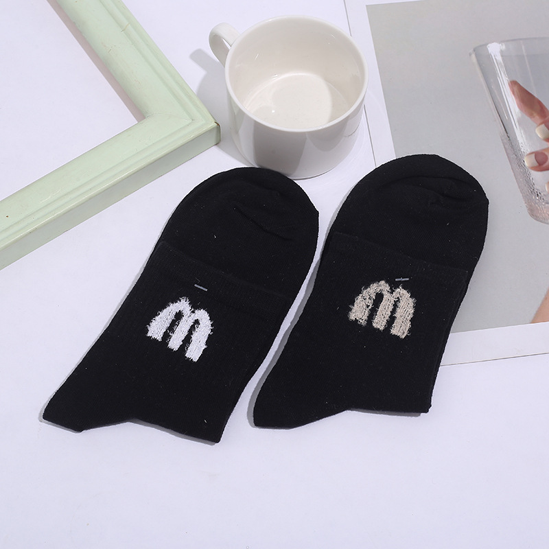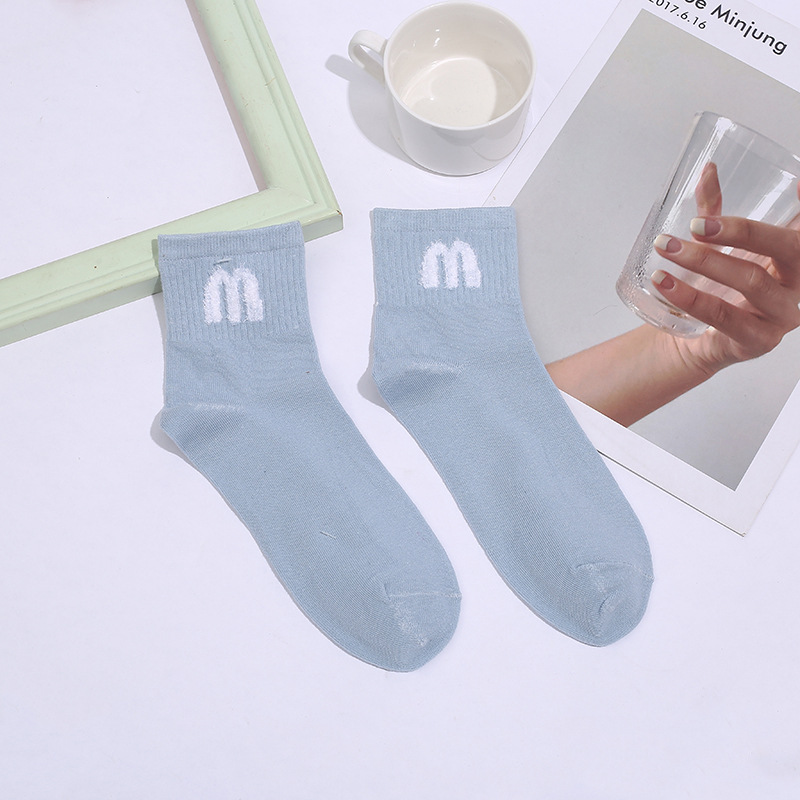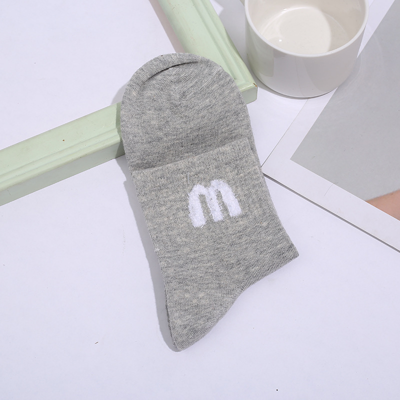 Qingna Socks Women's mid-calf socks Combed cotton spring and Summer thin women's socks Breathable, simple solid color letter women's socks
