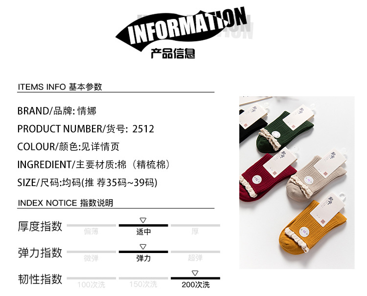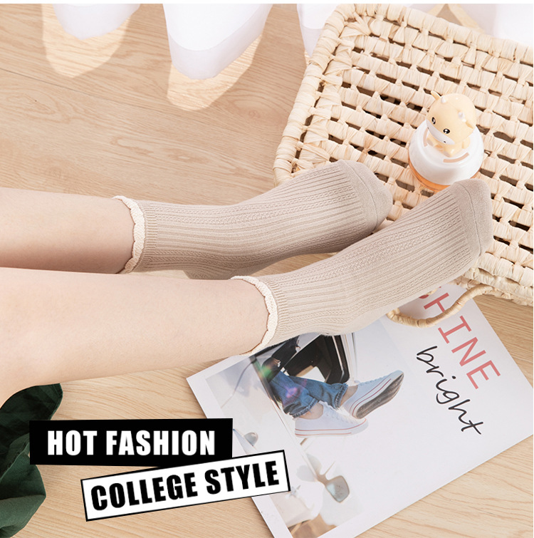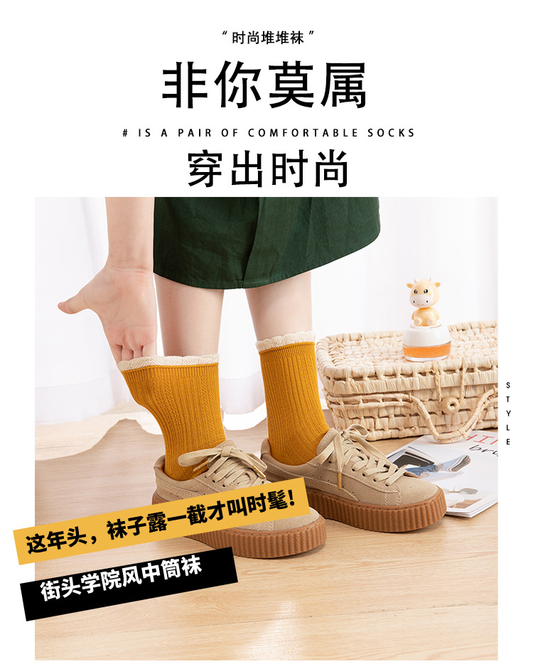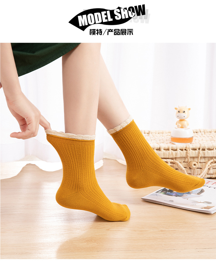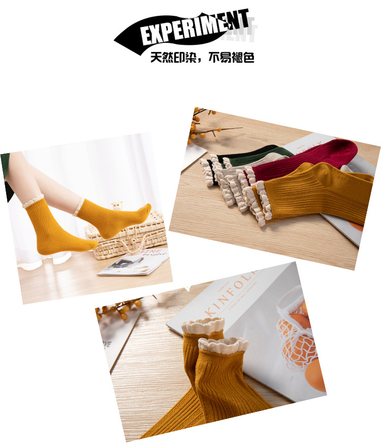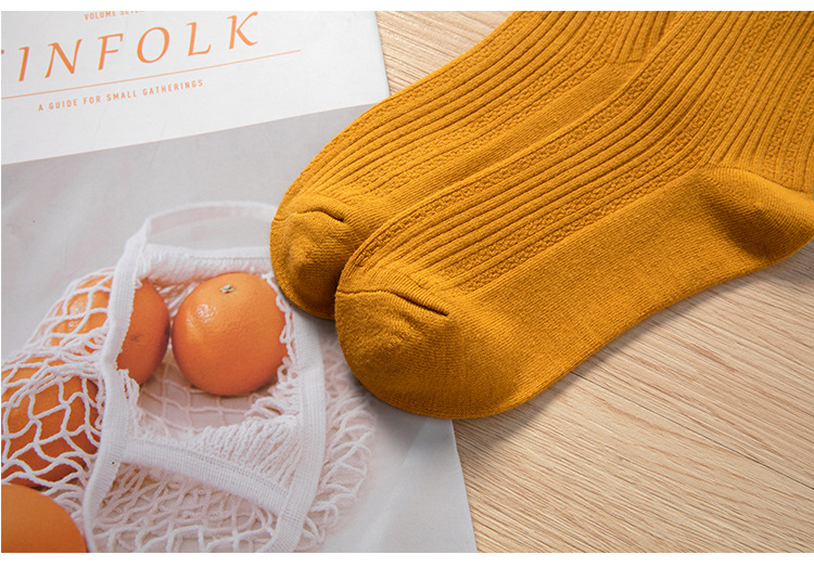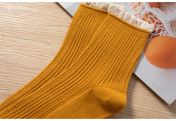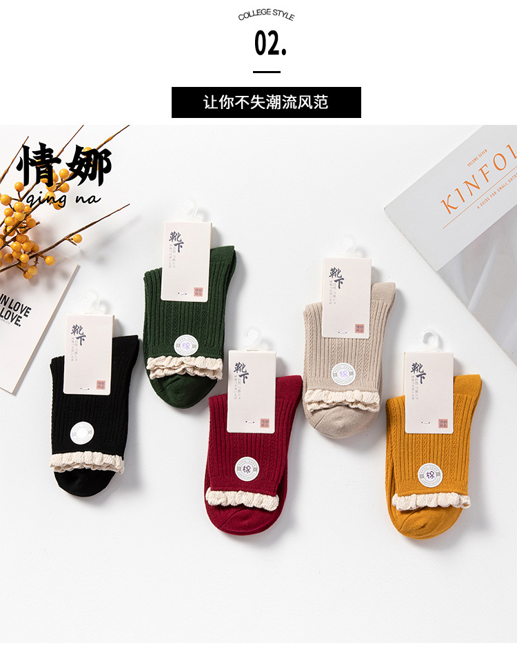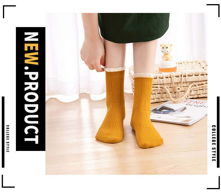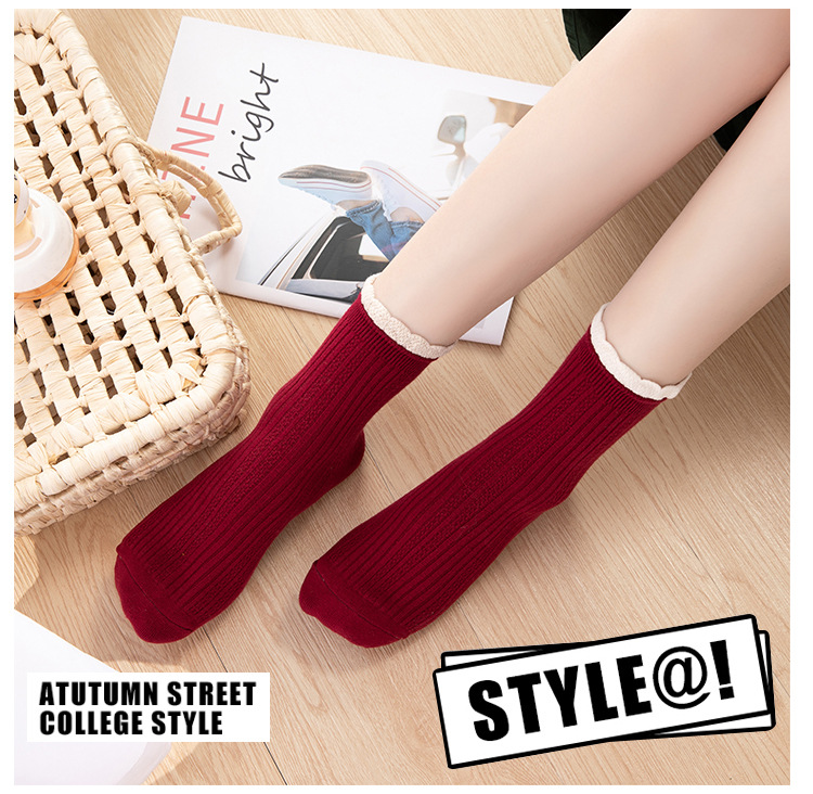 Qingna solid color socks Autumn and winter women's versatile cotton socks New Korean version ruffled candy-colored long double-needle women's socks