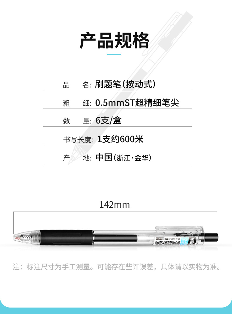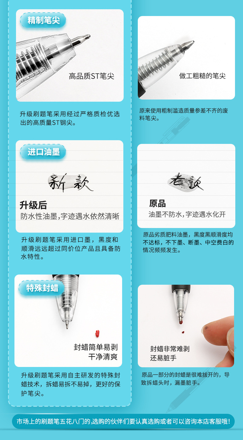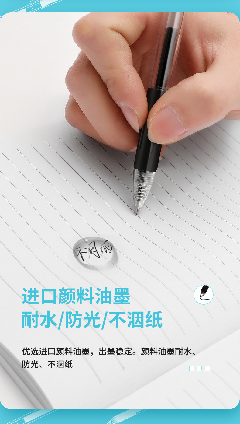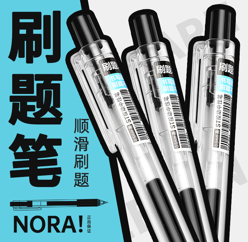 Quick-drying black pen for practice questions, 0.5-inch ballpoint pen, special for middle school students' exams, push-point pen, neutral pen wholesale