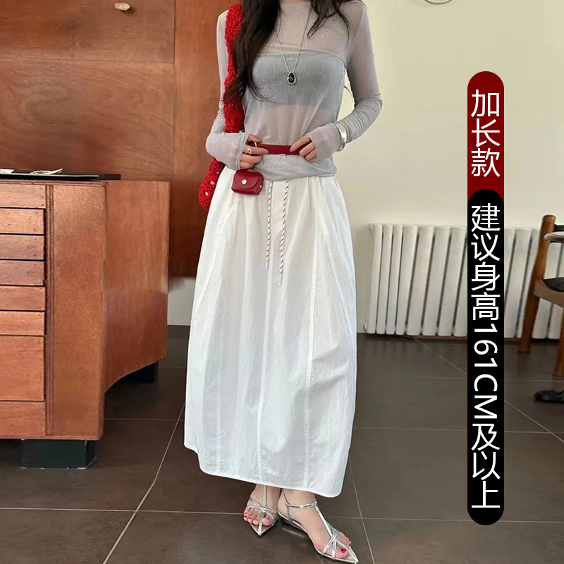Quick-drying mountain-style workwear skirt for women, new high-waisted, fluffy pumpkin skirt, drawstring A-line slimming mid-length skirt