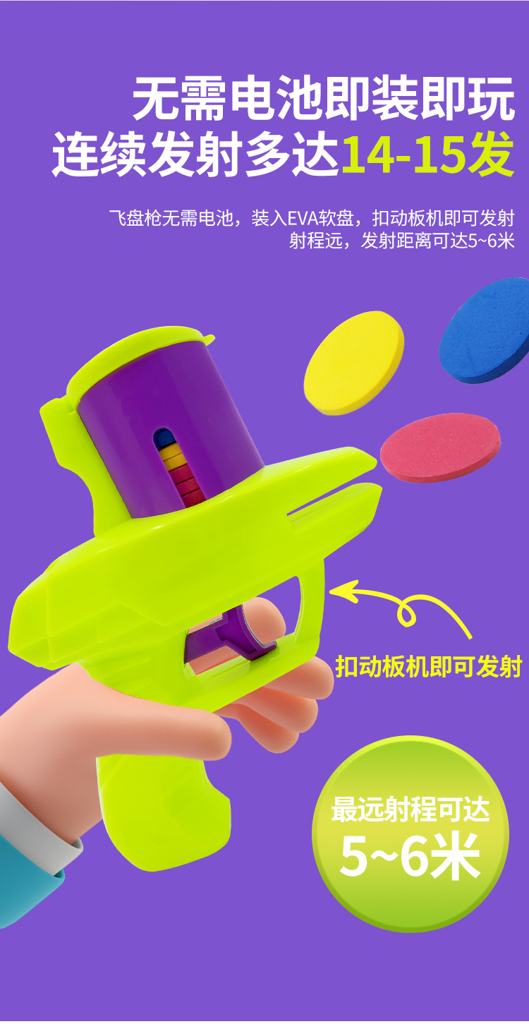 Radish Flying disc gun, safe EVA frisbee gun, parent-child outdoor children's toy, soft bullet gun for cross-border wholesale