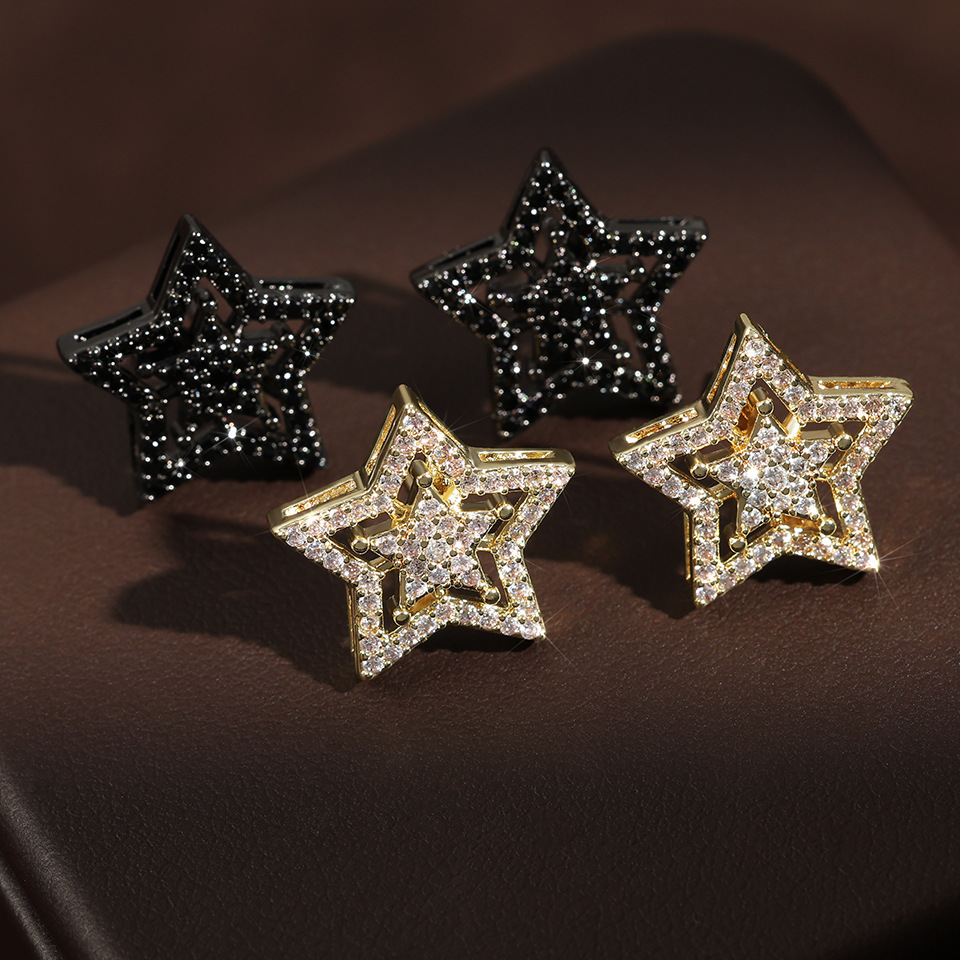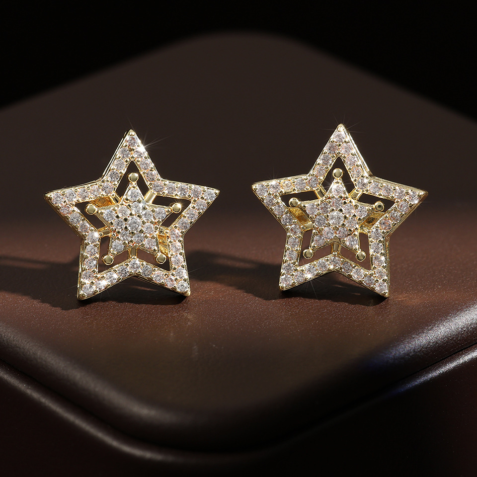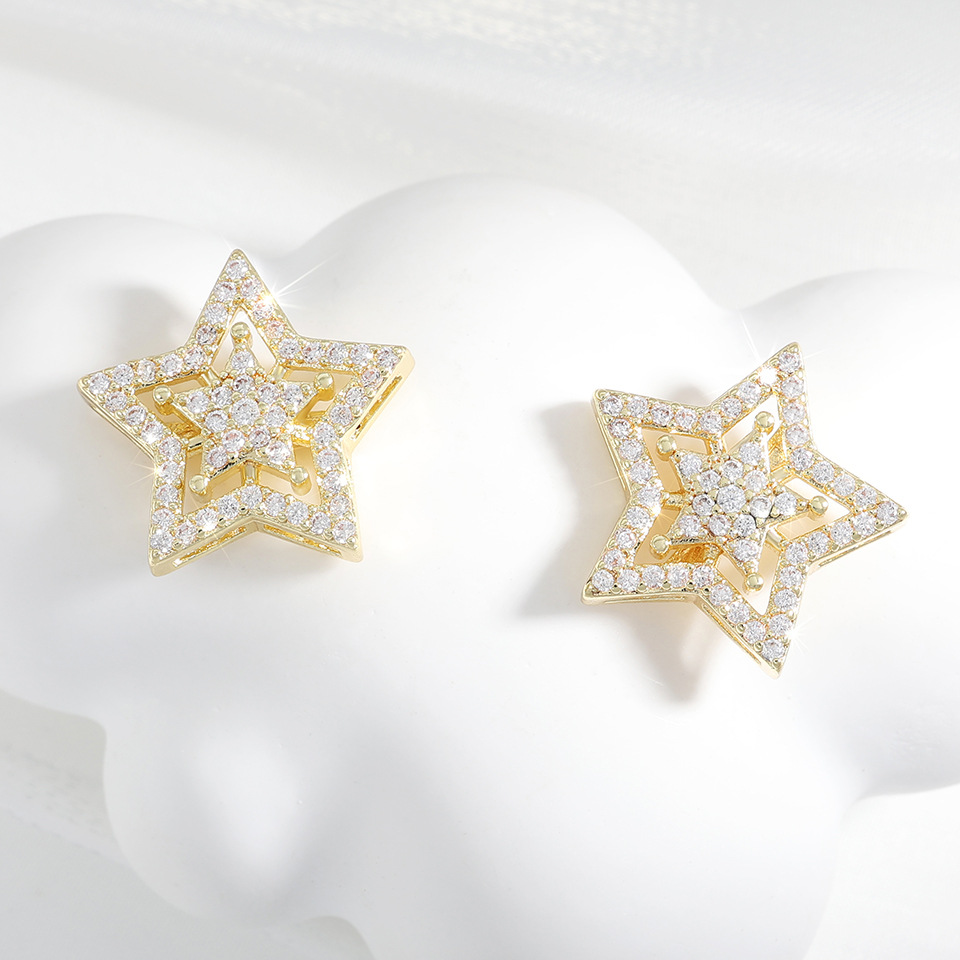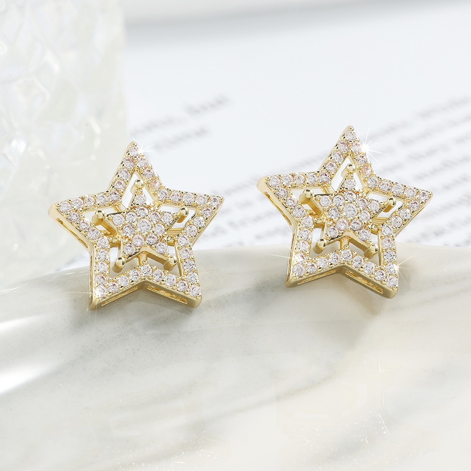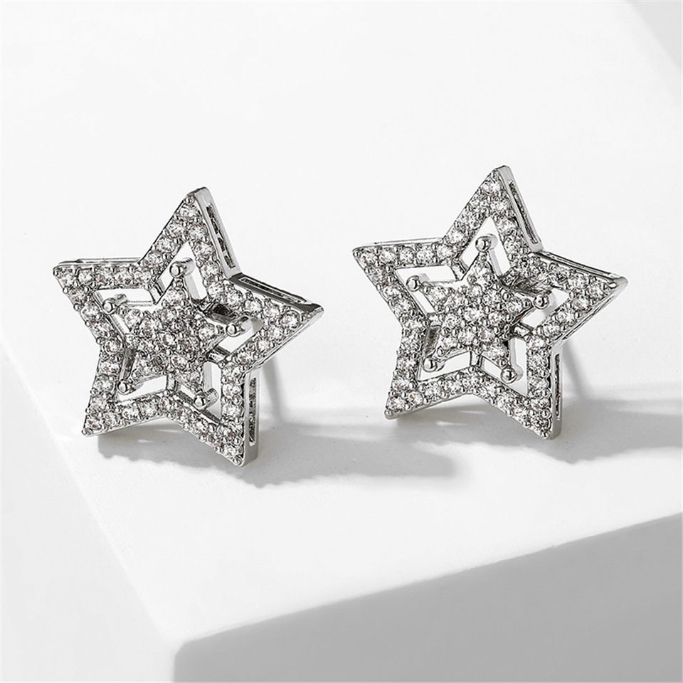 RAKOL's new European and American fashion five-pointed star zircon earrings wholesale, simple and light luxury accessories, high-end accessories