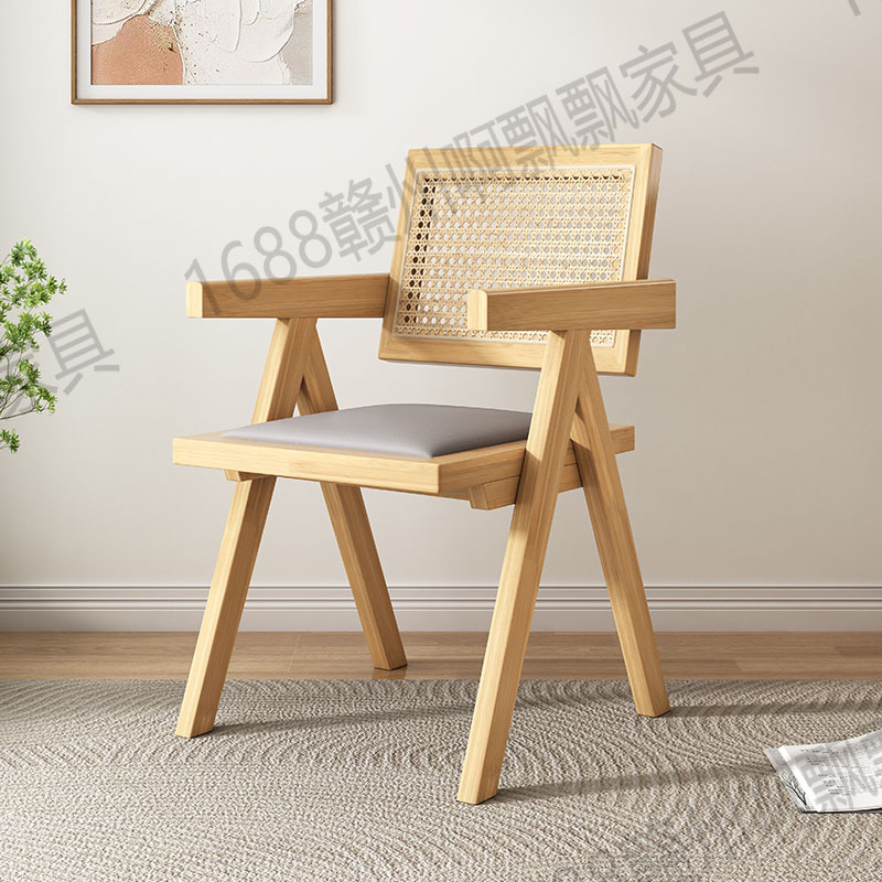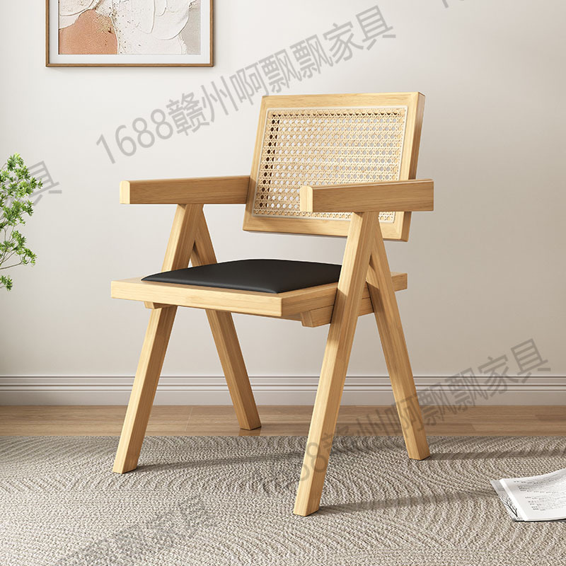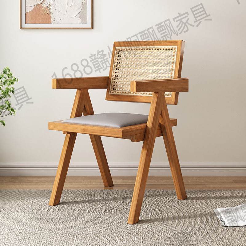 Rattan chairs, Chandigarh chairs, thickened home Nordic and Japanese backrest chairs, balcony leisure chairs, solid wood dining table chairs