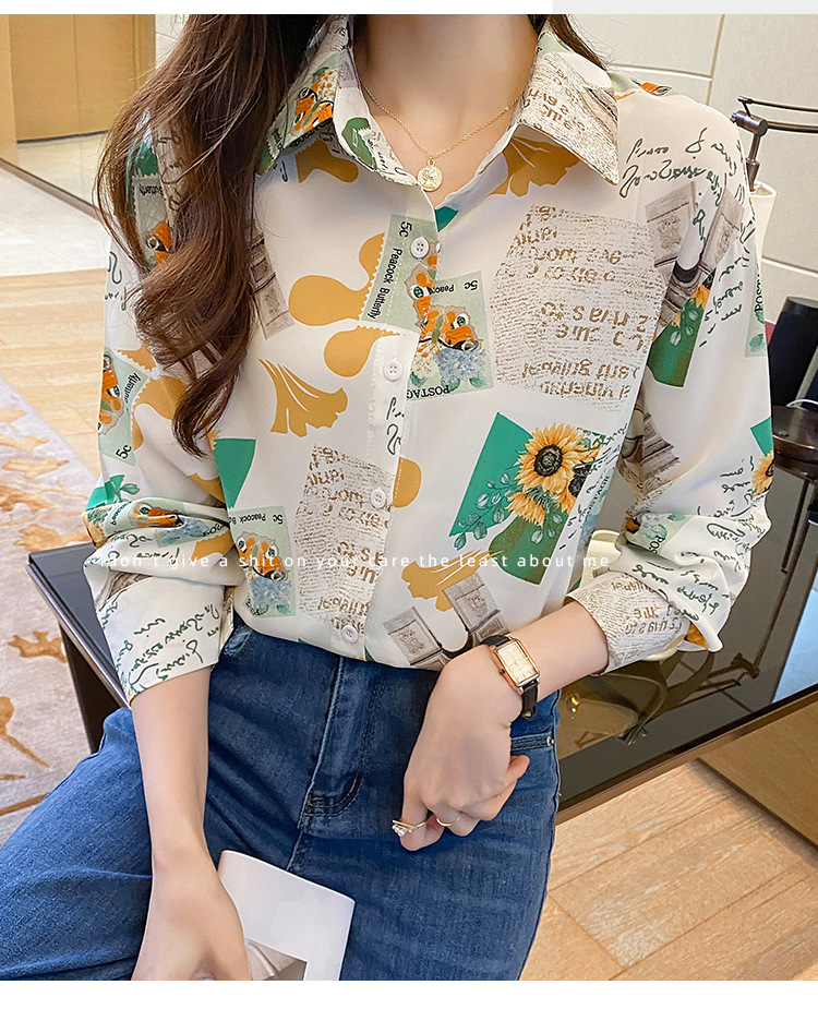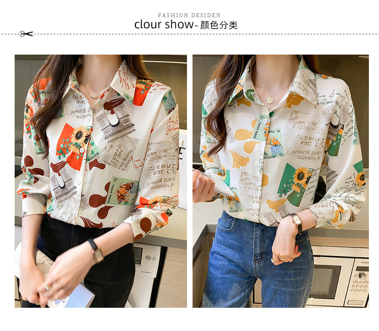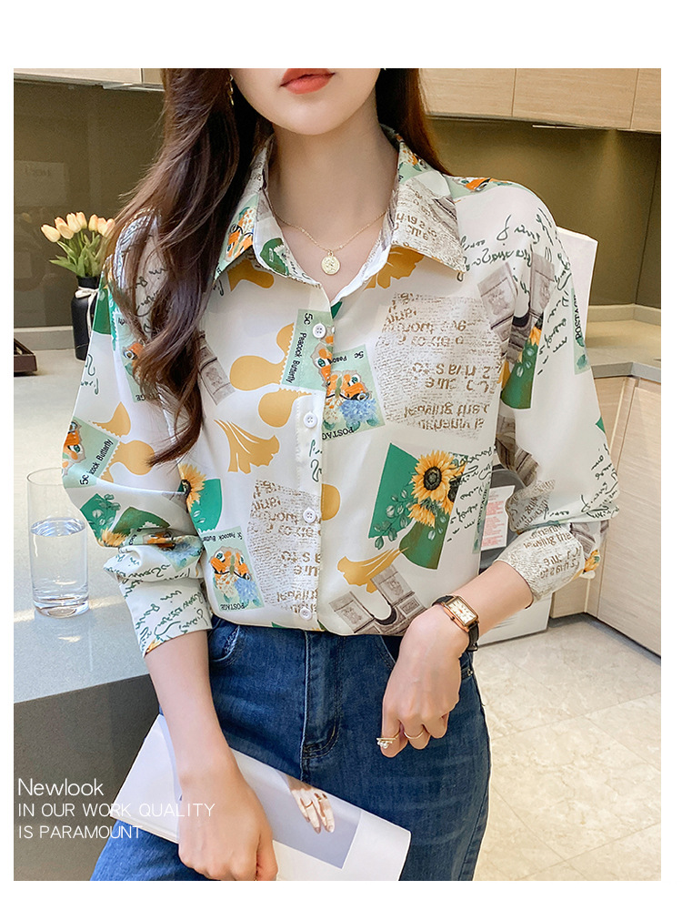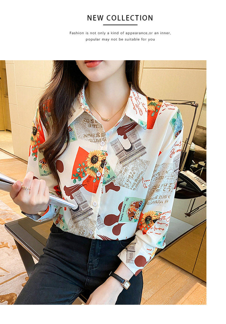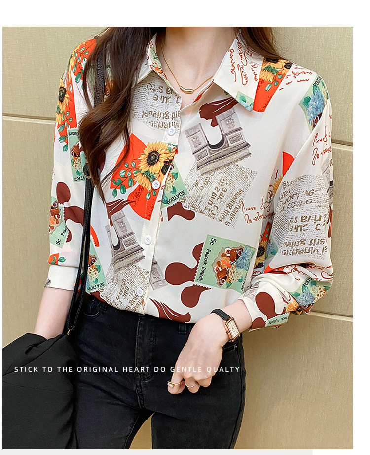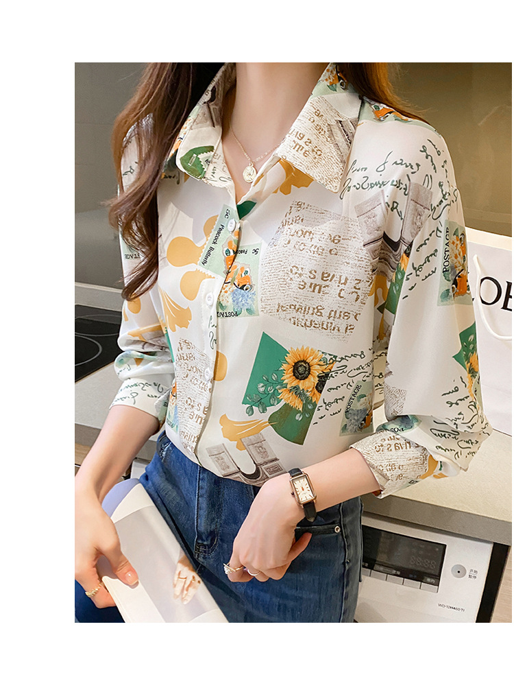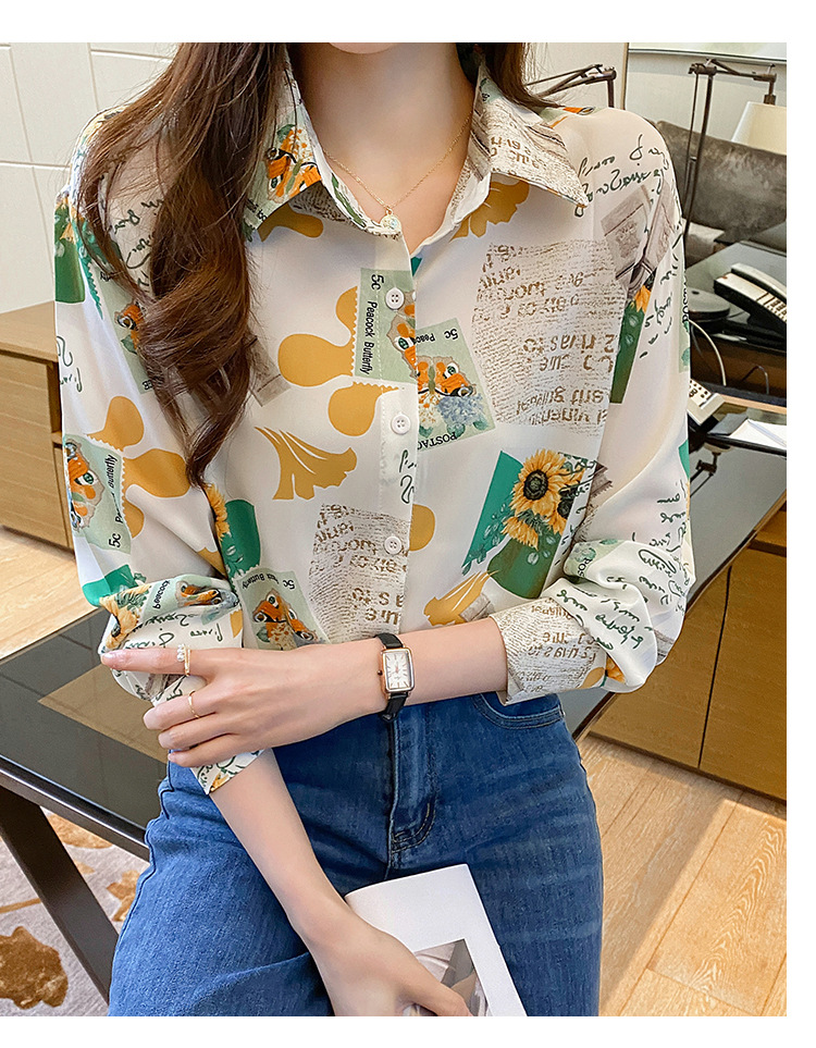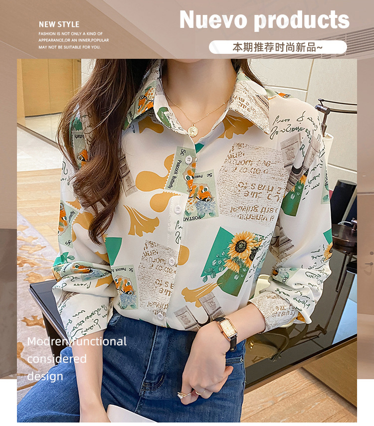 Real photo of women's shirt 2023 Spring and Autumn new style, versatile long-sleeved base layer mini shirt, youthful and elegant floral chiffon top