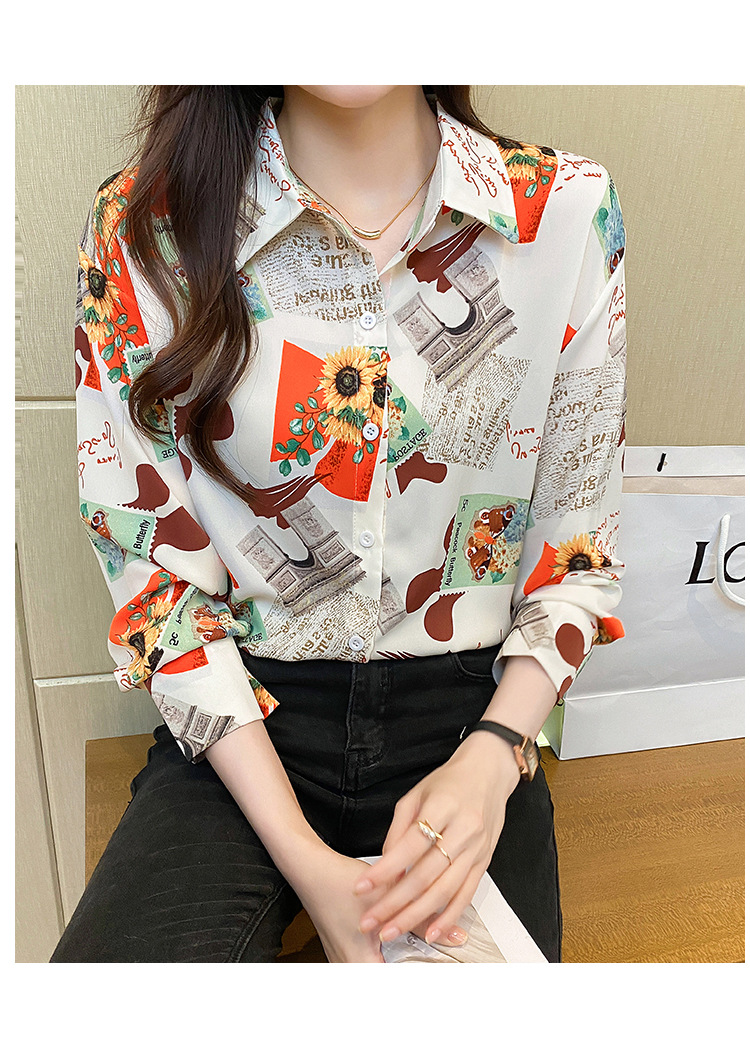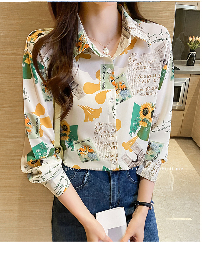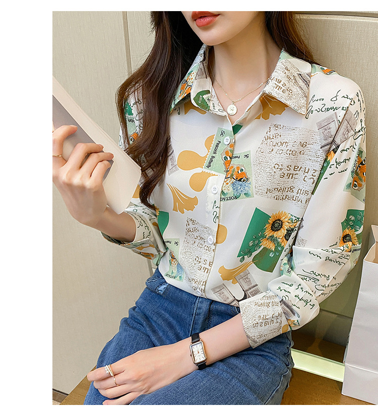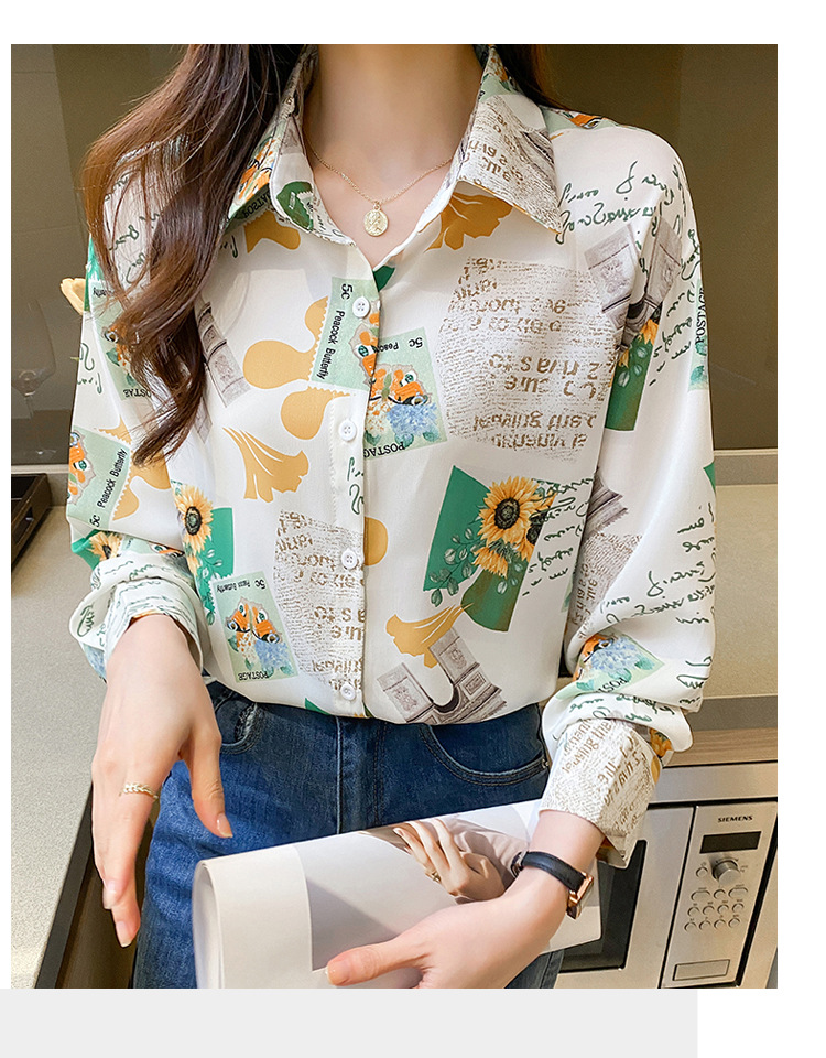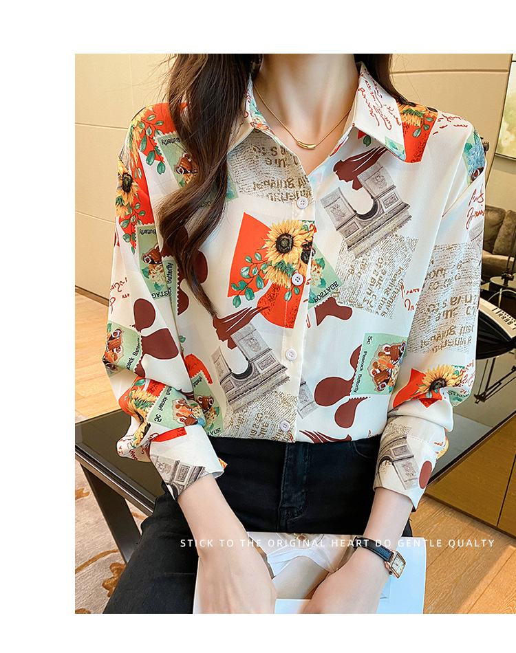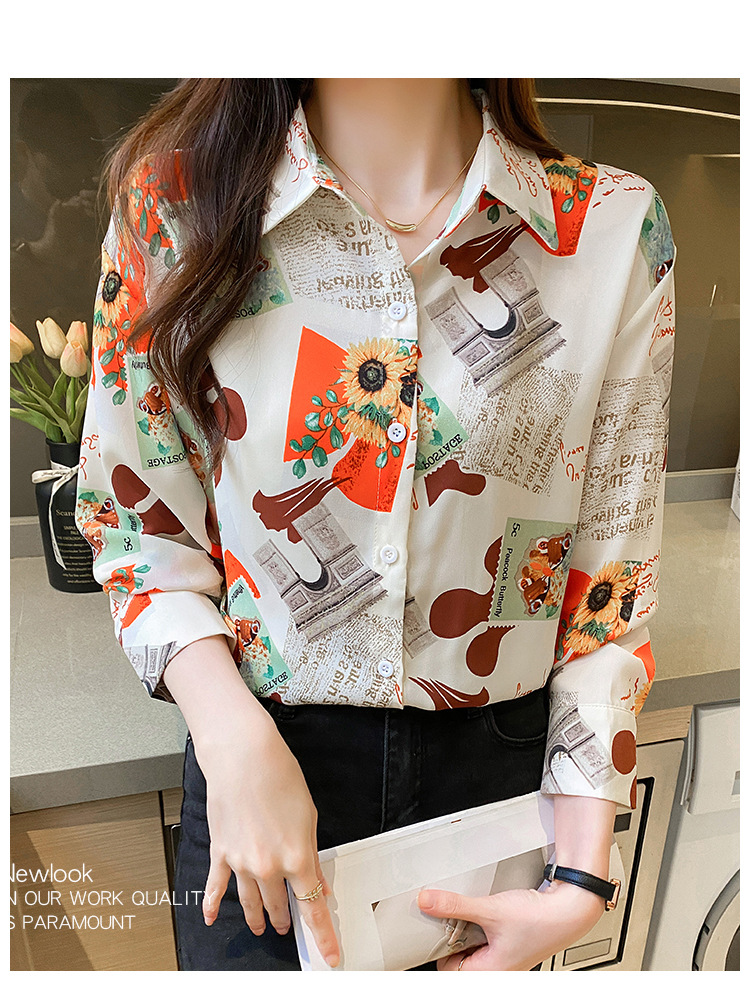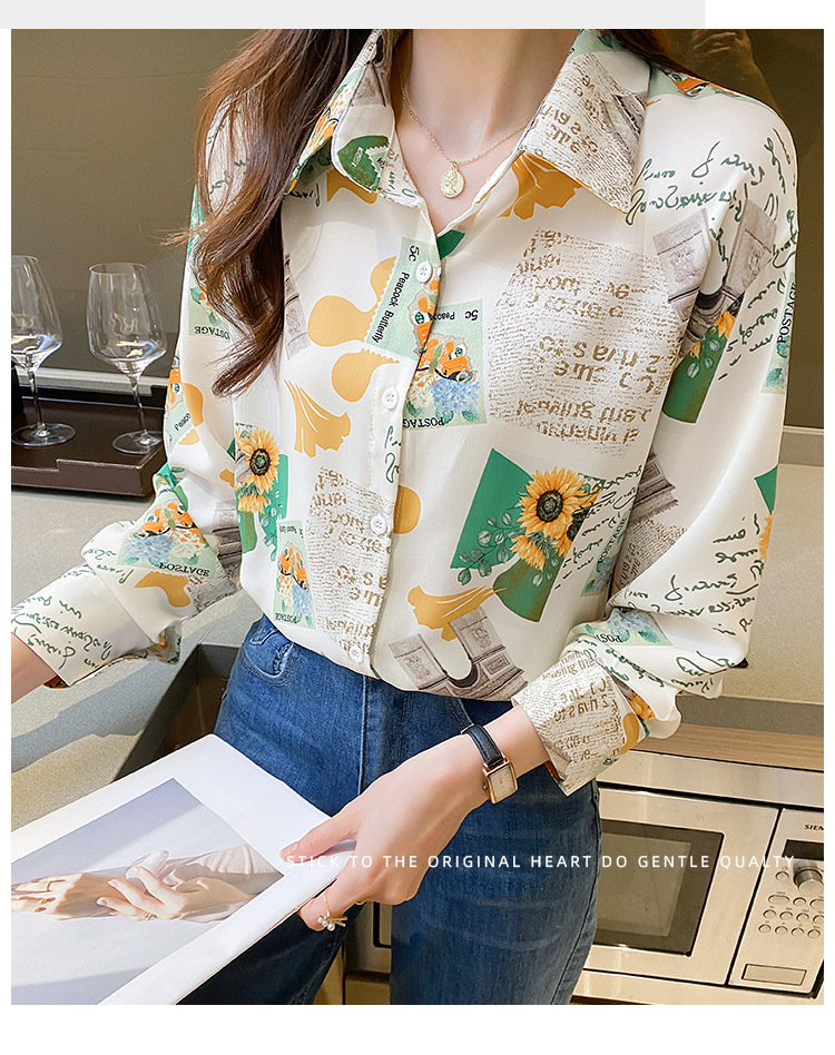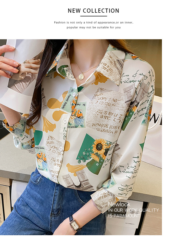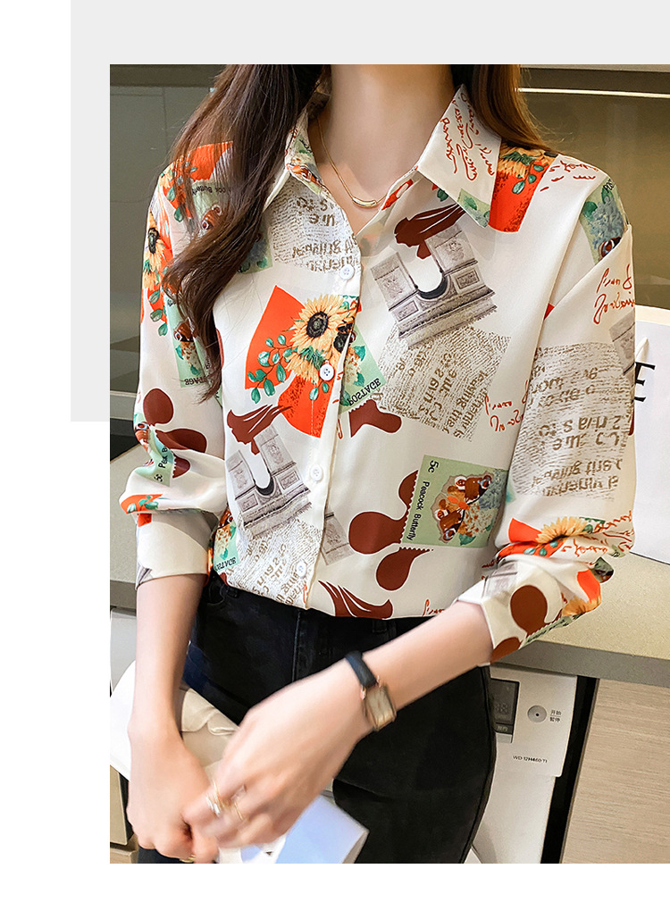 Real photo of women's shirt 2023 Spring and Autumn new style, versatile long-sleeved base layer mini shirt, youthful and elegant floral chiffon top