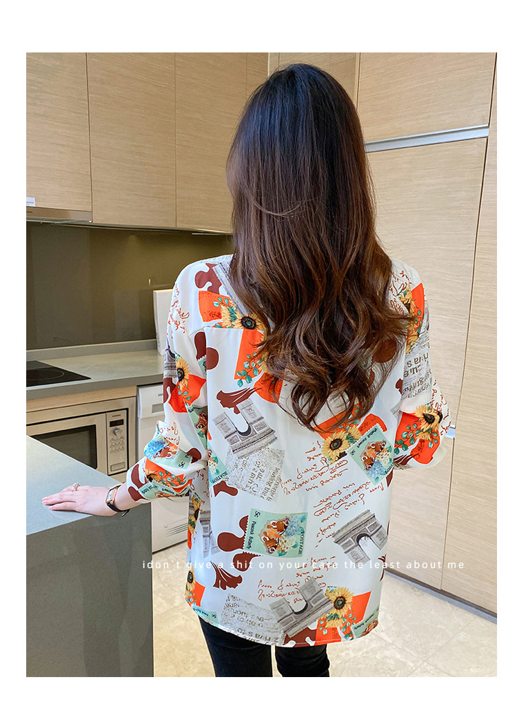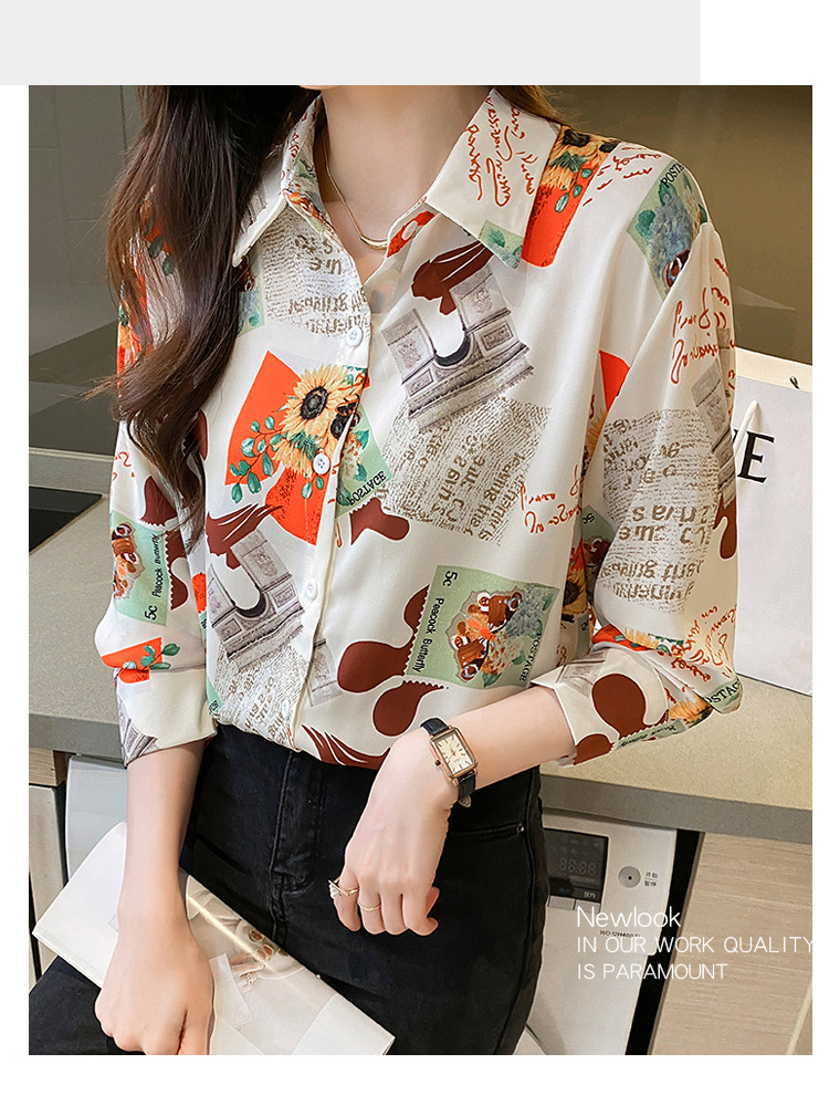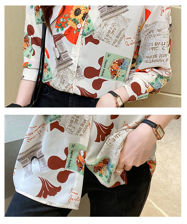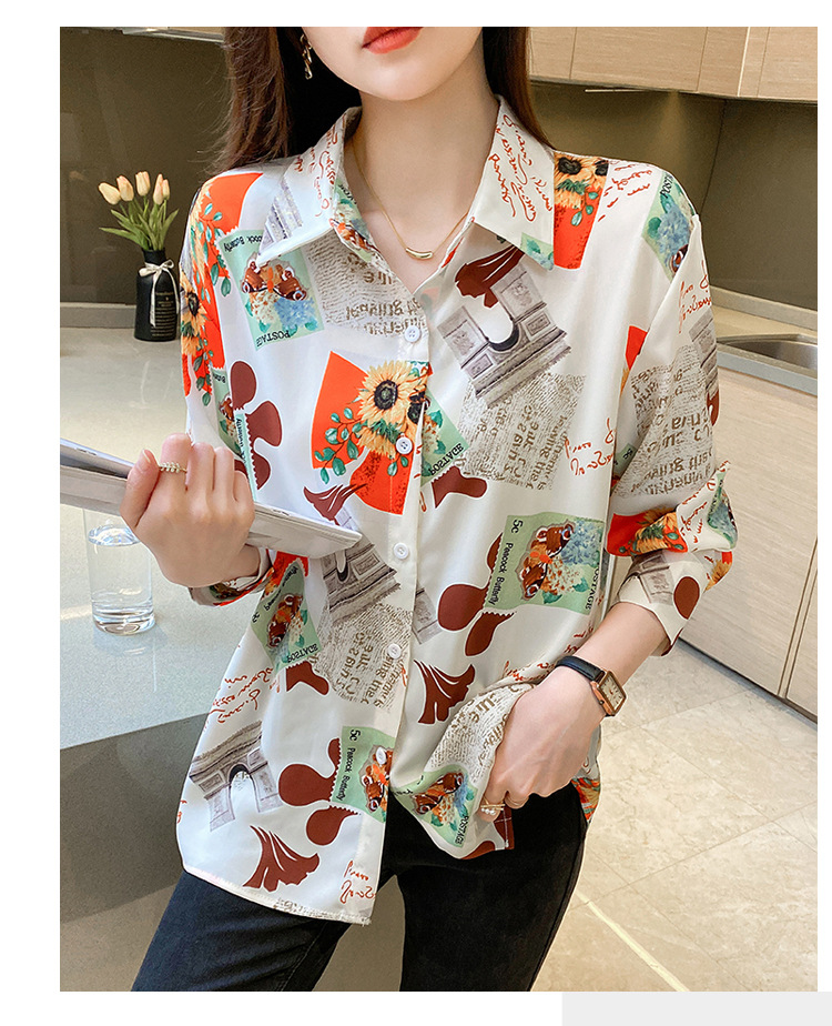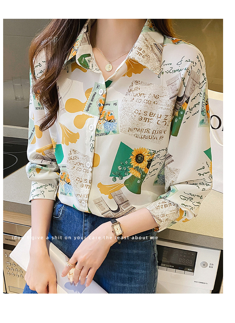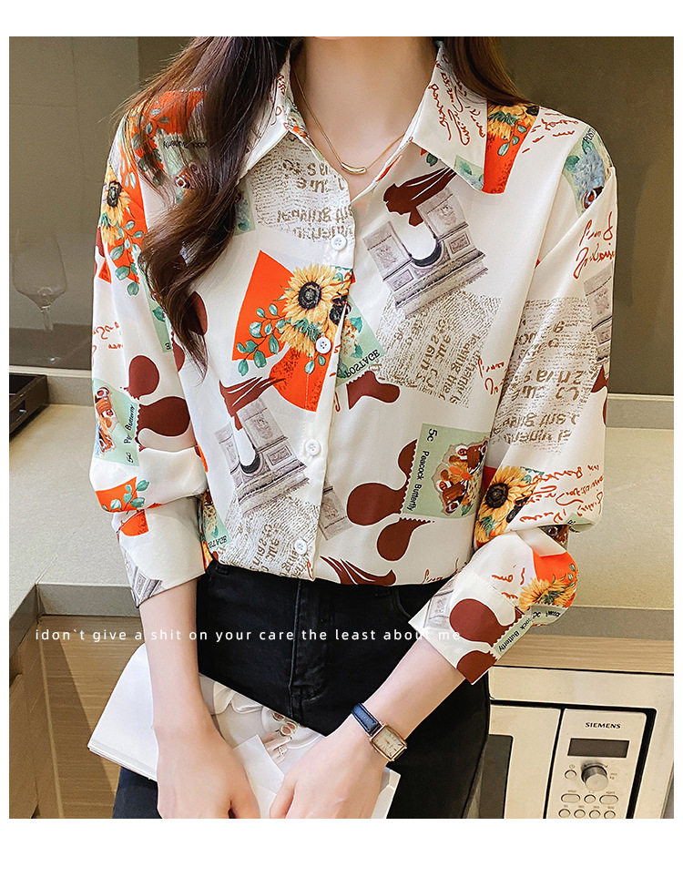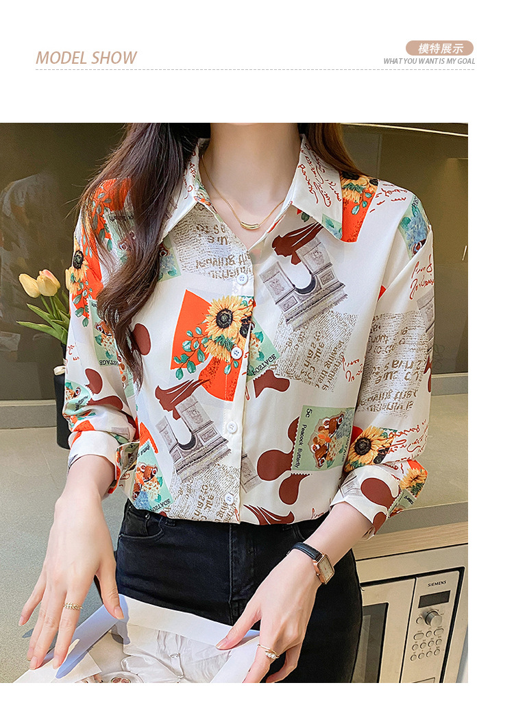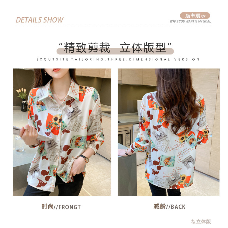 Real photo of women's shirt 2023 Spring and Autumn new style, versatile long-sleeved base layer mini shirt, youthful and elegant floral chiffon top