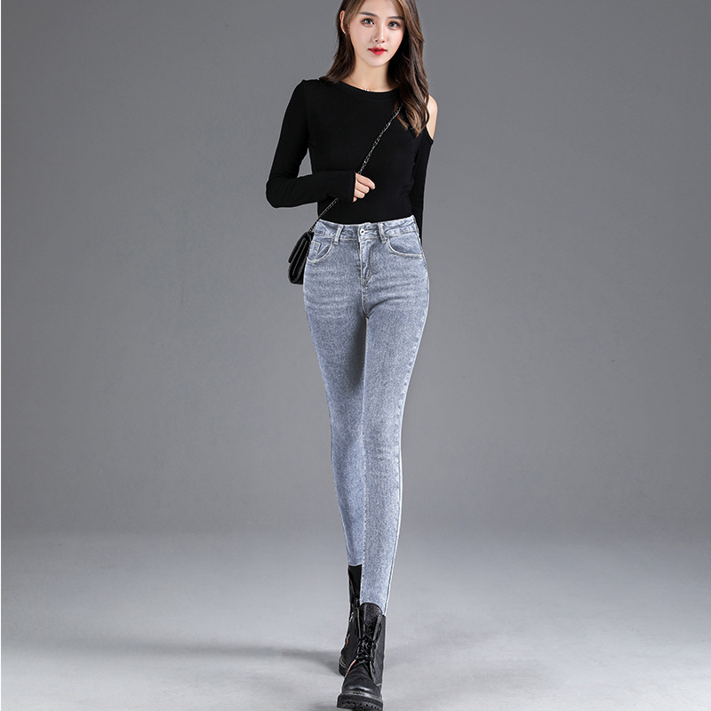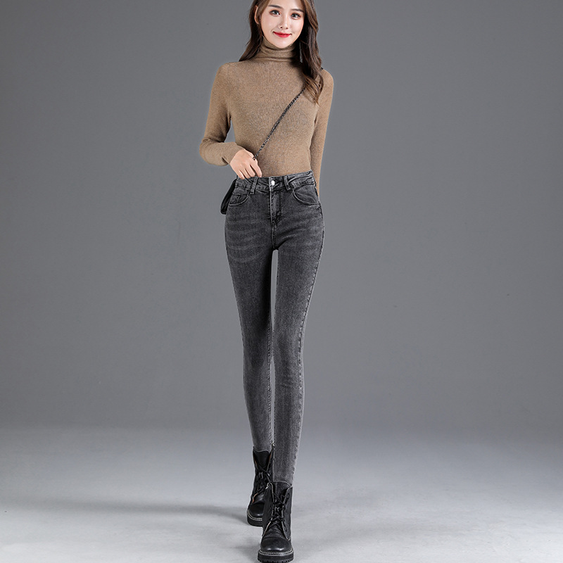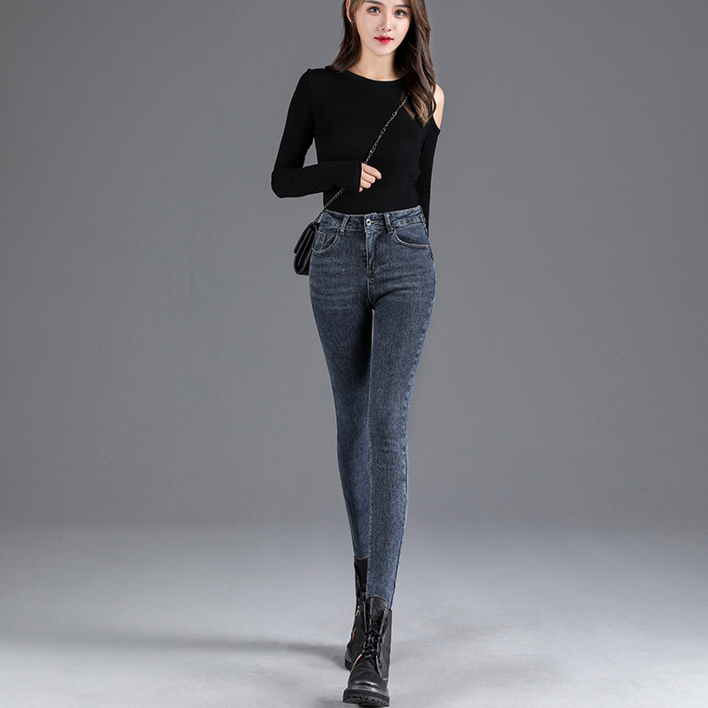 Real photos of high-waisted jeans for women, tight and slimming, 2020 autumn new style long pants, stretch nine-inch pants, and skinny pants