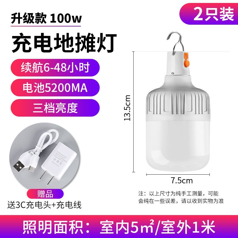 100w Ultra-bright street lamp - Comes with charging cable + 6-48 hours of battery life (2 sets)