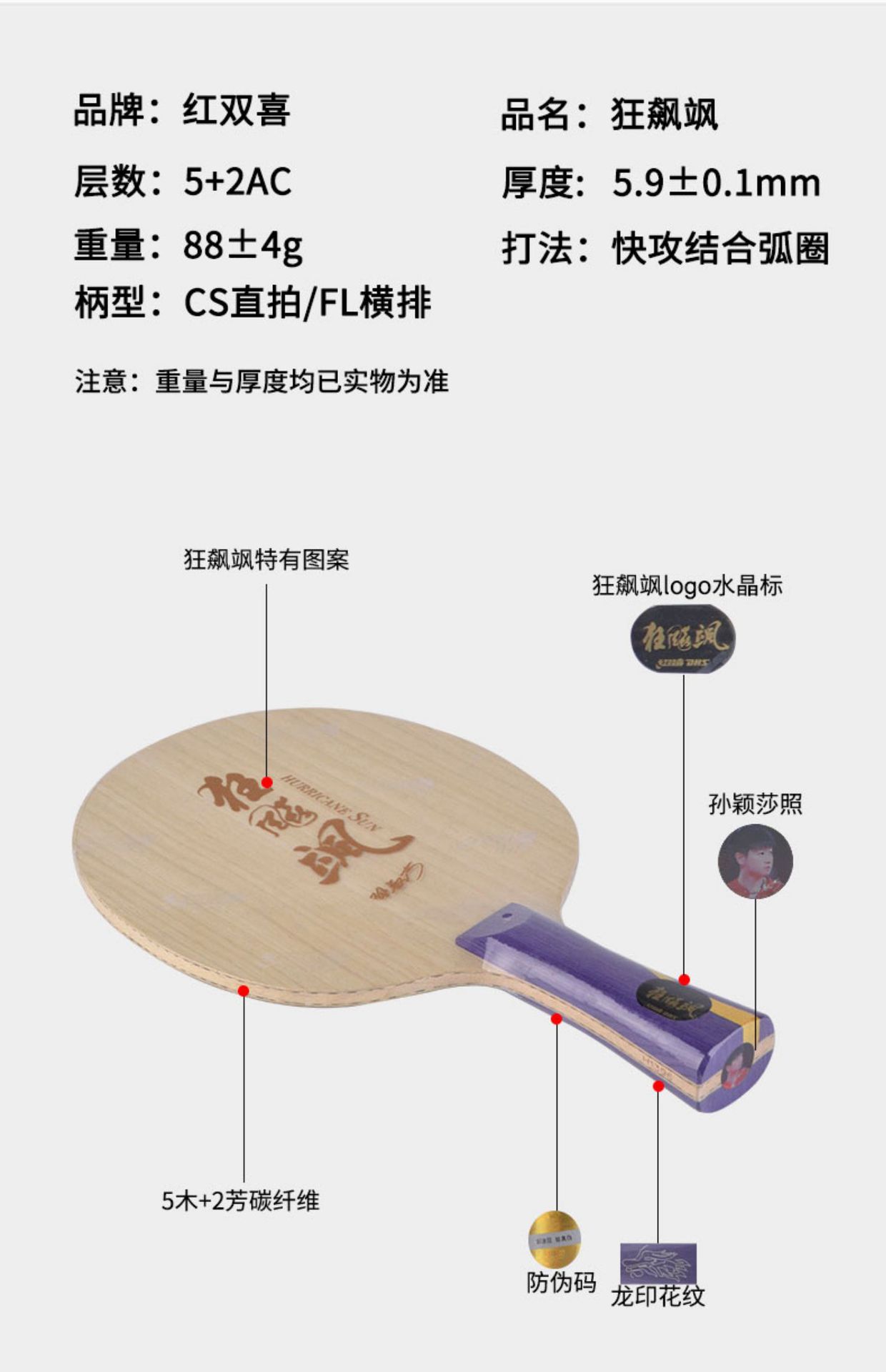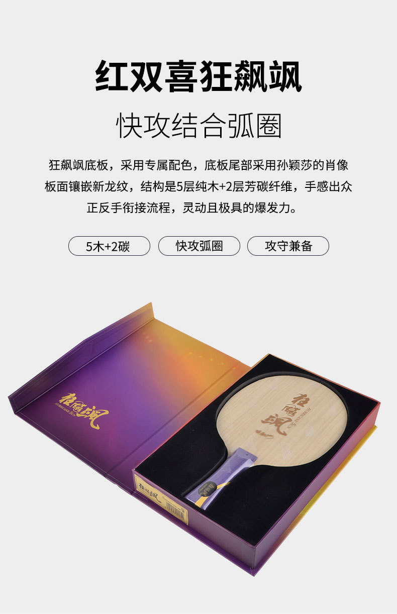 Red Double Happiness's "Kuangbiao Sa" table tennis racket base plate, the same as that of national player Sun Yingsha, is a genuine professional base plate with built-in aromatic carbon