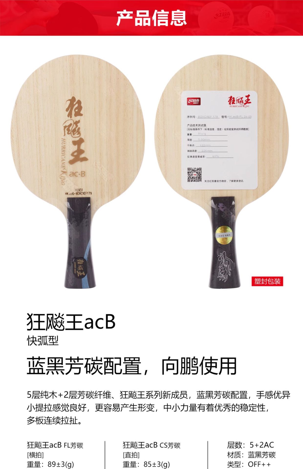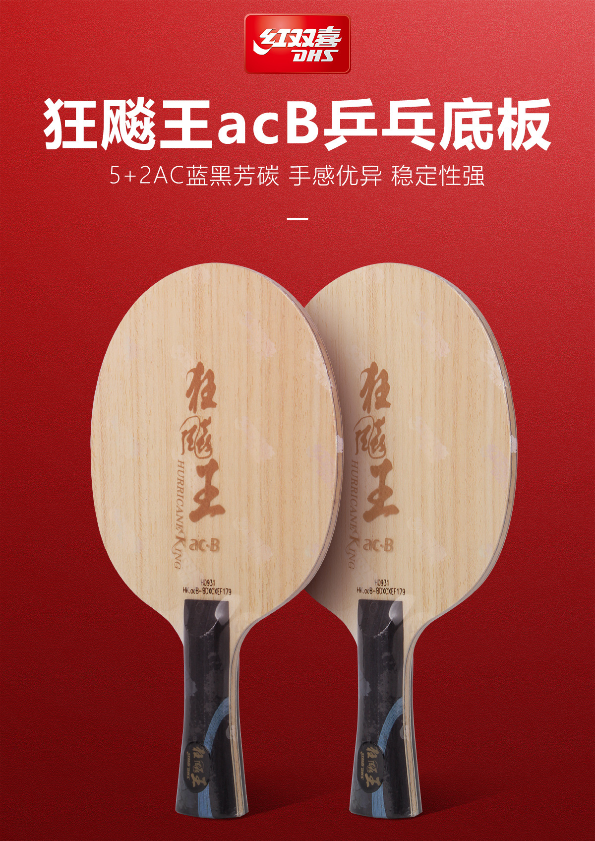 Red Double Happiness's Mad Dog King acB table tennis racket base plate, Xiangpeng's Mad Dog Kingdom Hand Series, genuine with built-in fragrant carbon