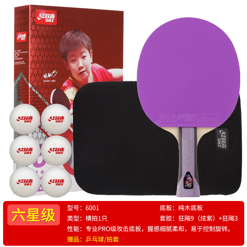 Red Double Happiness Seven-star table Tennis Racket, Wild Dash 9 Horizontal racket, Blue Sponge 7-star Professional Grade color rubber, genuine single racket