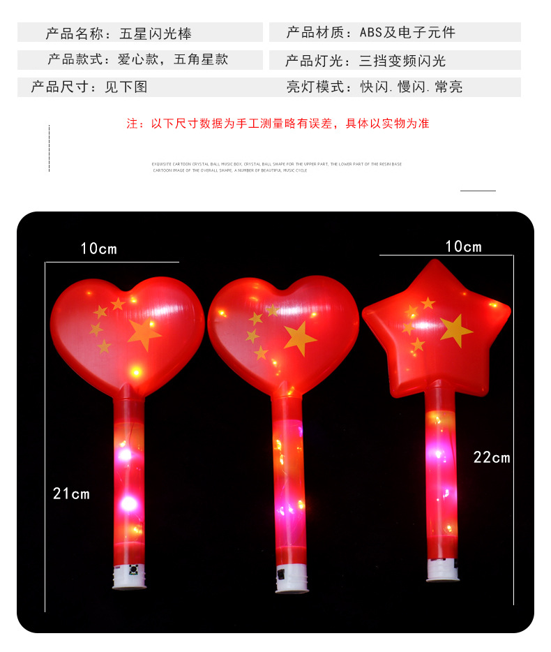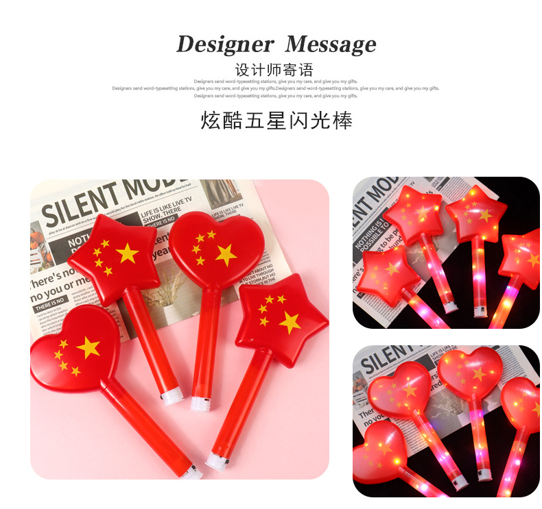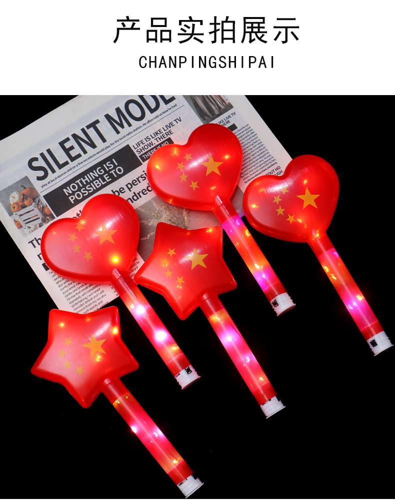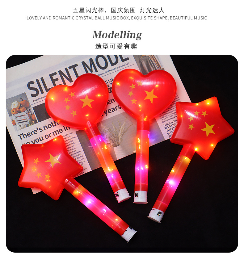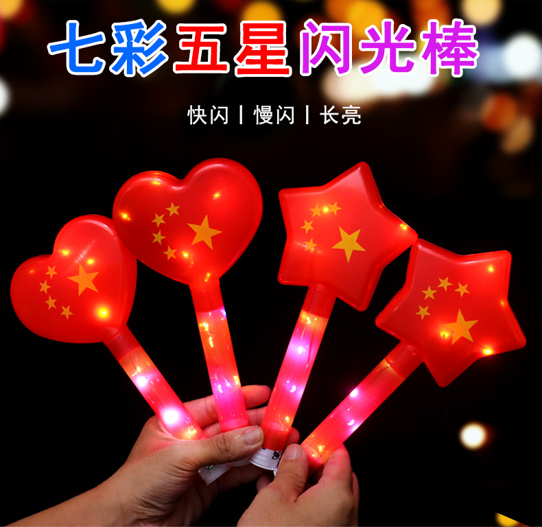 Red Flag glow sticks, flashing Five-Star Red Flag support sticks, children's stage toys for National Day, sports meeting props