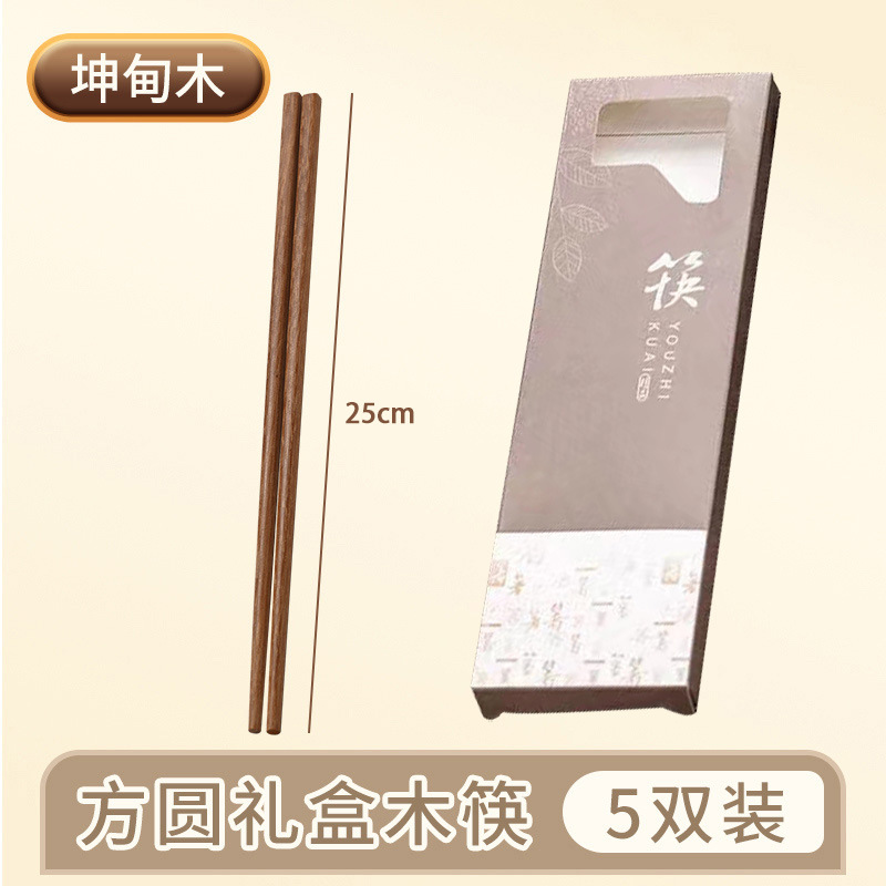 Red sandalwood chopsticks, solid wood, unpainted and waxed, household wooden anti-slip natural wood chopsticks, unpainted and waxed kitchen tableware