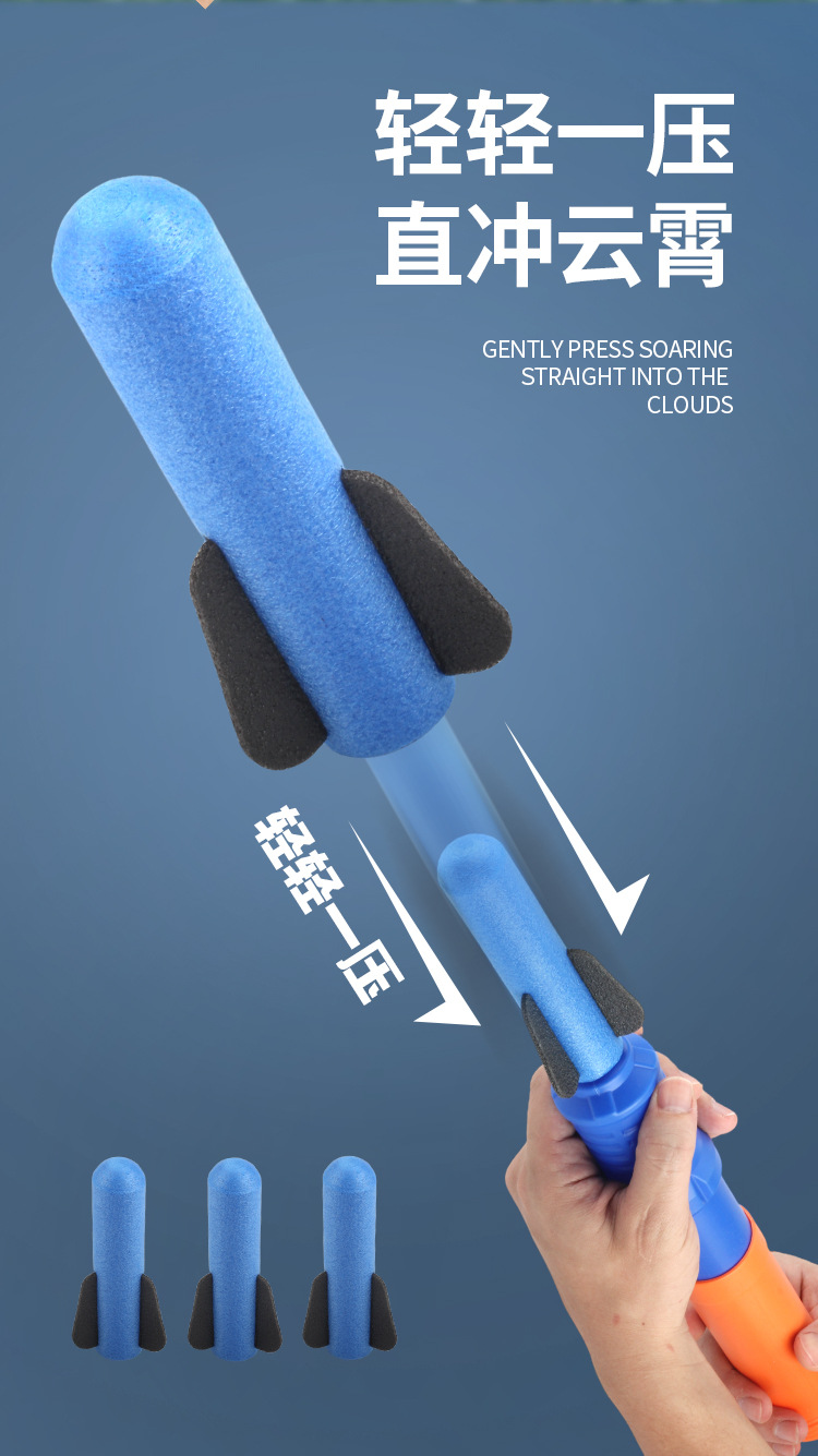 Finished product size: 5*5*35CM. Each box contains 360 pieces. One hand-pushed rocket launcher comes with one rocket and is packed in individual bags!!