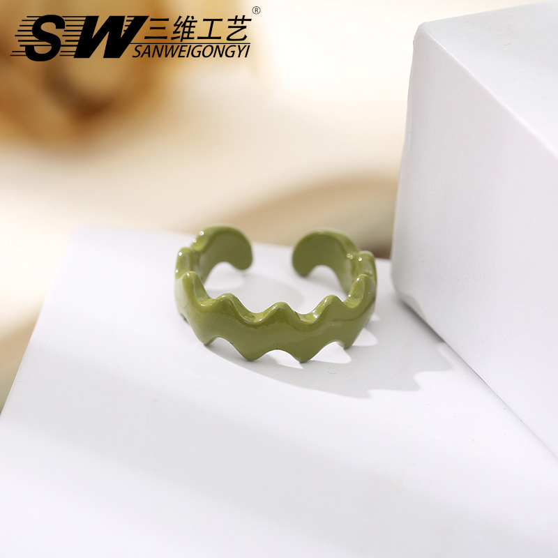 Retro alloy spray-painted ring, fashionable and niche colorful macaron index finger ring, elegant candy-colored ring accessory