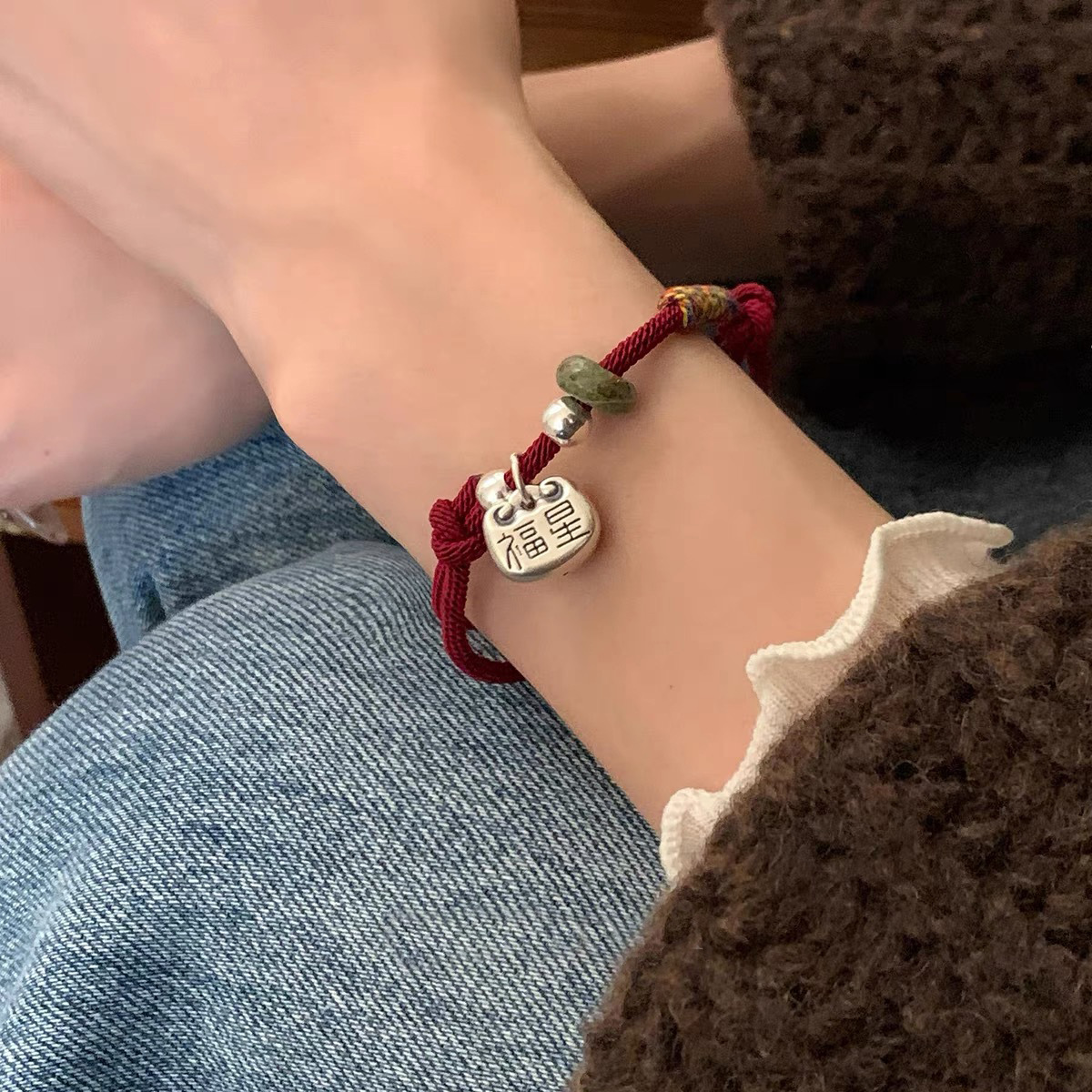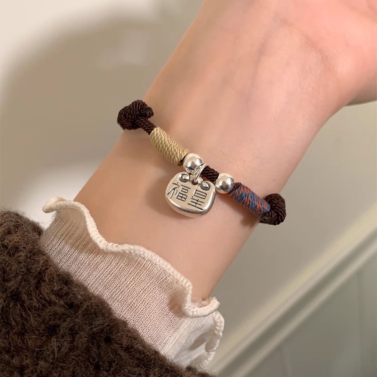 Retro and niche design 999 pure silver lucky star pendant, versatile for the New Year's zodiac year with red rope and traditional Chinese style
