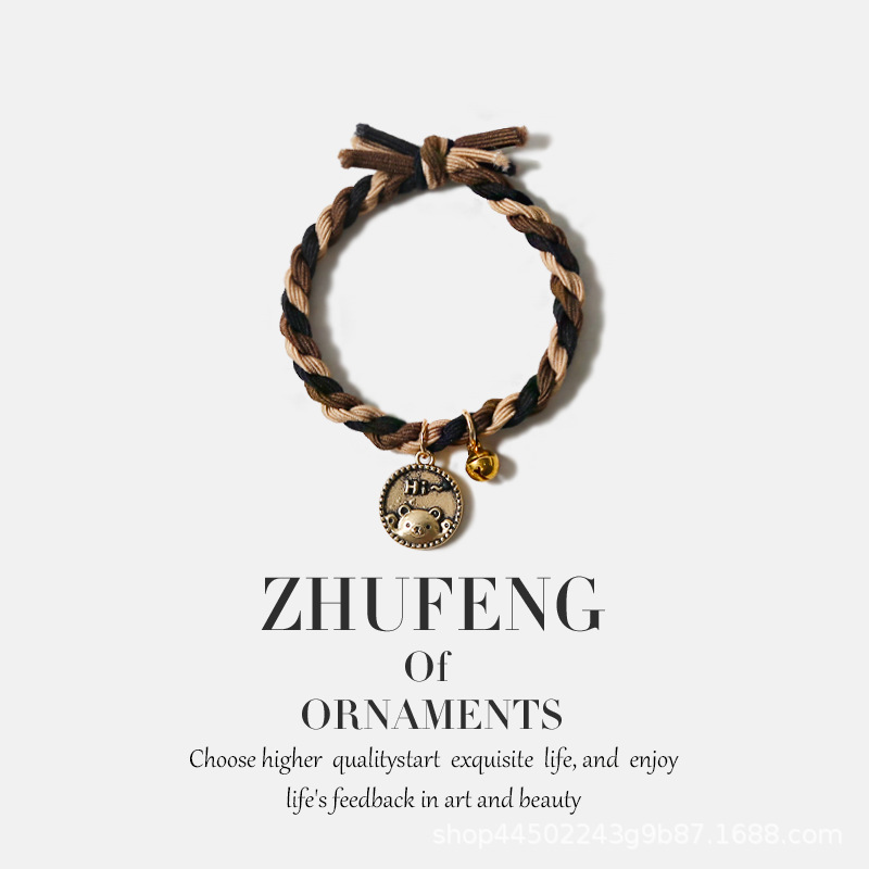 Retro bear pendant hair band, girls' small rubber band, simple woven hair tie, girls' hair tie, girls' headwear
