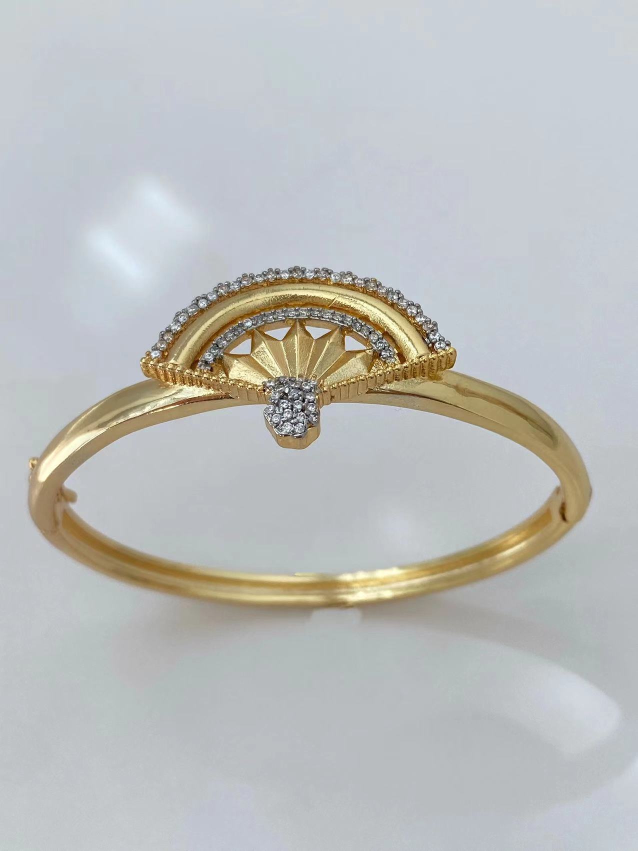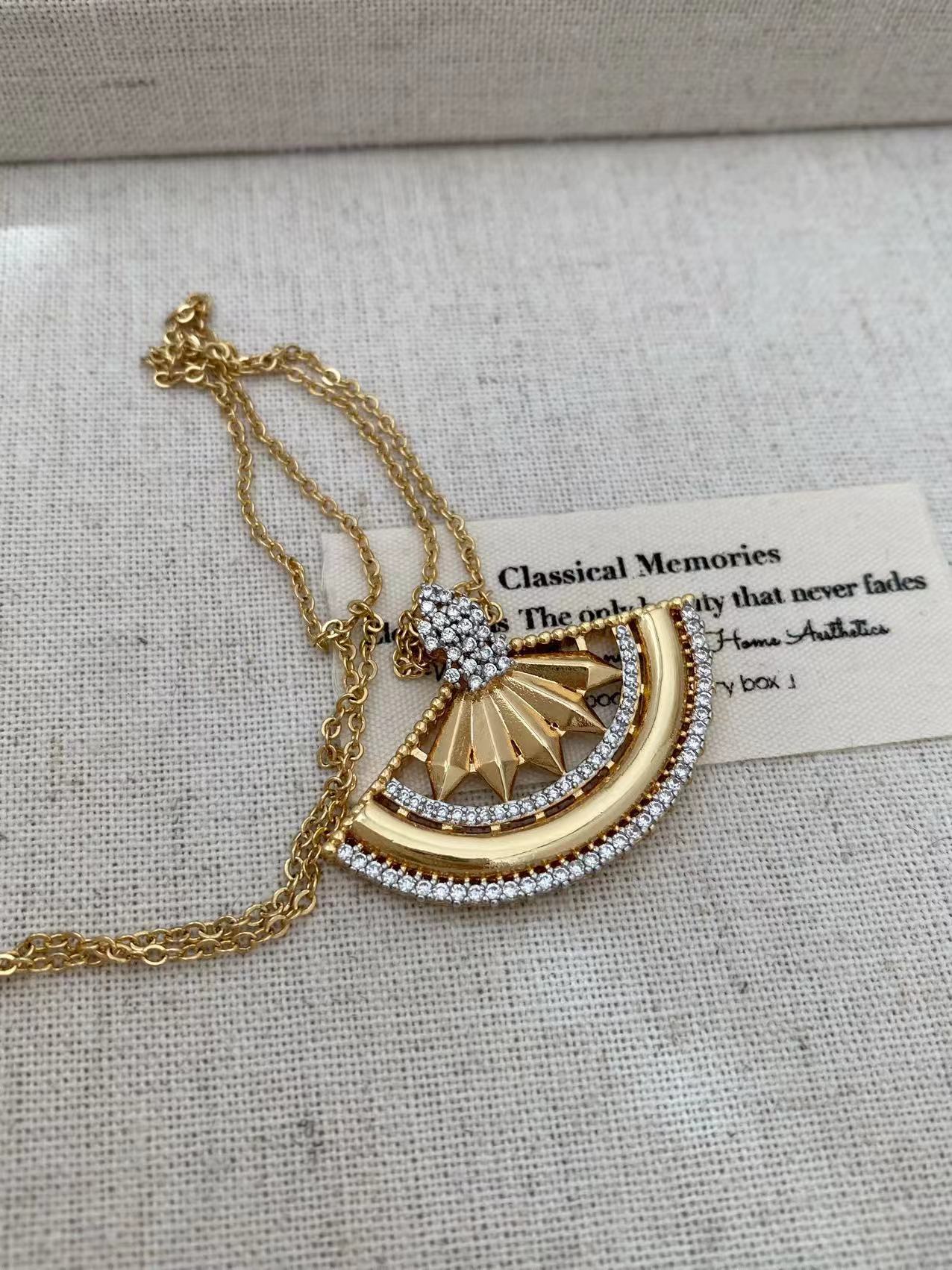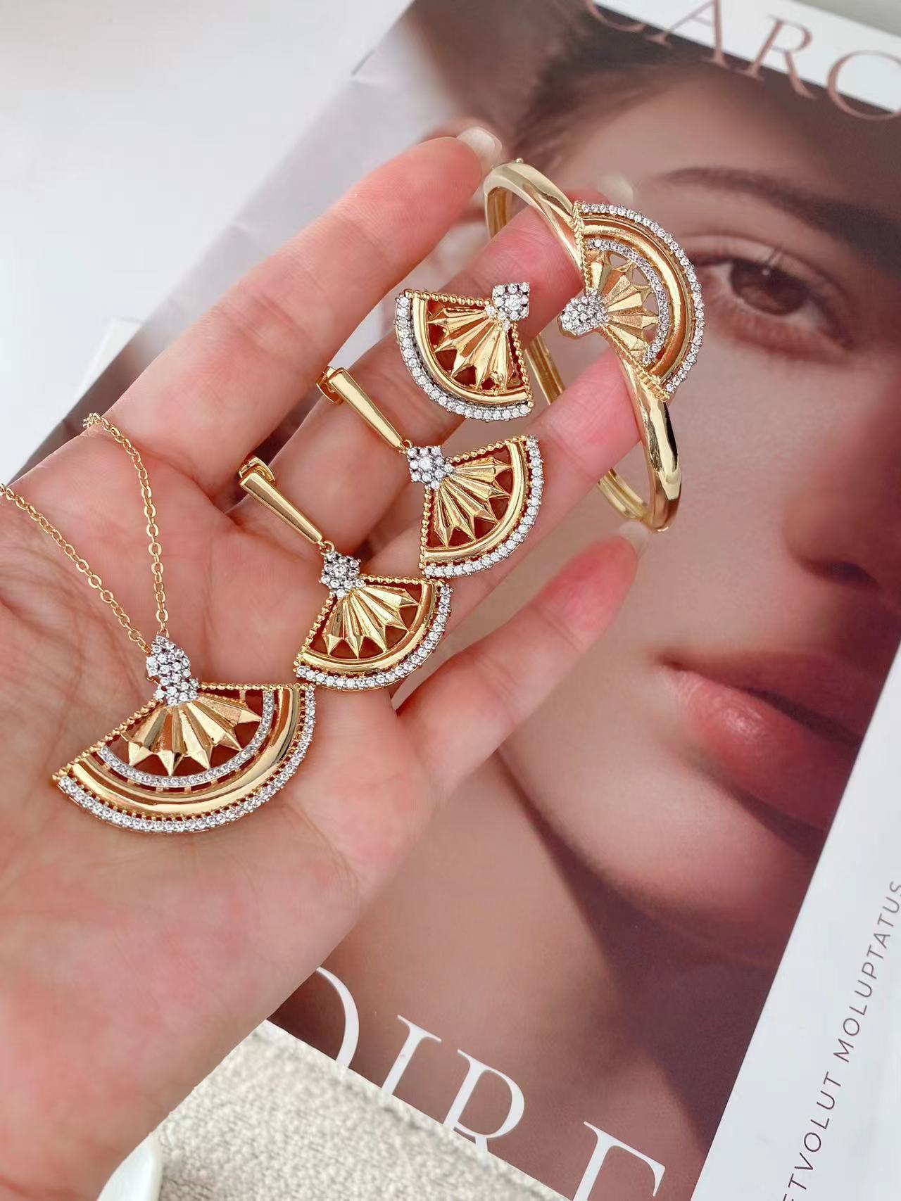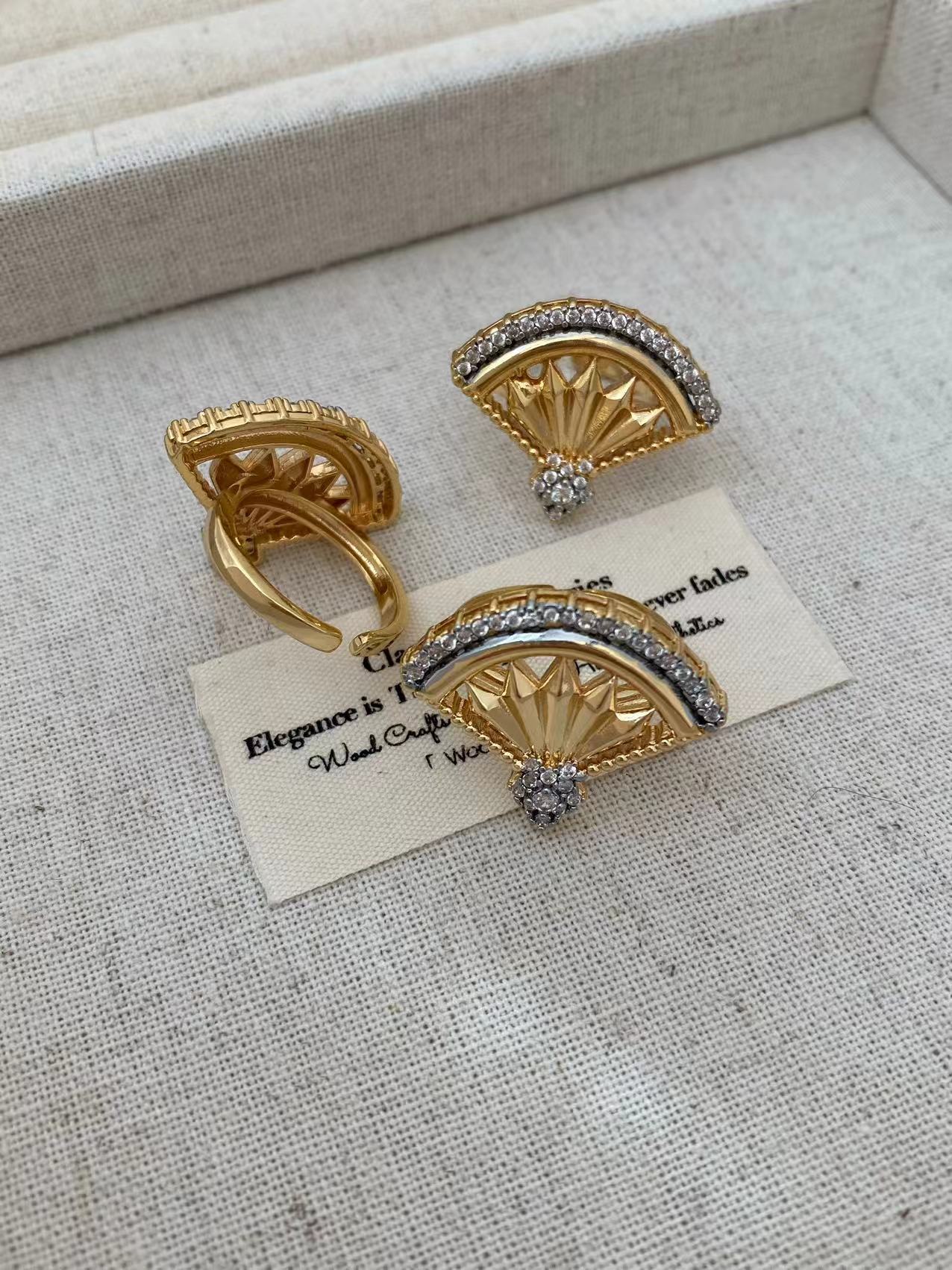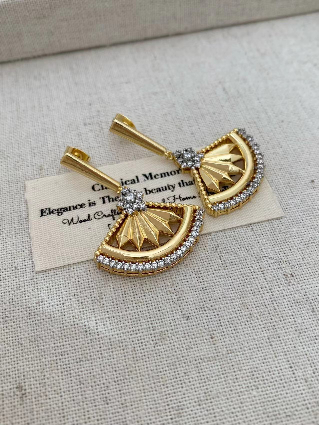 Retro Bohemian style, unique fan-shaped two-tone gold, fashionable and trendy, exquisite diamond-encrusted set