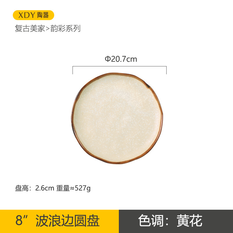 Retro ceramic plates, vegetable plates, household high-appearation-level round pasta plates, salad bowls, tableware, wedding souvenirs, gifts