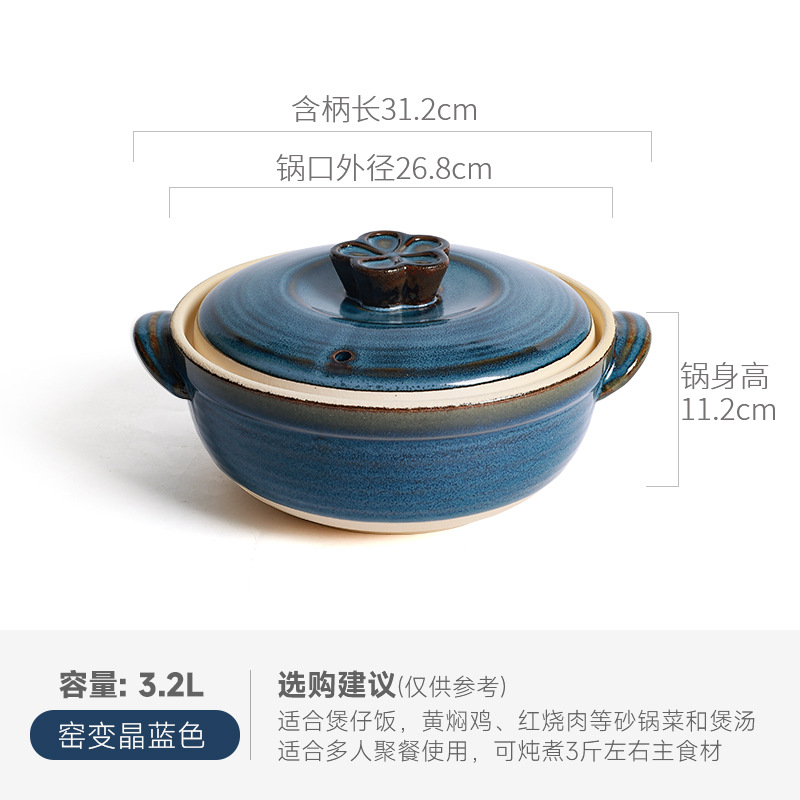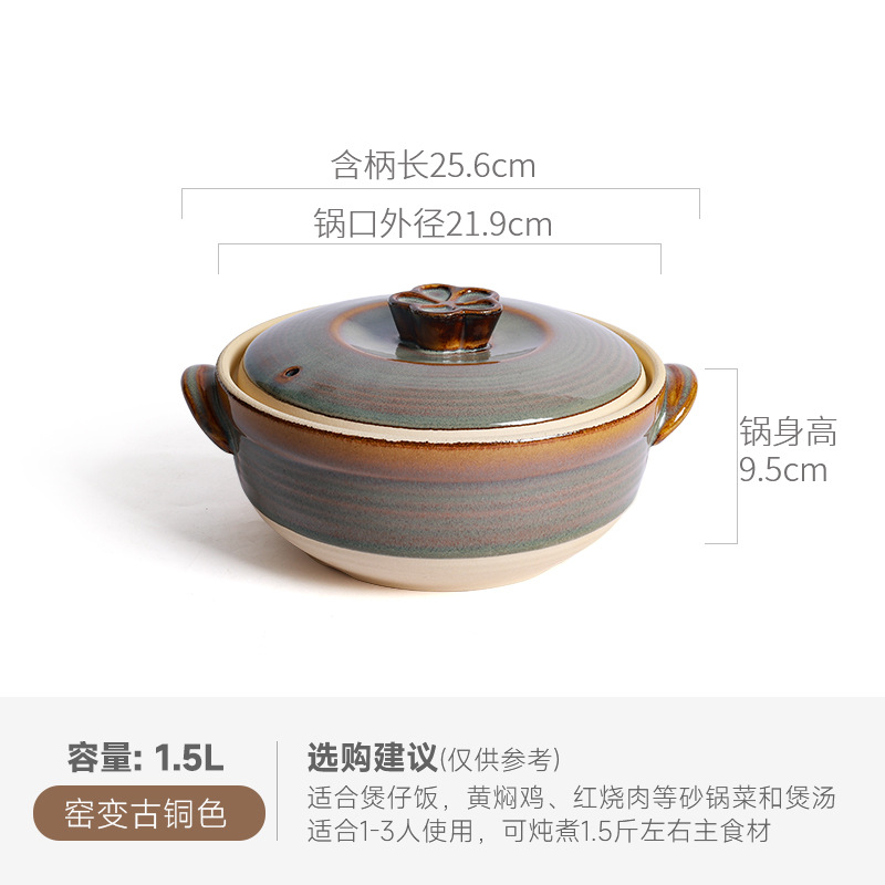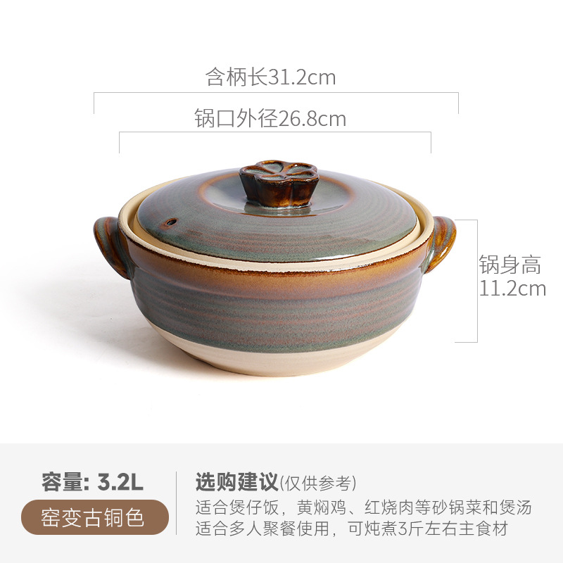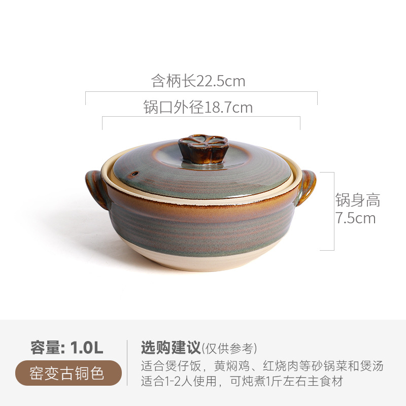 Retro clay pot stew pot for making soup home high-temperature resistant open flame glaze ceramic pot soup 煲仔饭 special clay pot for making soup