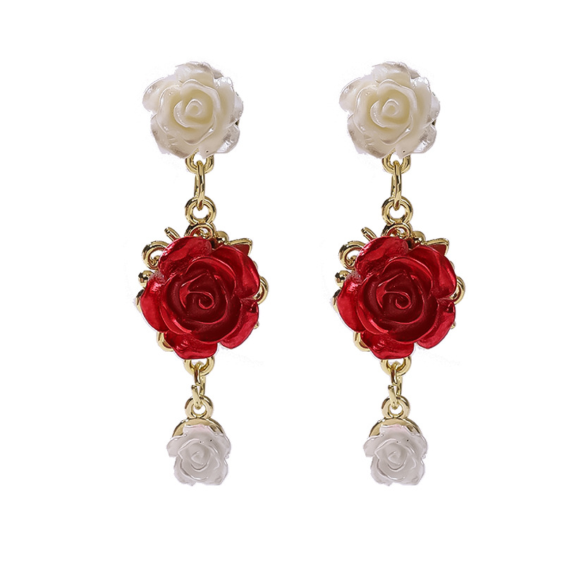 Retro court-style Internet celebrity, unique and fashionable wedding rose earrings, noble and elegant female texture, tassel style earrings