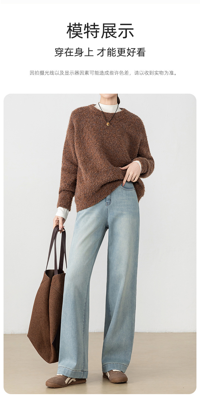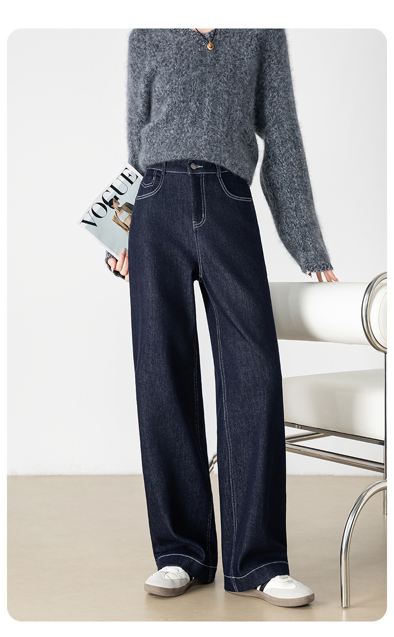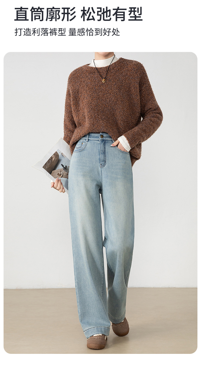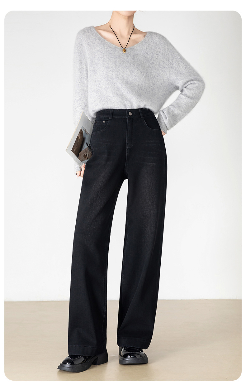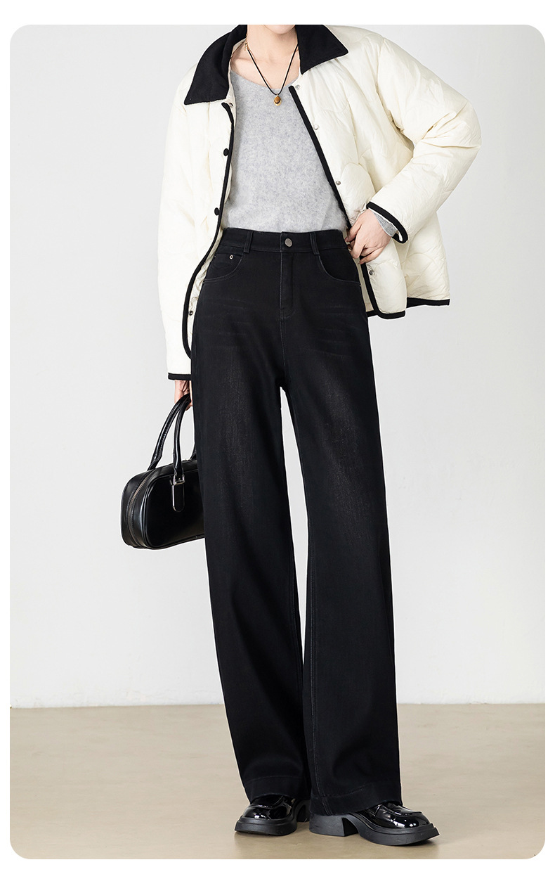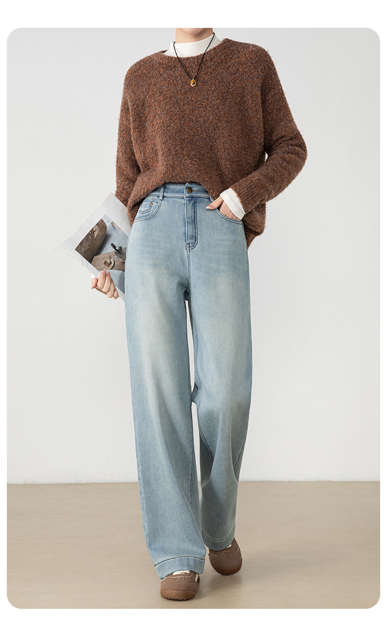 Retro fleece jeans for women's autumn and winter 2025 new high-waisted loose narrow light-colored straight-leg wide-leg pants