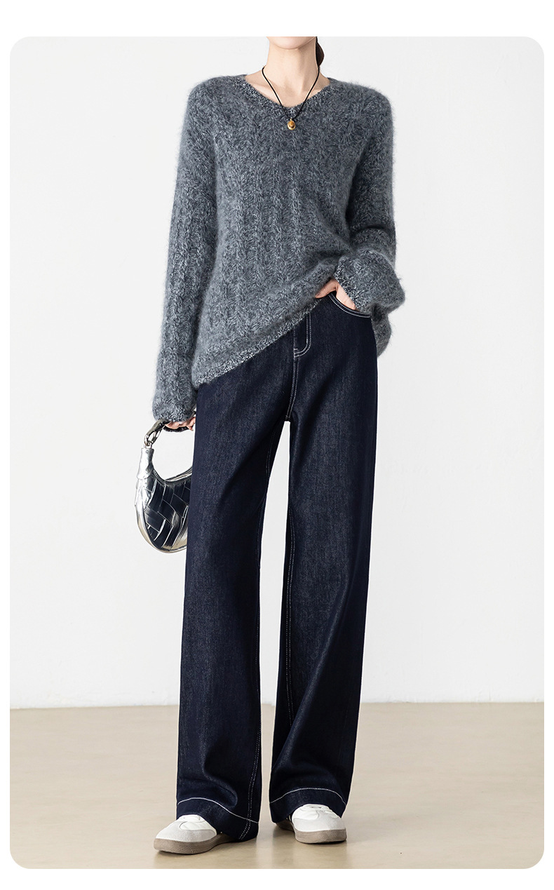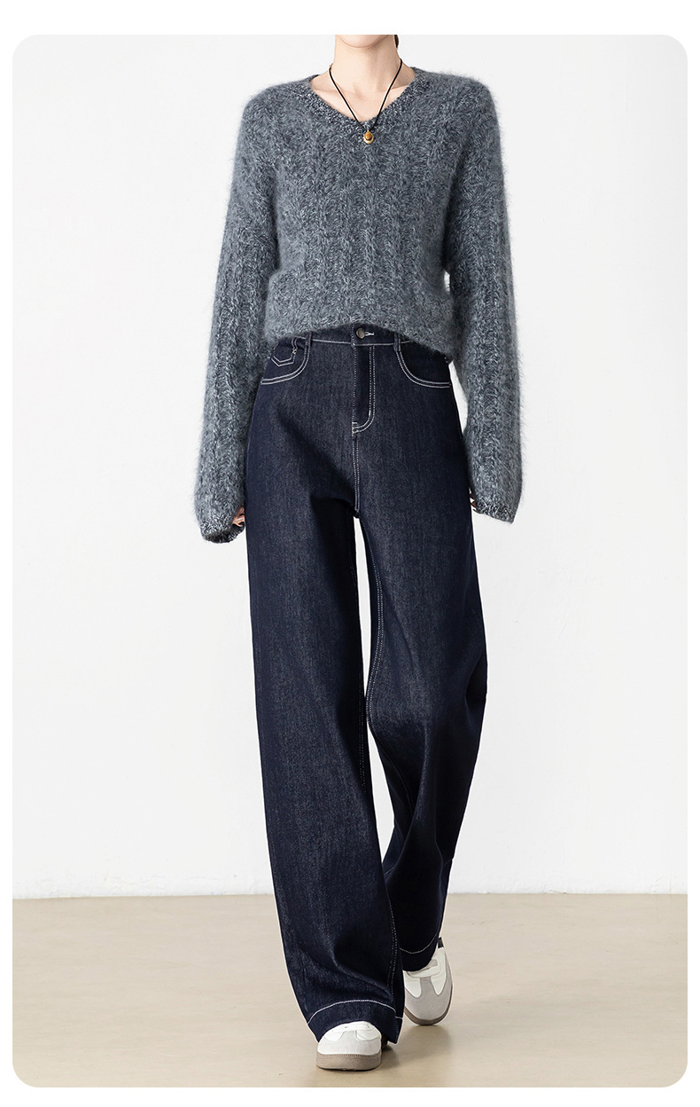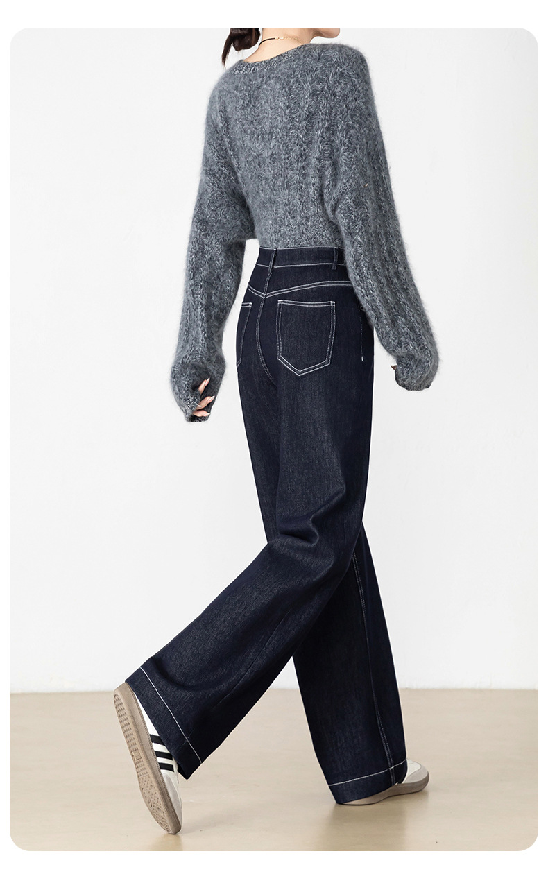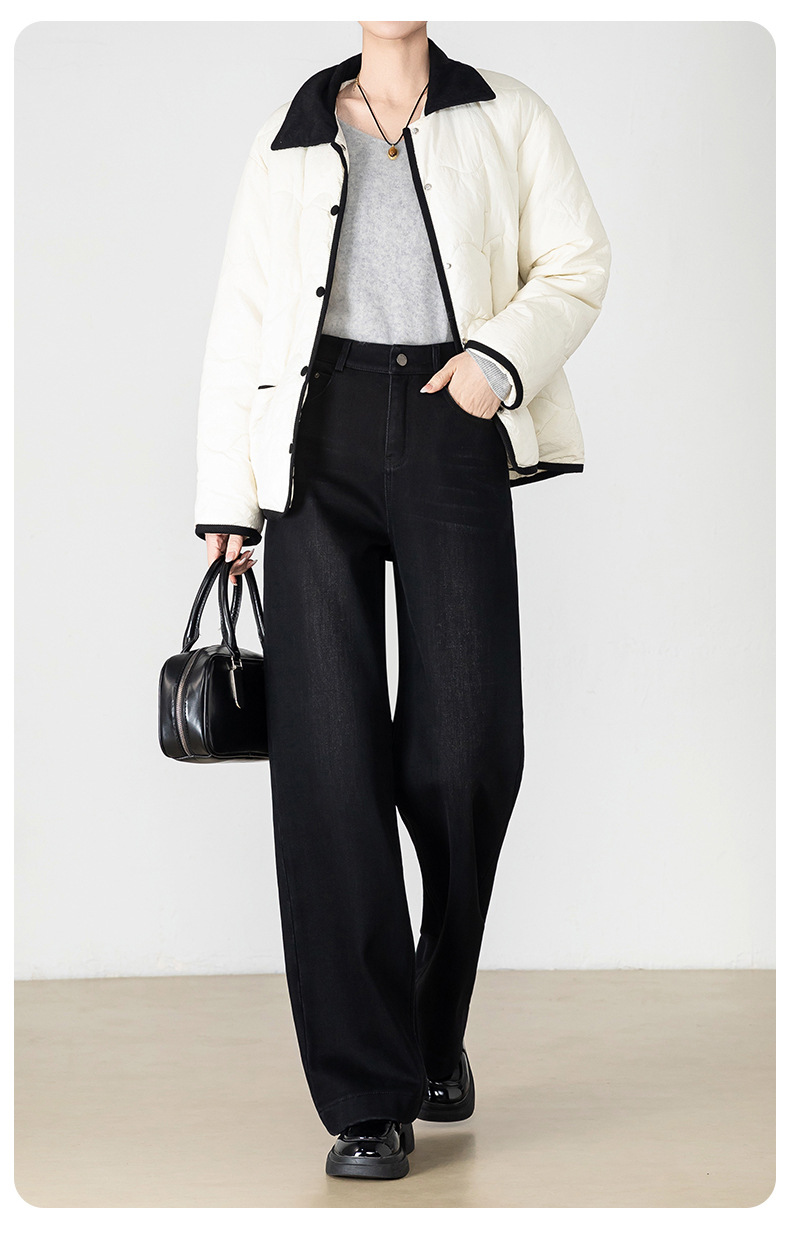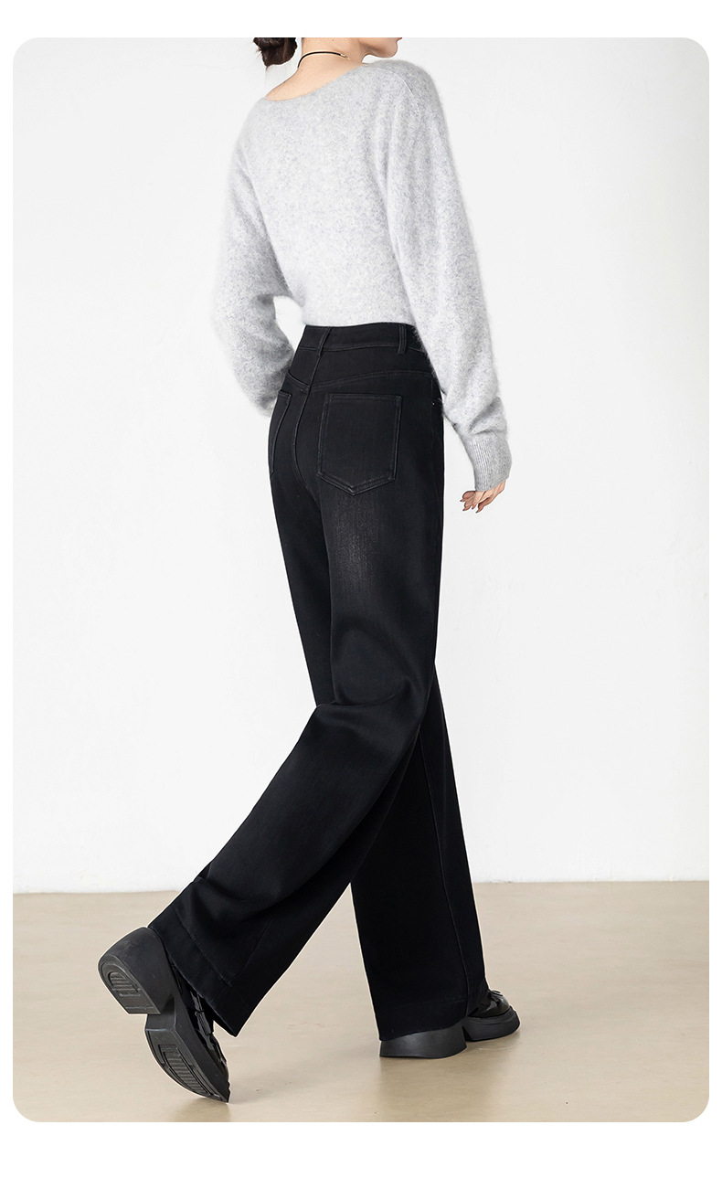 Retro fleece jeans for women's autumn and winter 2025 new high-waisted loose narrow light-colored straight-leg wide-leg pants