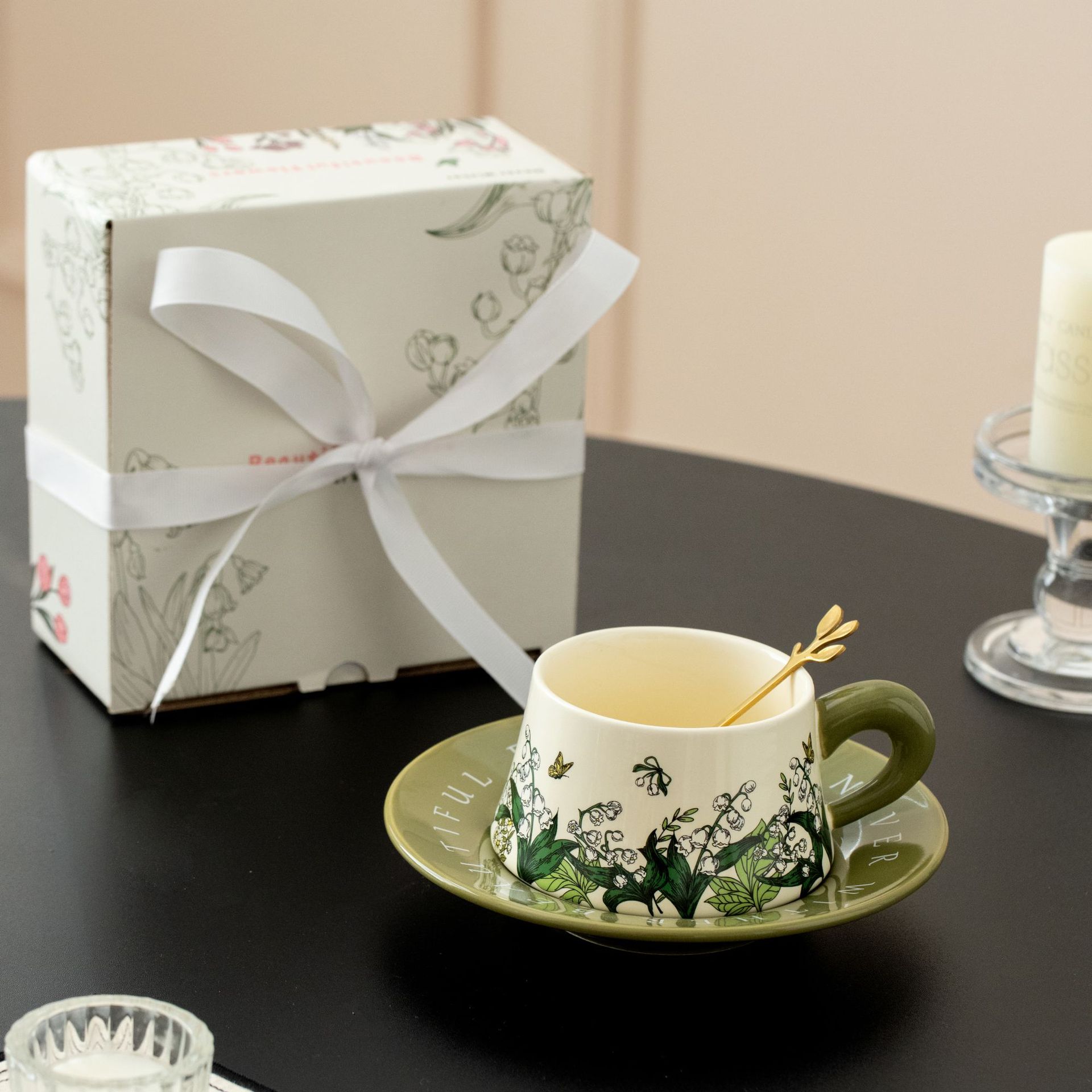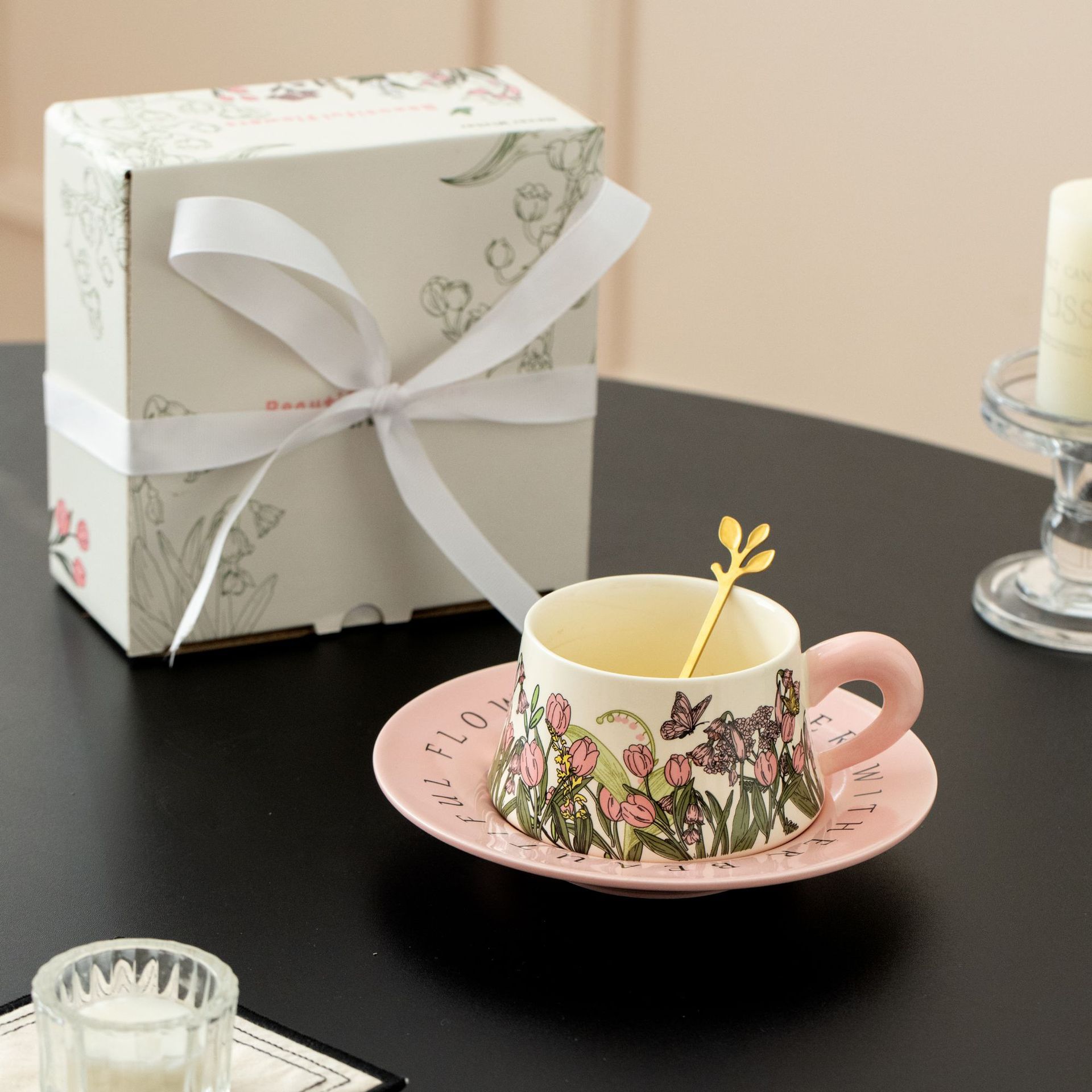 Tulip Ribbon Gift Box Set [Comes with a Golden Flower Spoon