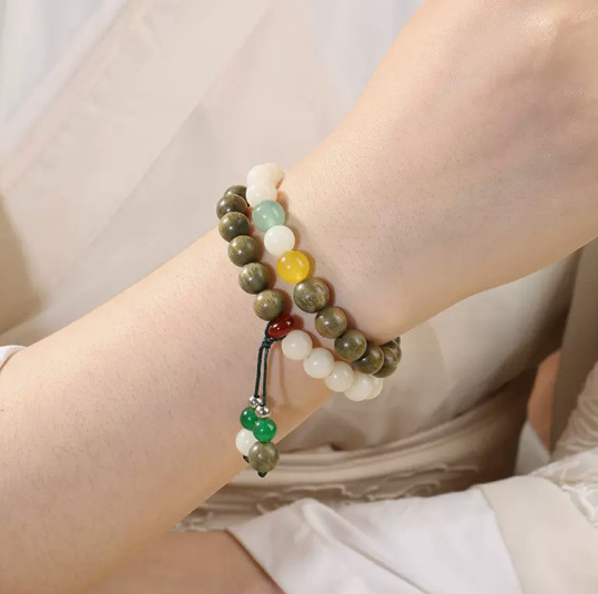 Retro green sandalwood Buddhist prayer beads bracelet, Bodhi root bracelet, couple style cat paw sandalwood jewelry, natural Chinese-style Buddhist prayer beads