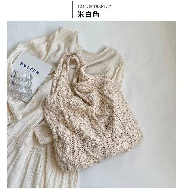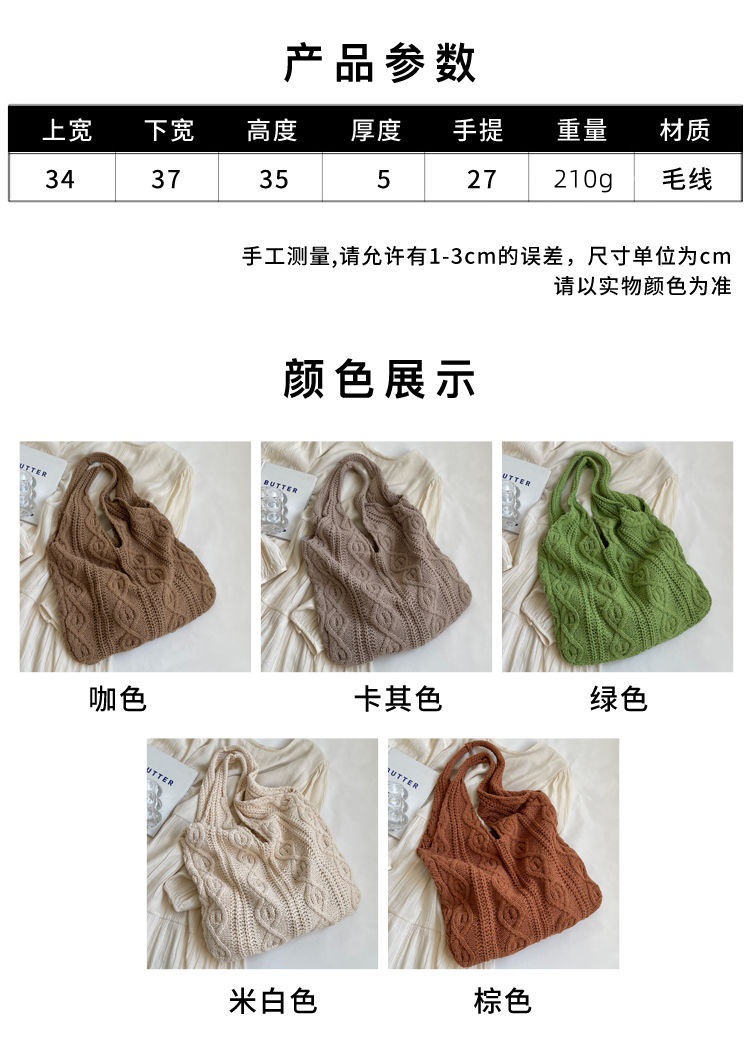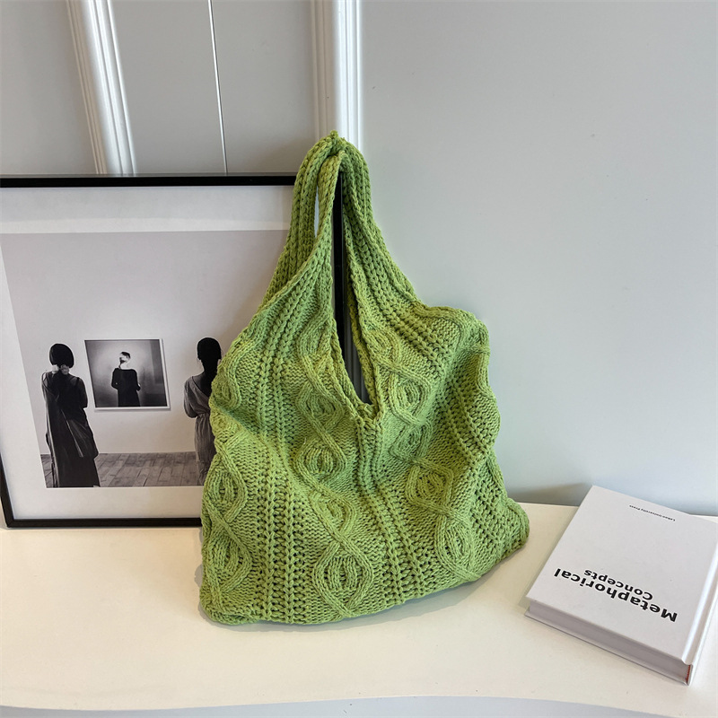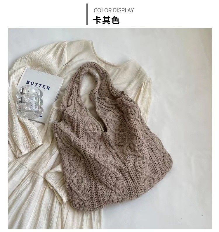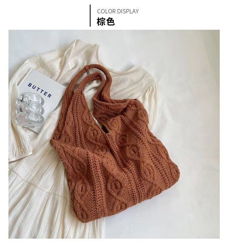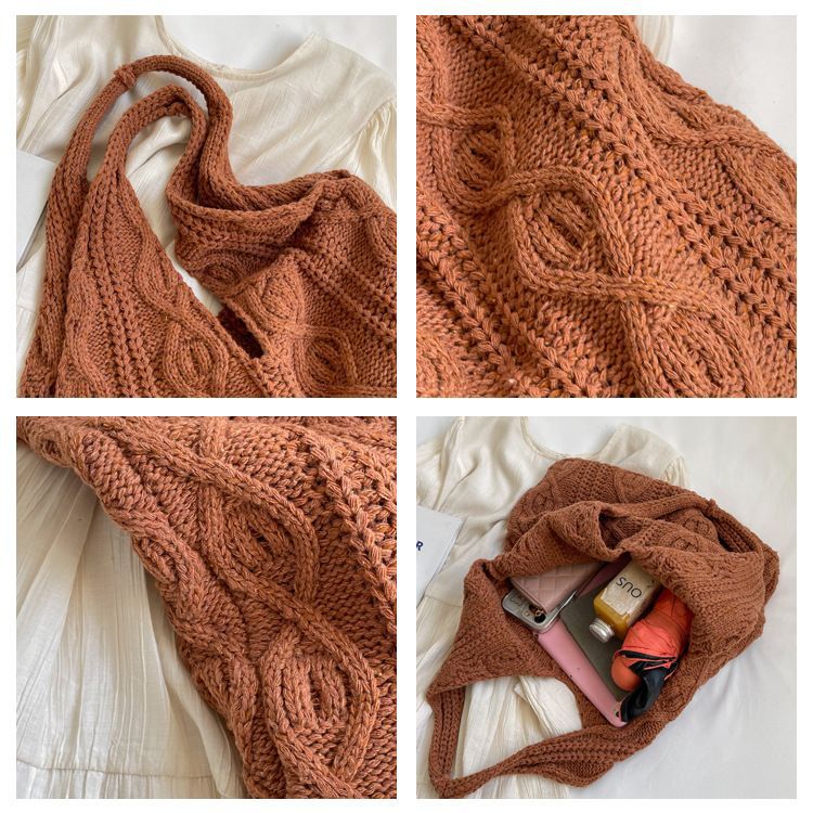 Retro knitted bags, hand-knitted woolen bags, tote bags, versatile shoulder bags, ladies' handbags, shopping bags