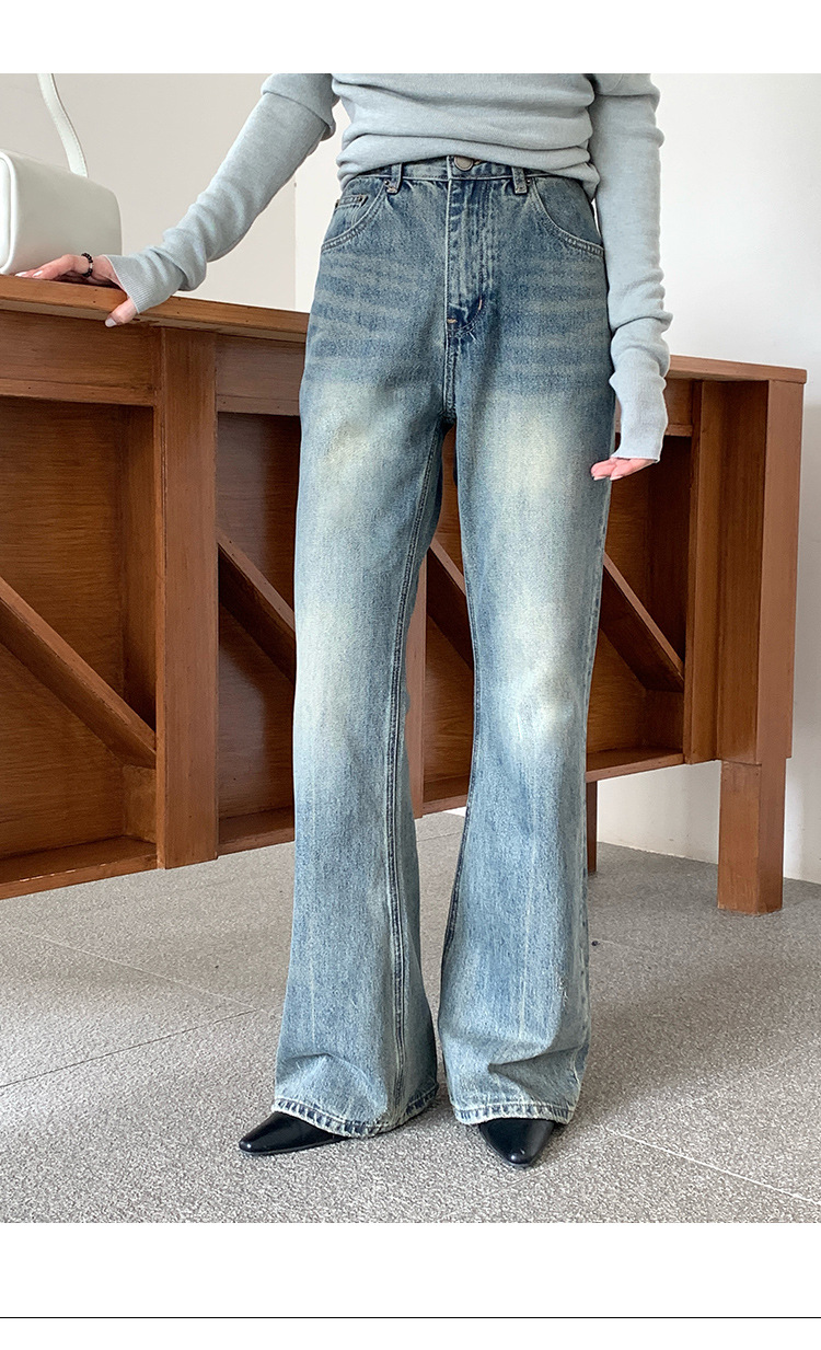 Retro narrow straight-leg jeans for women's autumn and winter 2025 new style Korean high-waisted slimming versatile casual floor-length pants