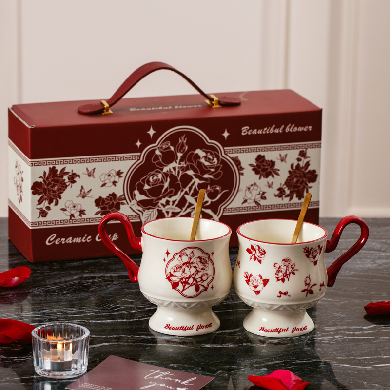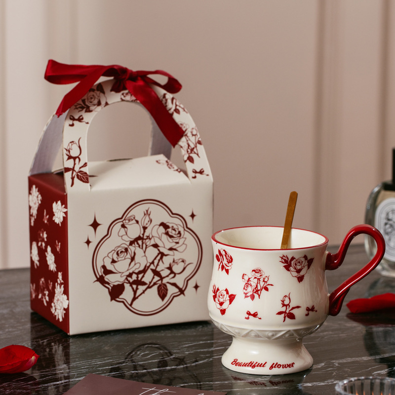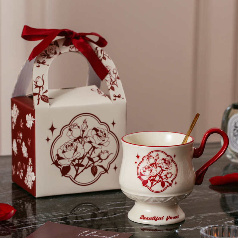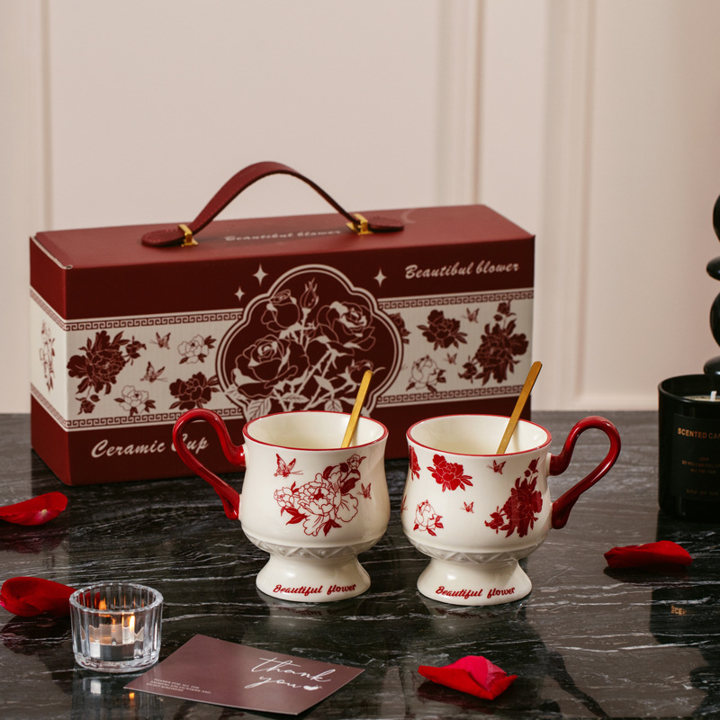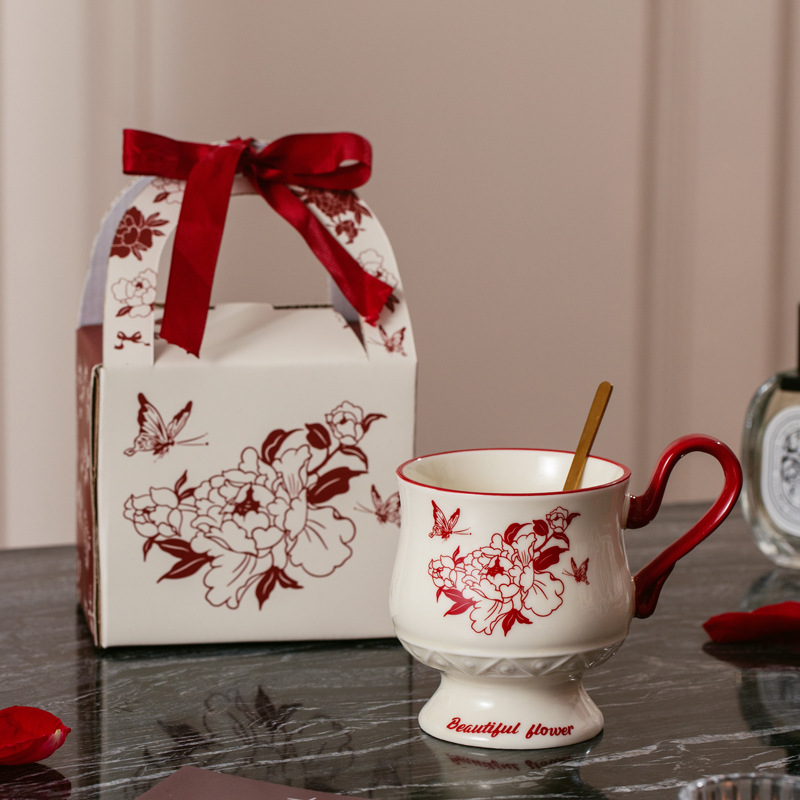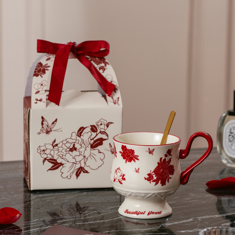 Full Flower Peony [Cup + Spoon + Hand-held Gift Box Set]