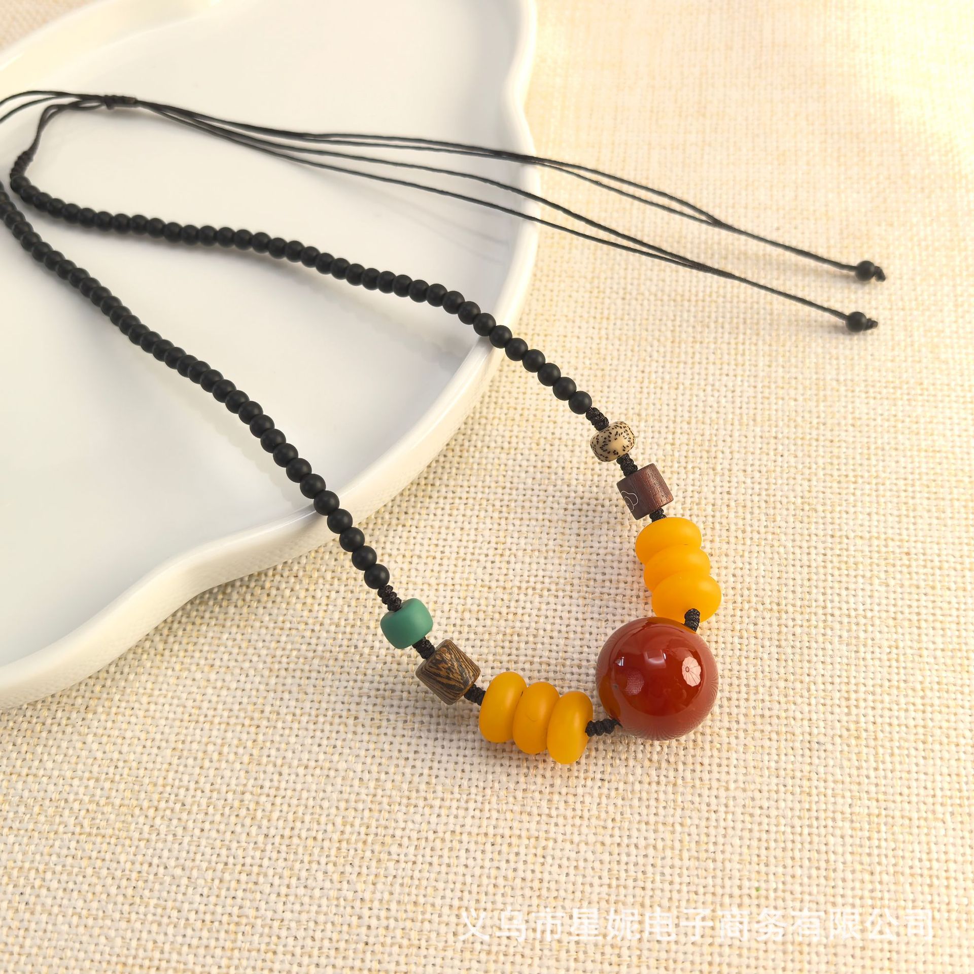 Retro second-generation amber bead necklace, versatile for women, ethnic-style peace pendant, collarbone chain, pendant, sweater accessory