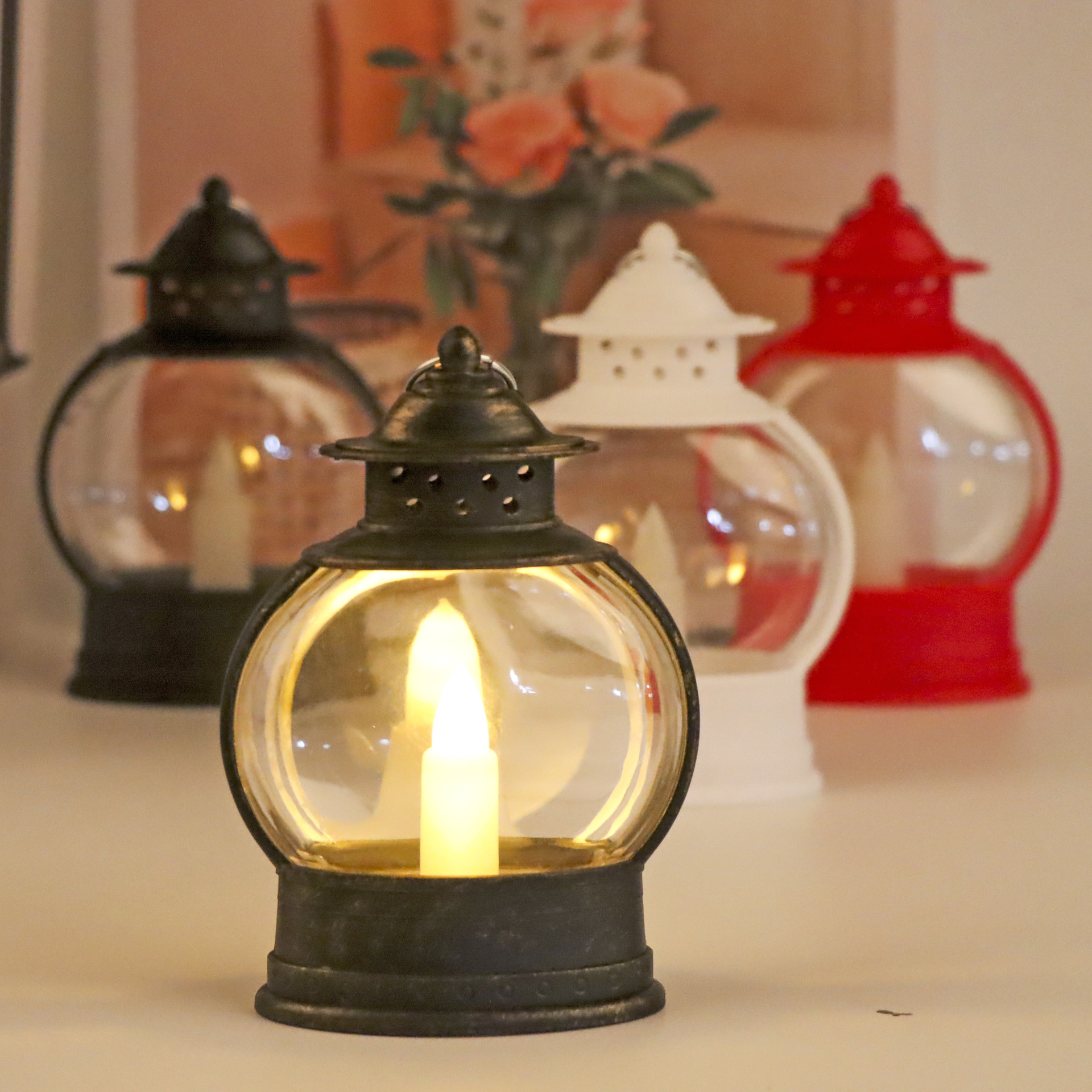 Retro small oil lamps, plastic creative candles, wind lamps, led decorative handicrafts and ornaments