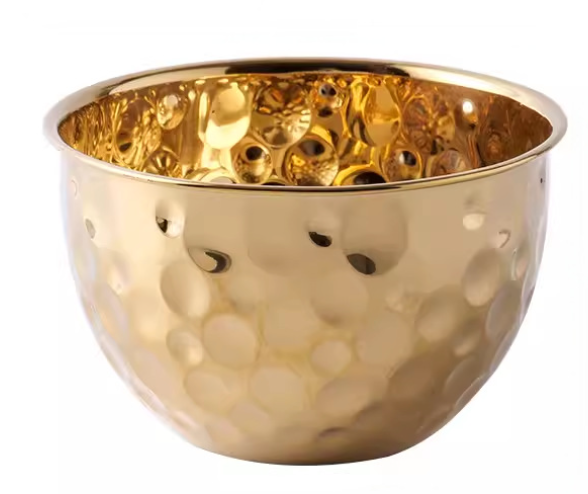 Retro stainless steel creative fruit dessert outdoor camping patterned hammer patterned soup bowl golden light luxury bowl European salad bowl