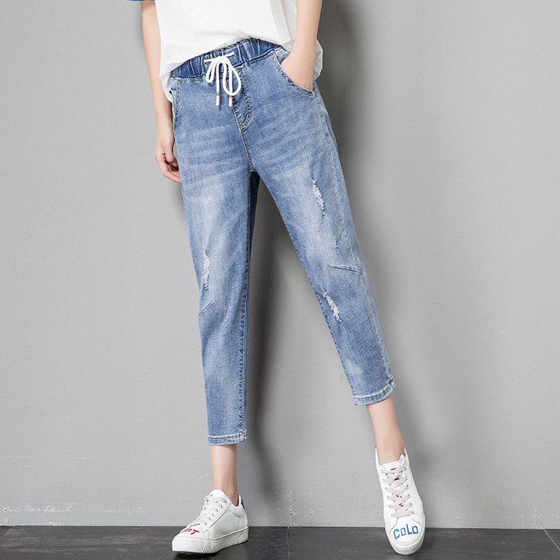 Ripped 8-inch and 7-inch pants for women, high-waisted dad pants for women, 7-inch and 8-inch jeans for women, loose autumn thin Harem pants