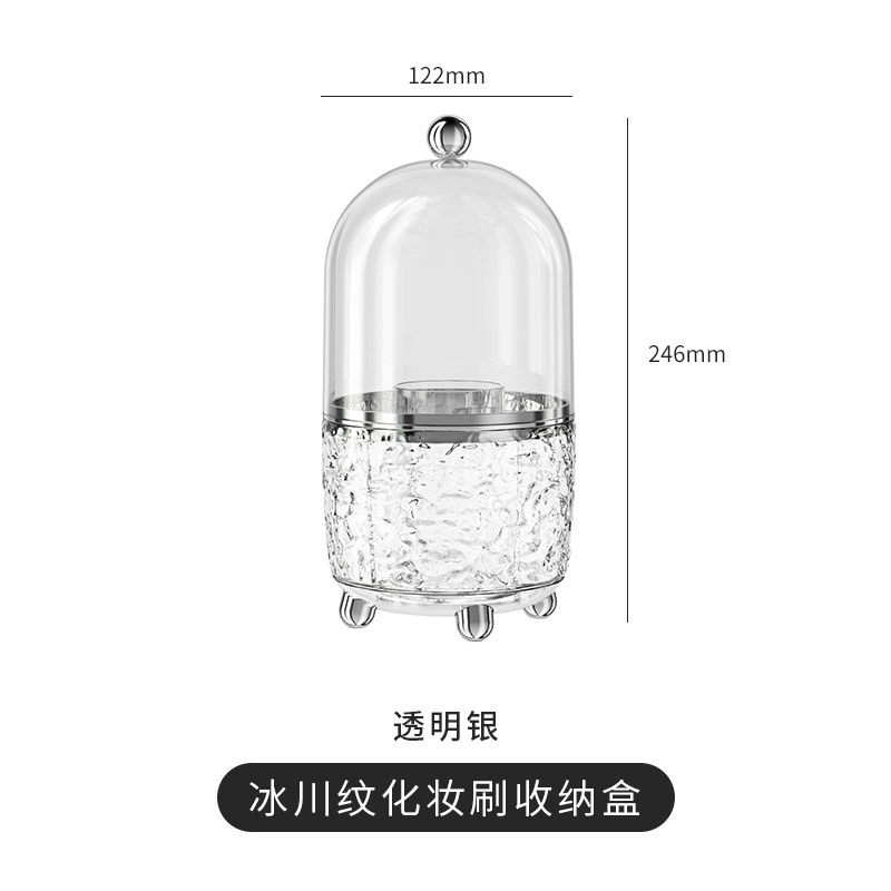 Rotating makeup brush storage bucket, light luxury transparent desktop, lipstick storage with lid, dust-proof eyebrow pencil cosmetics storage box
