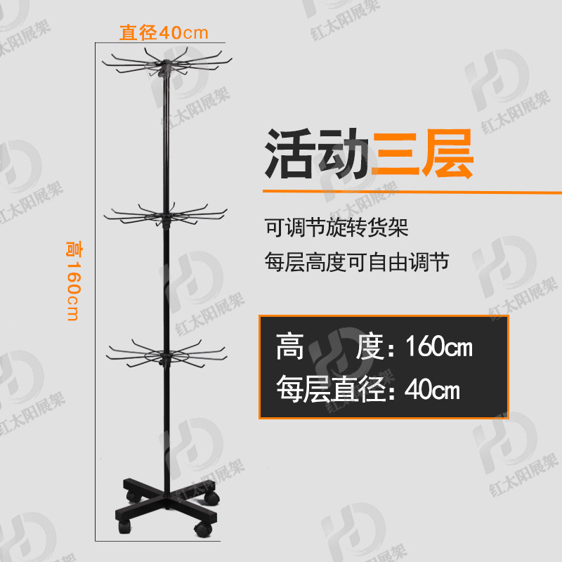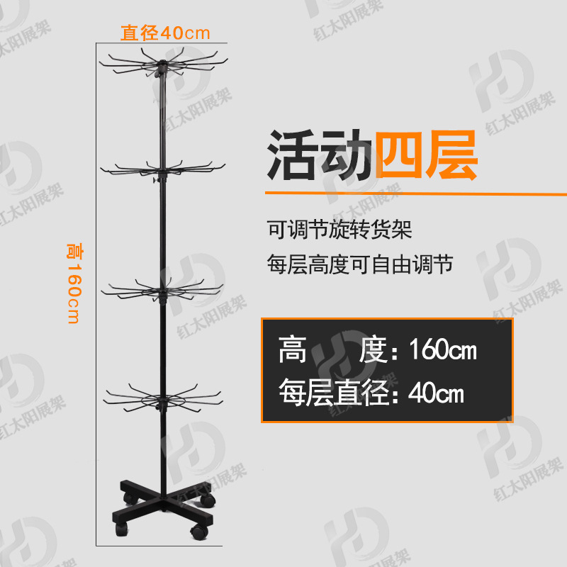 Rotating shelf, street stall sock rack, movable five-layer accessory display rack, metal promotional hook display rack