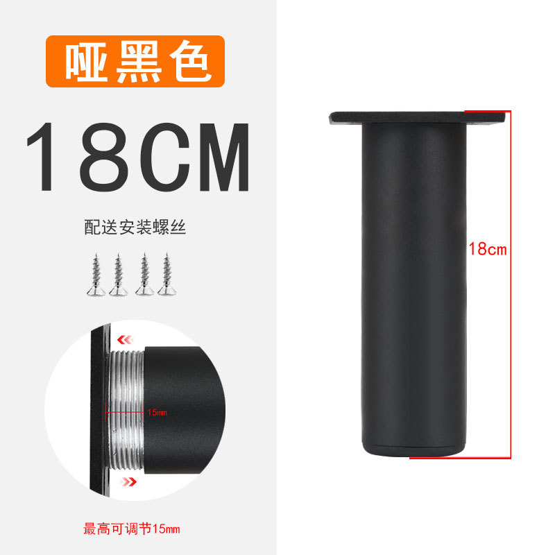 Round aluminum alloy cabinet feet, black support furniture legs, adjustable matte TV headboard, bathroom cabinet feet