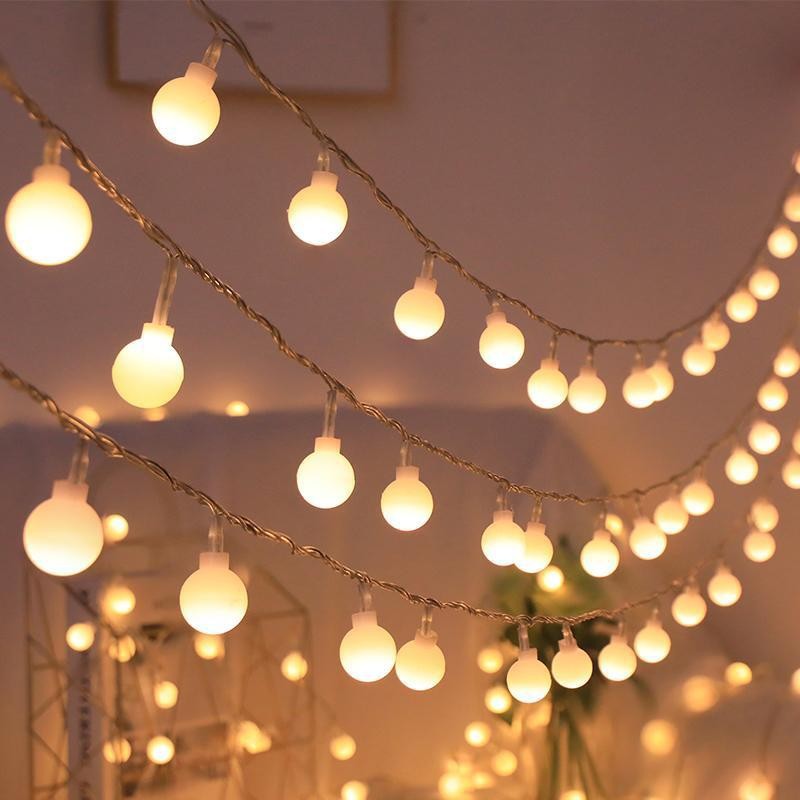 Round balls, snowflakes, bells, reindeer, Christmas trees, star lights, Christmas decorations, room atmosphere light strings