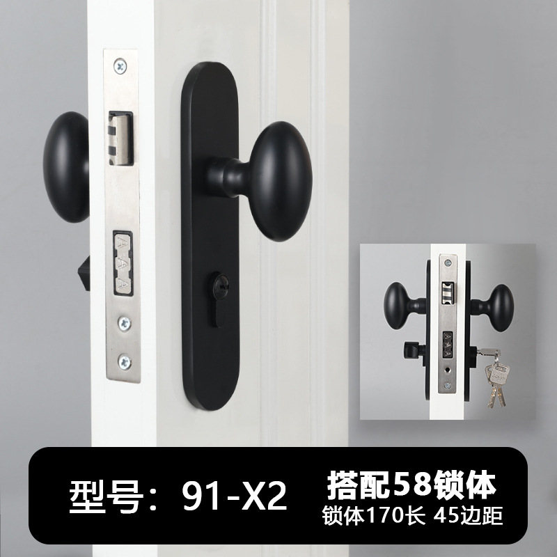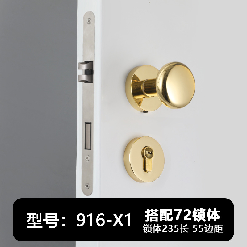 Round golden spherical door lock, black bedroom, American light luxury duck egg-shaped door handle door, Nordic style 58 72