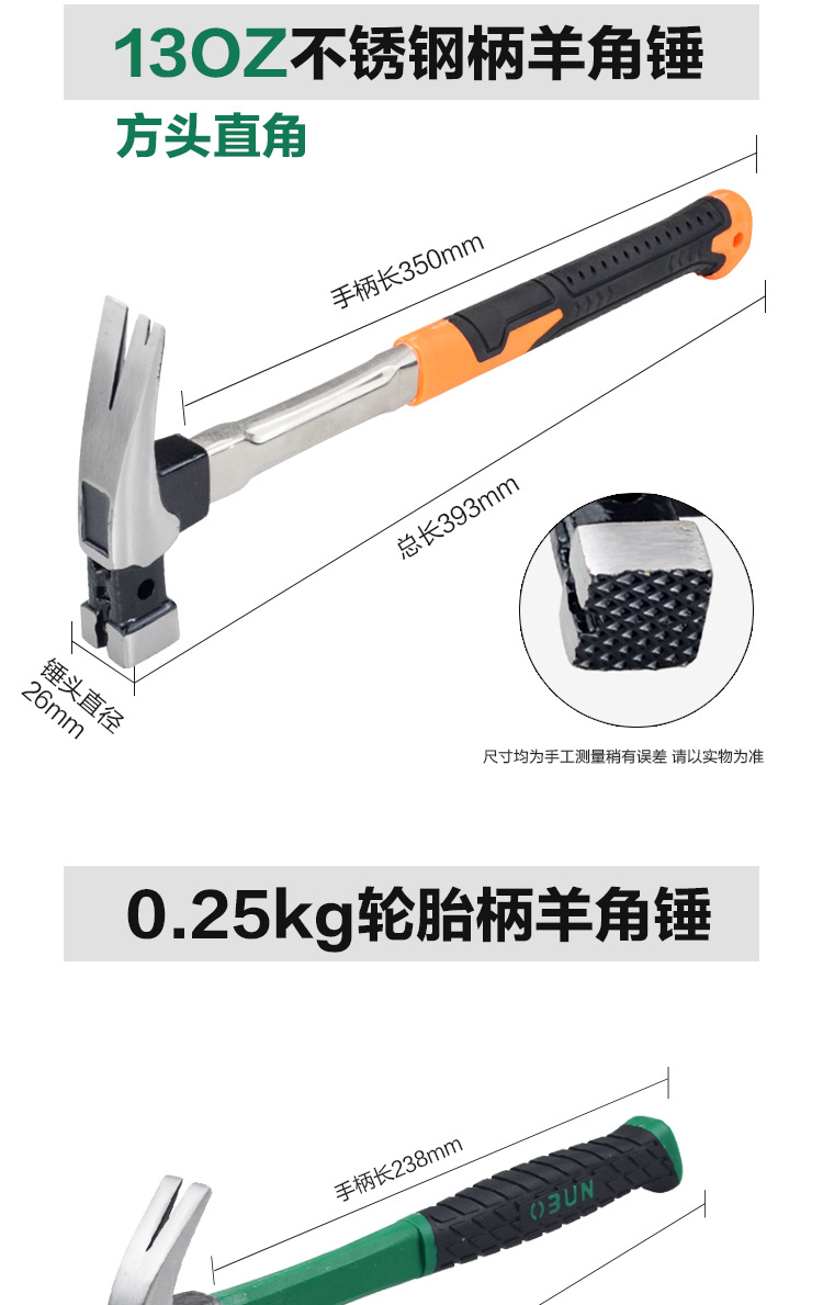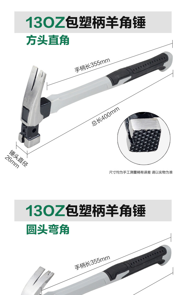 121124, 13oz plastic-coated handle horn hammer round head Curved corner (box 10/ box 40) 0.68kg