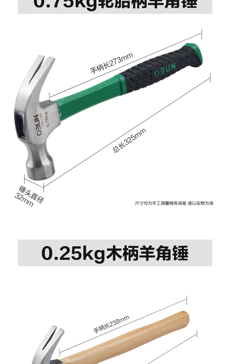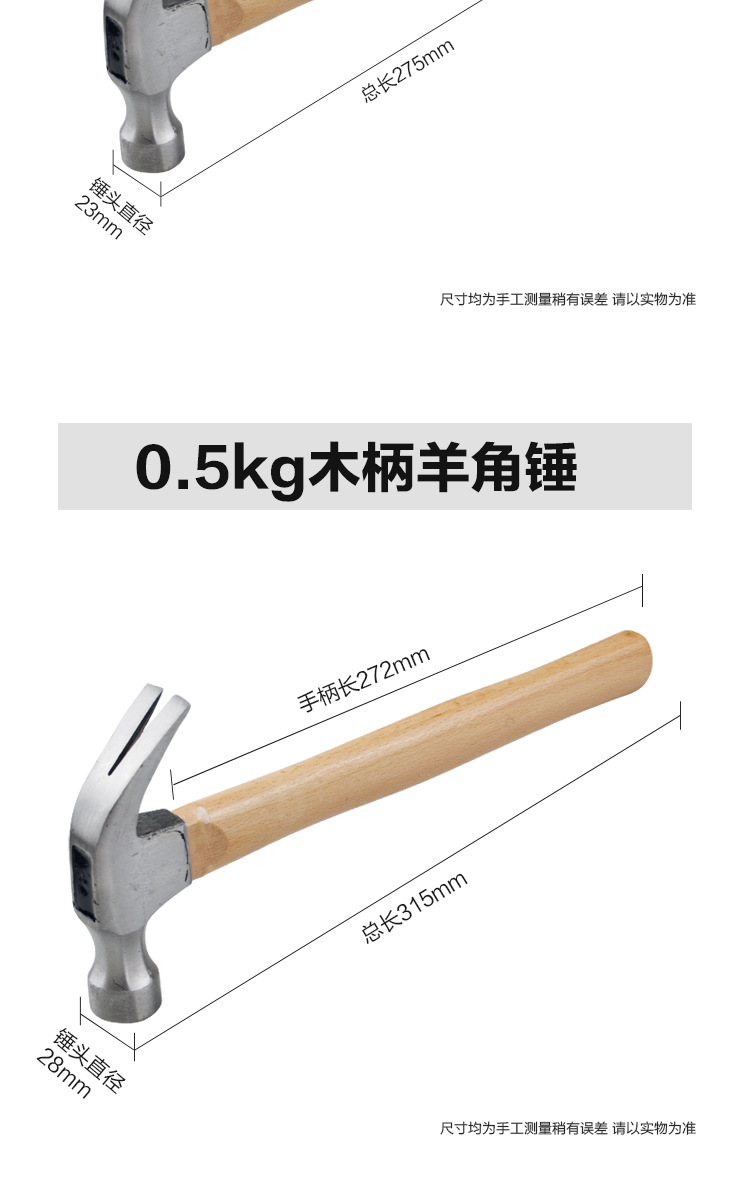 121160,0.5 wooden handle ram's horn hammer (box 8/ box 48), 0.5kg