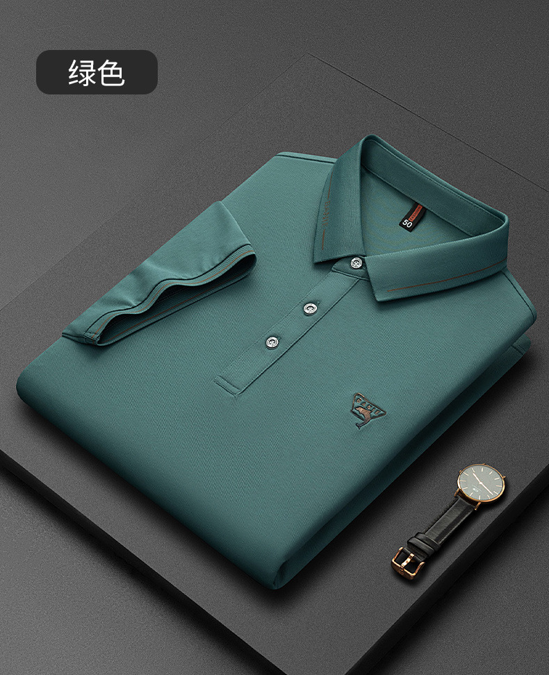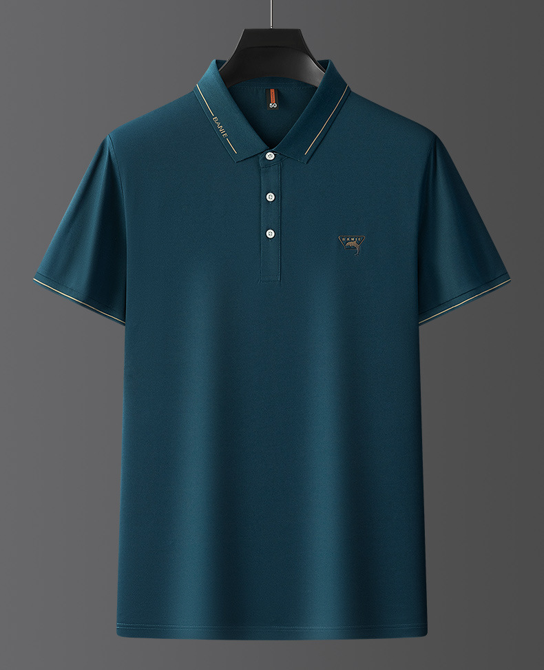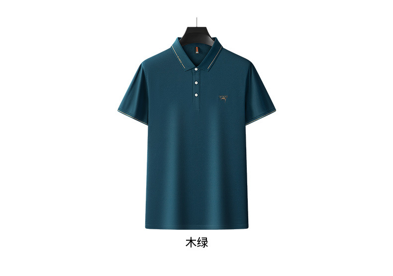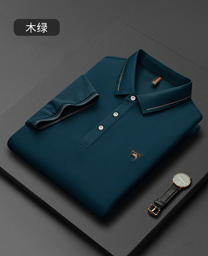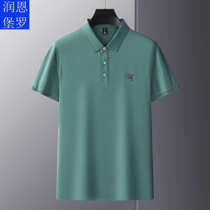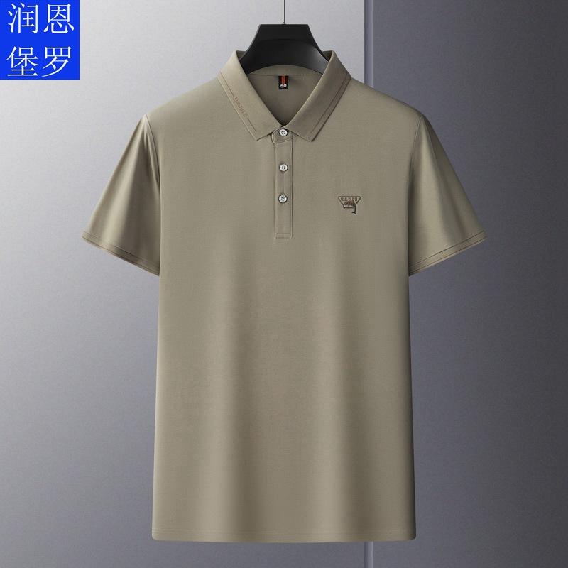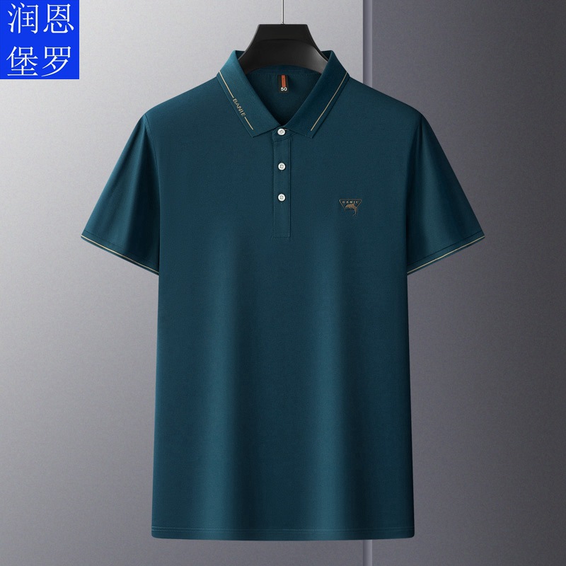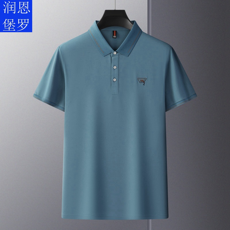 Runenbao Luo 2023 Summer New Mature Men's short-sleeved T-shirt with lapel print Middle-aged men's polo shirt