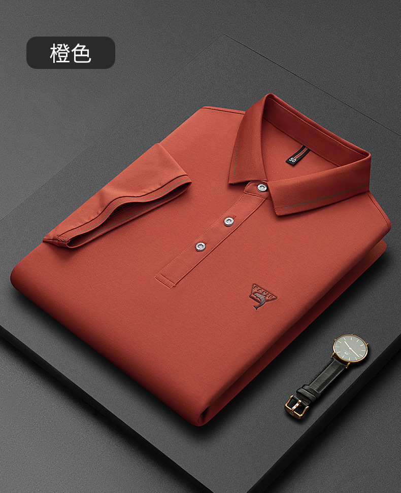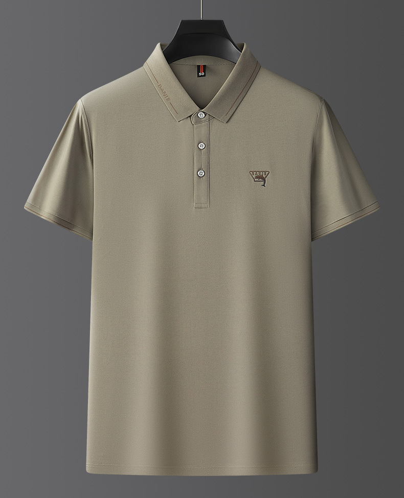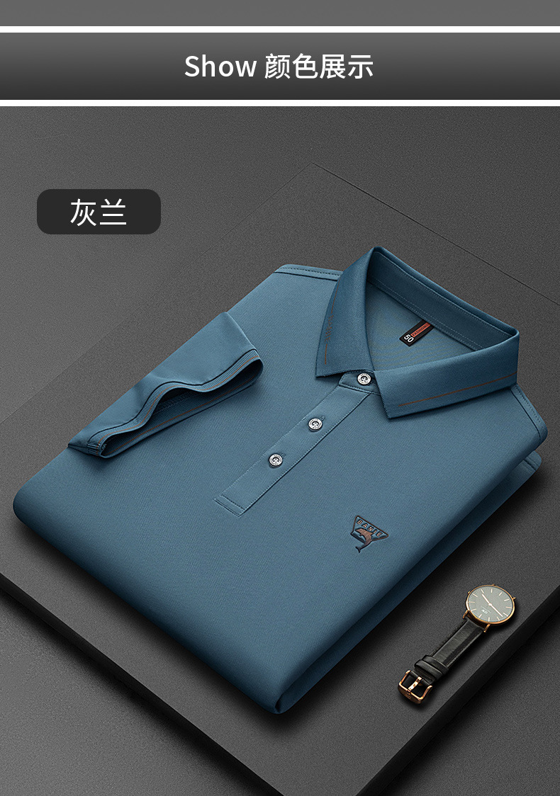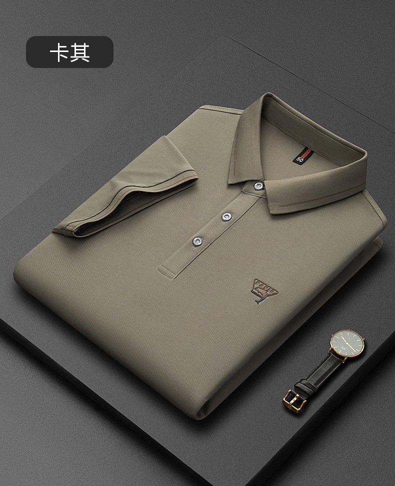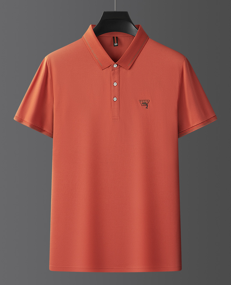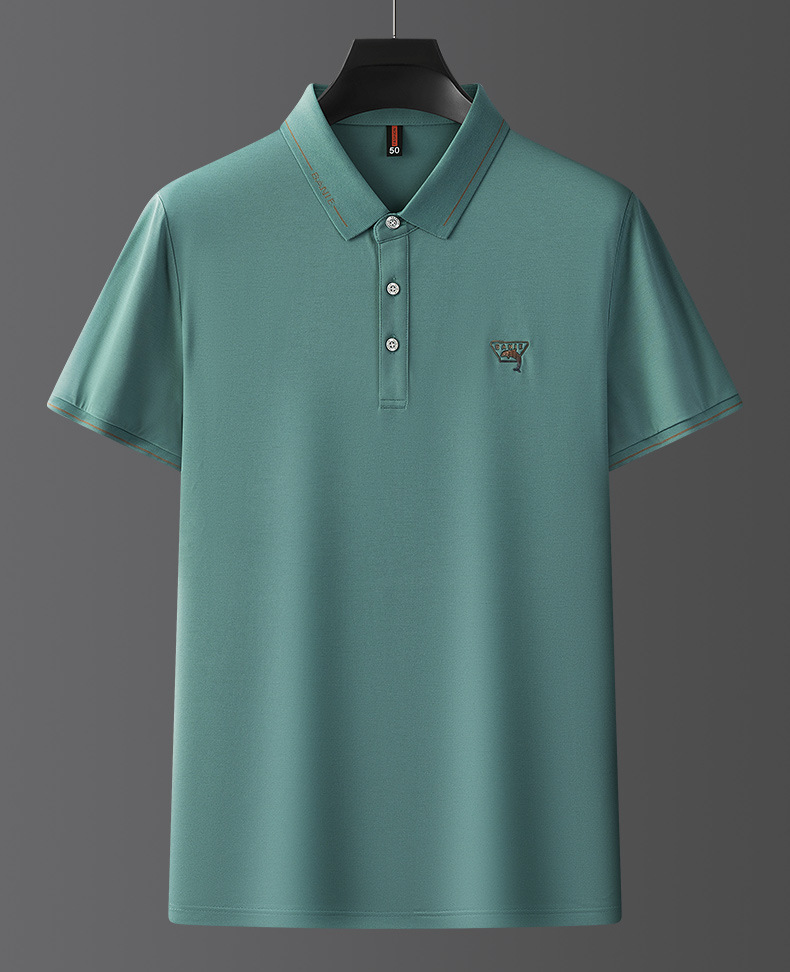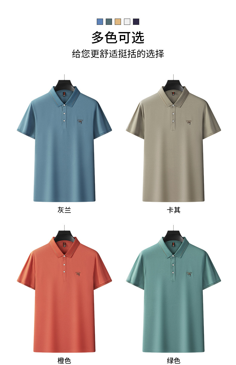 Runenbao Luo 2023 Summer New Mature Men's short-sleeved T-shirt with lapel print Middle-aged men's polo shirt