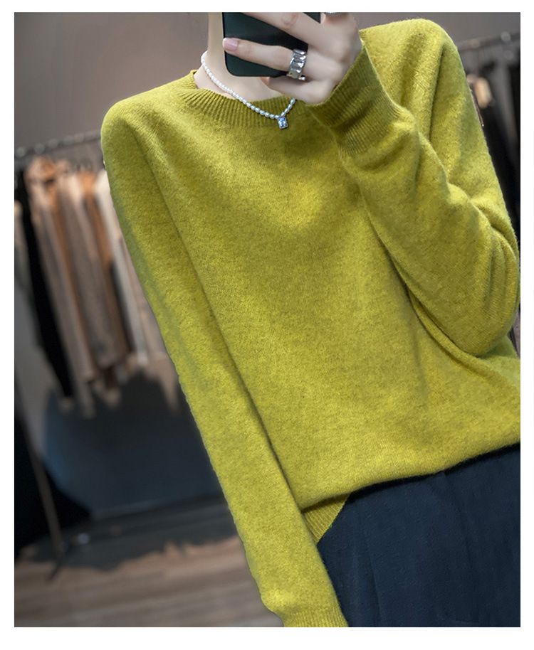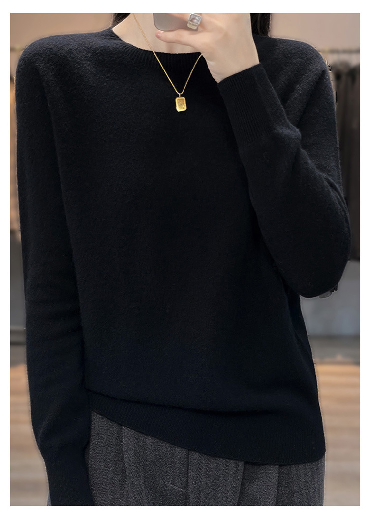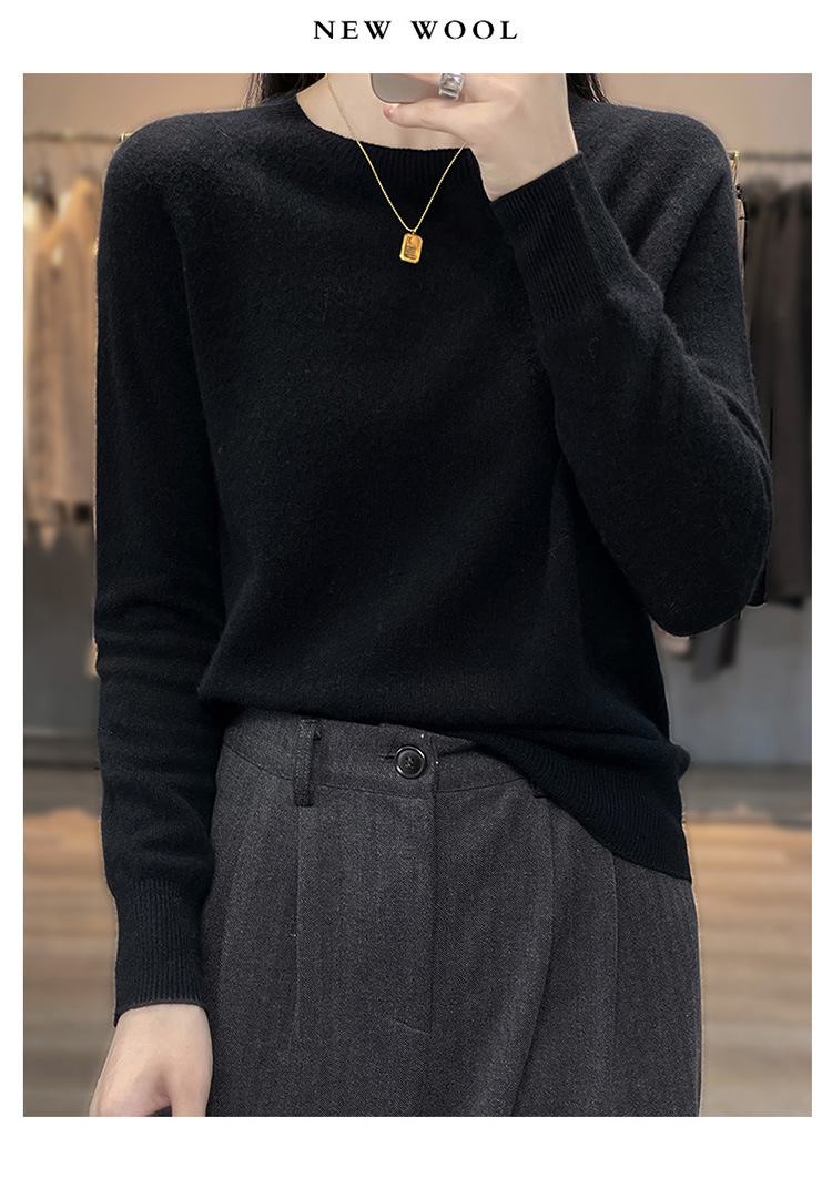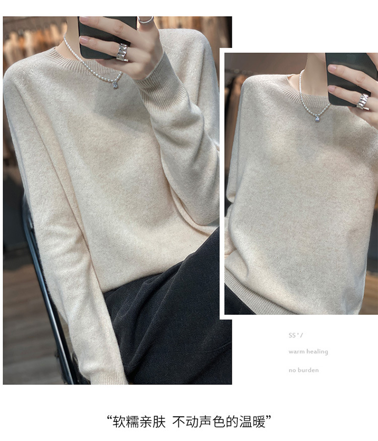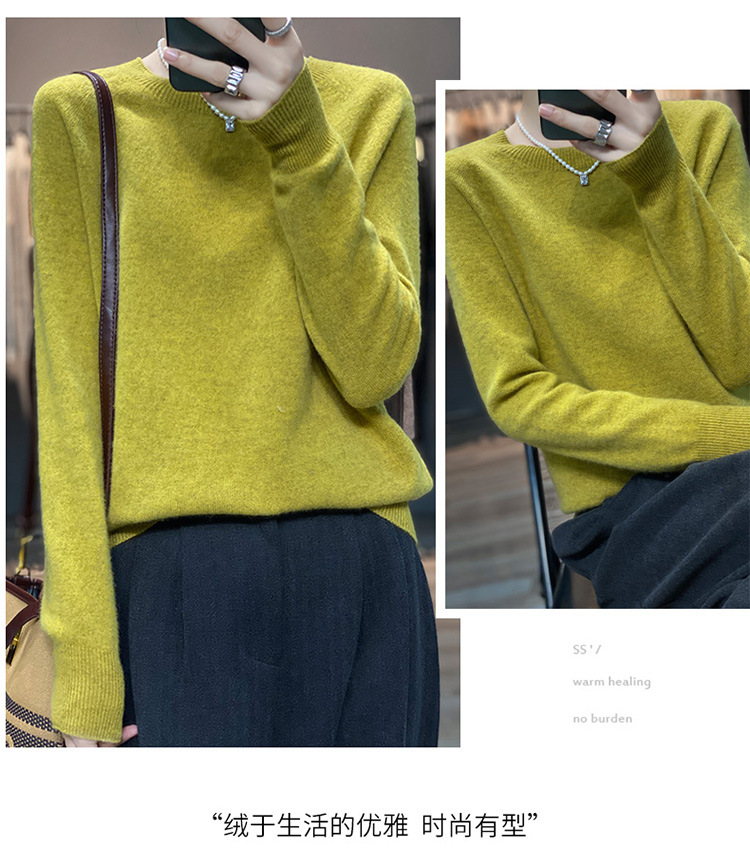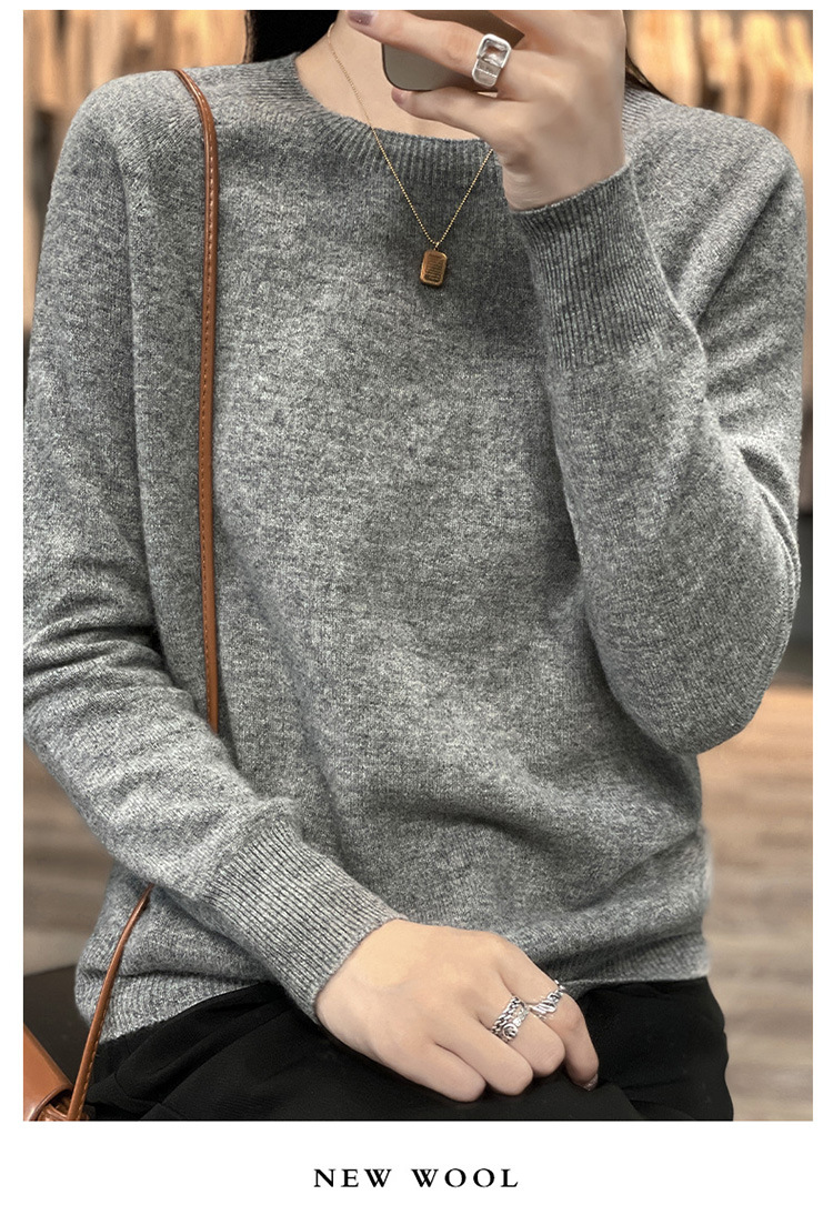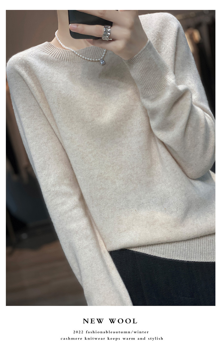Runshi 100% wool sweater, loose round neck, women's pullover, autumn new cashmere knitted sweater, European and American base sweater