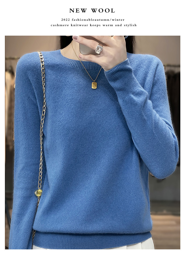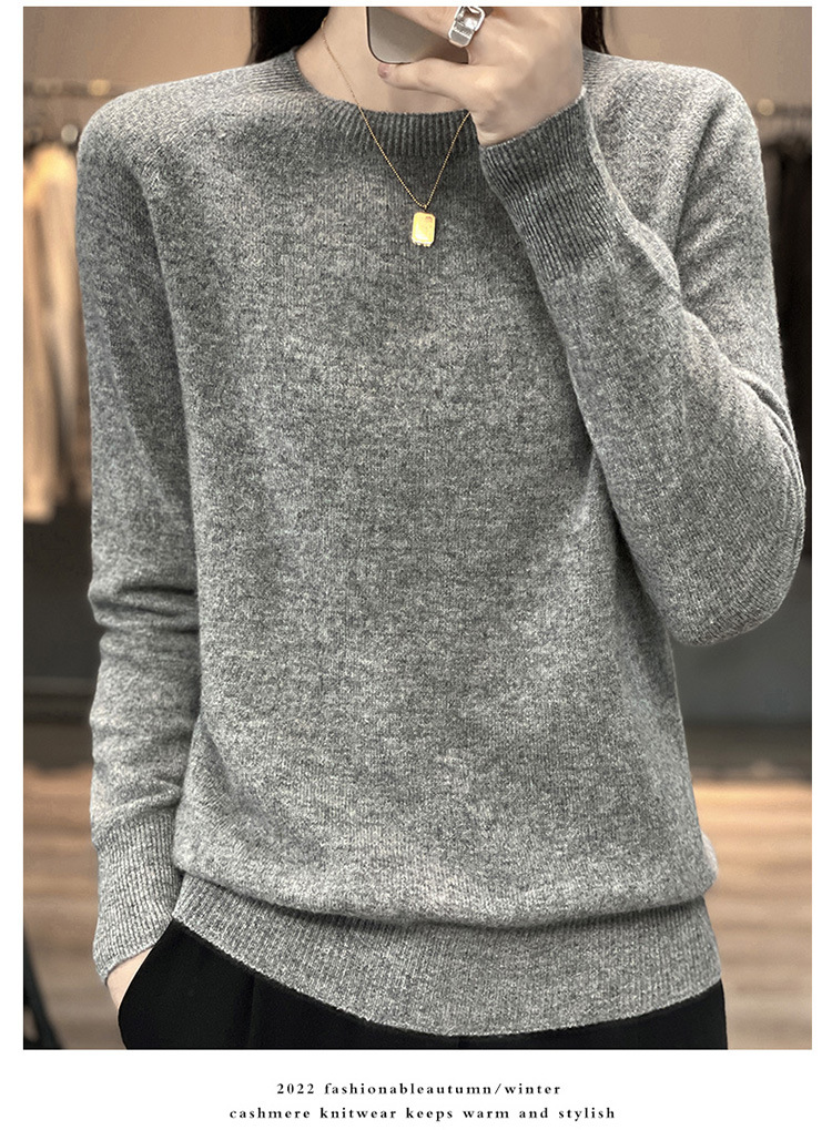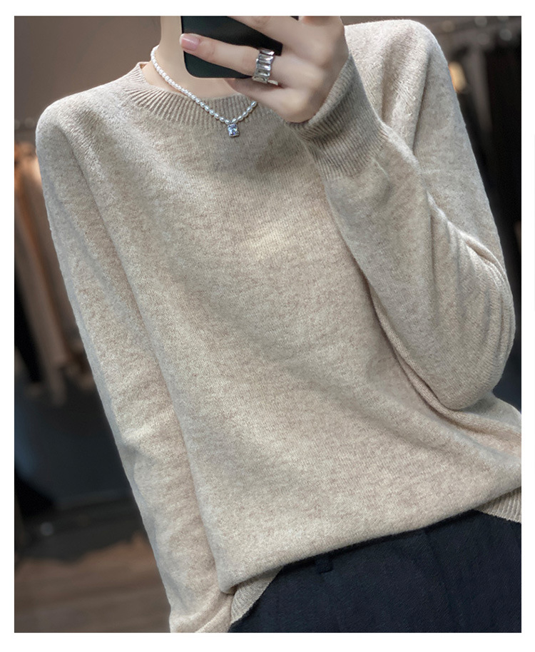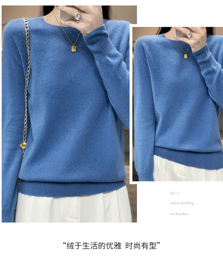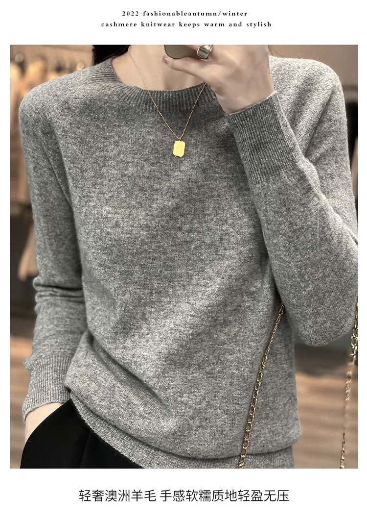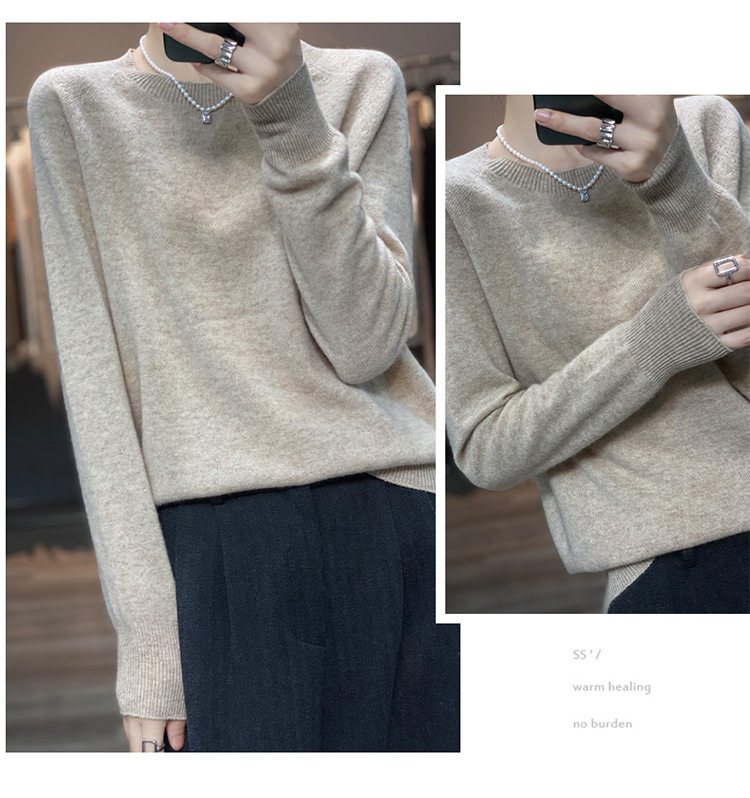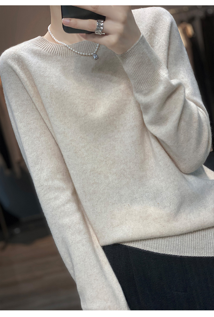 Runshi 100% wool sweater, loose round neck, women's pullover, autumn new cashmere knitted sweater, European and American base sweater