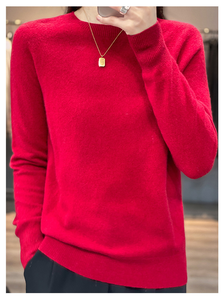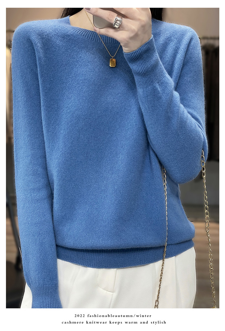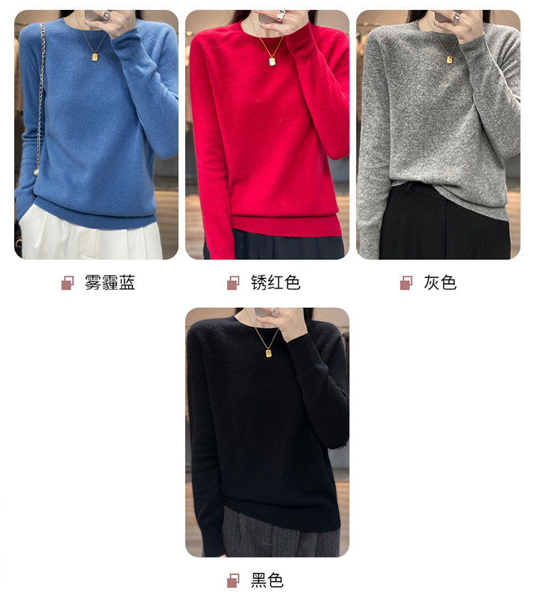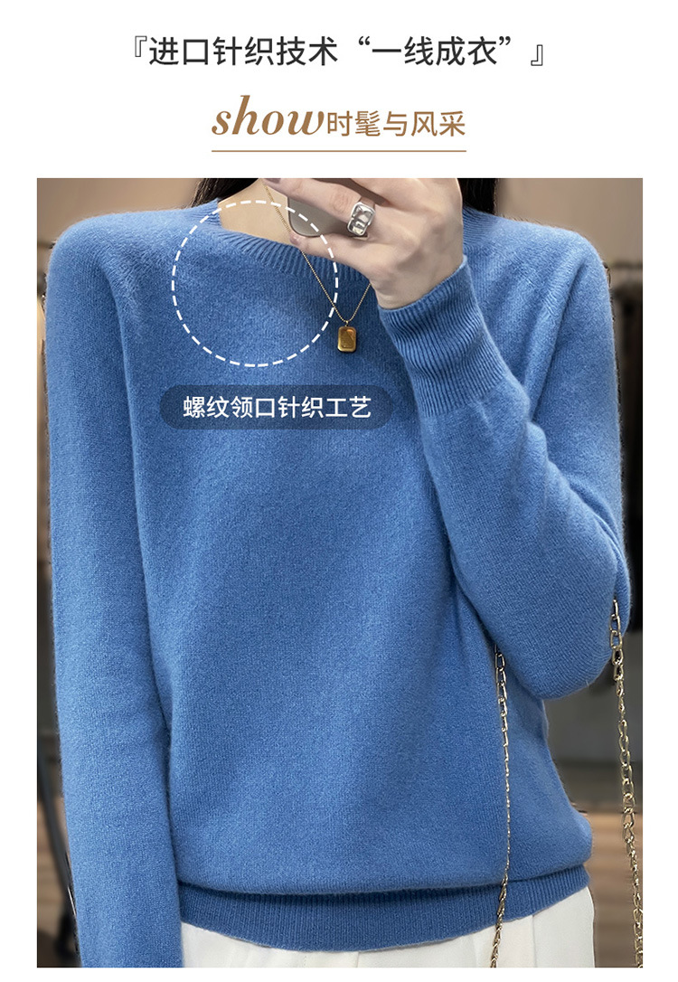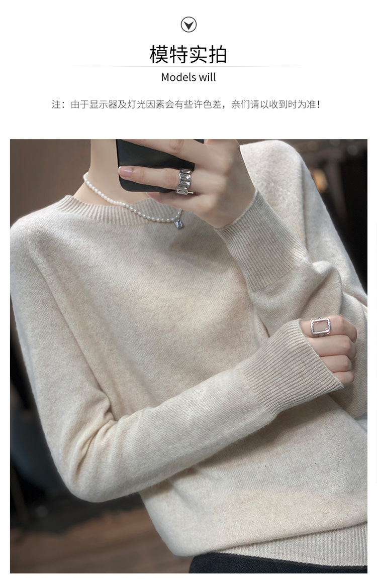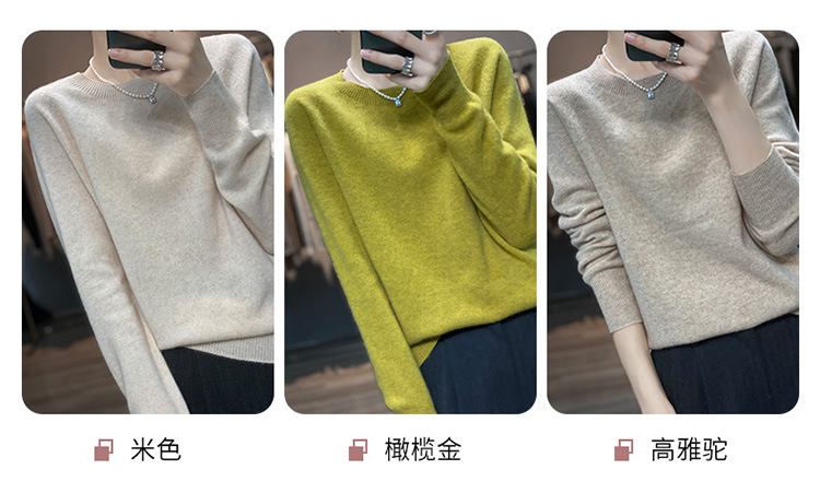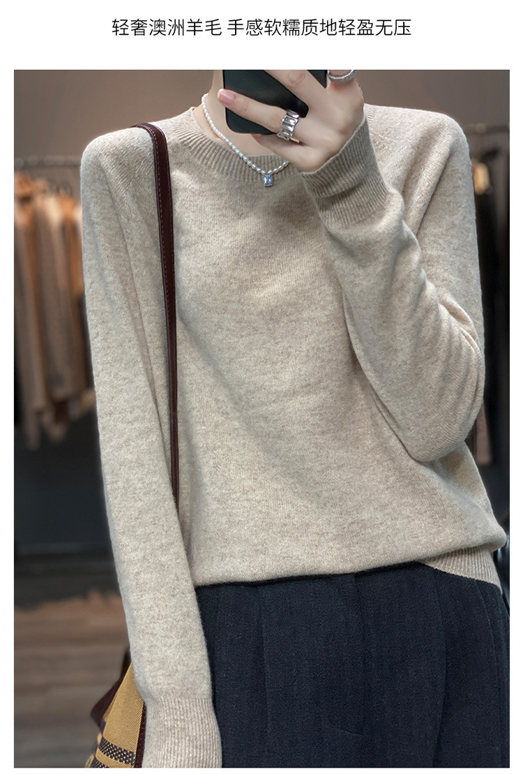 Runshi 100% wool sweater, loose round neck, women's pullover, autumn new cashmere knitted sweater, European and American base sweater
