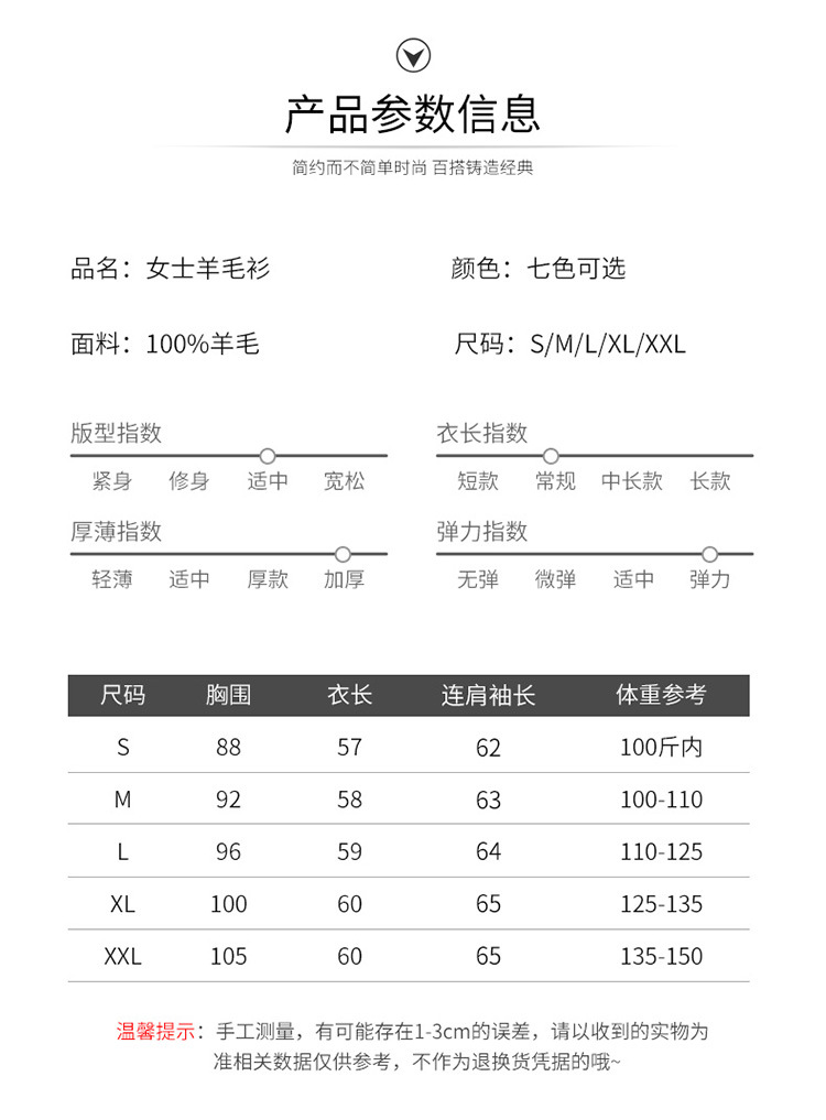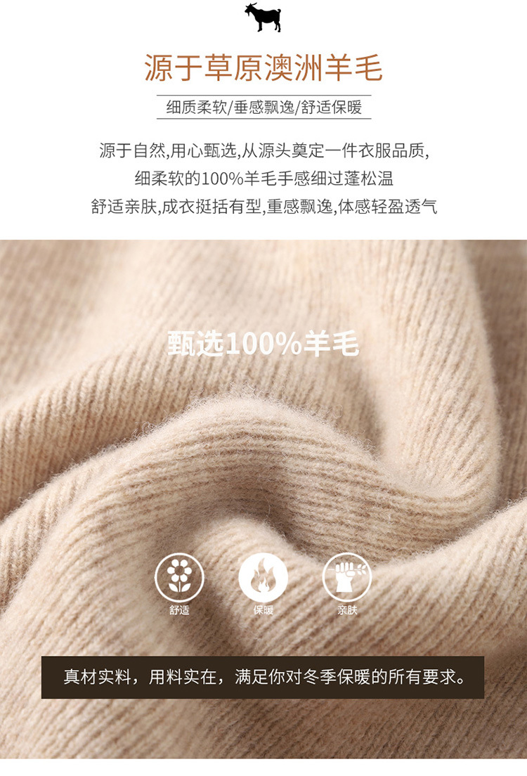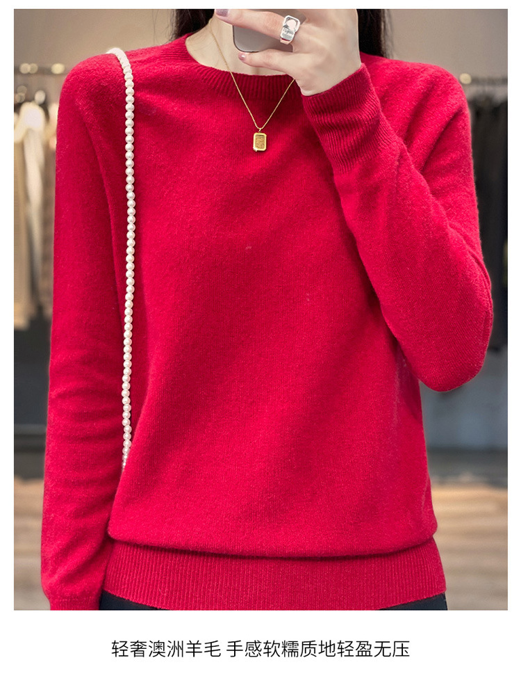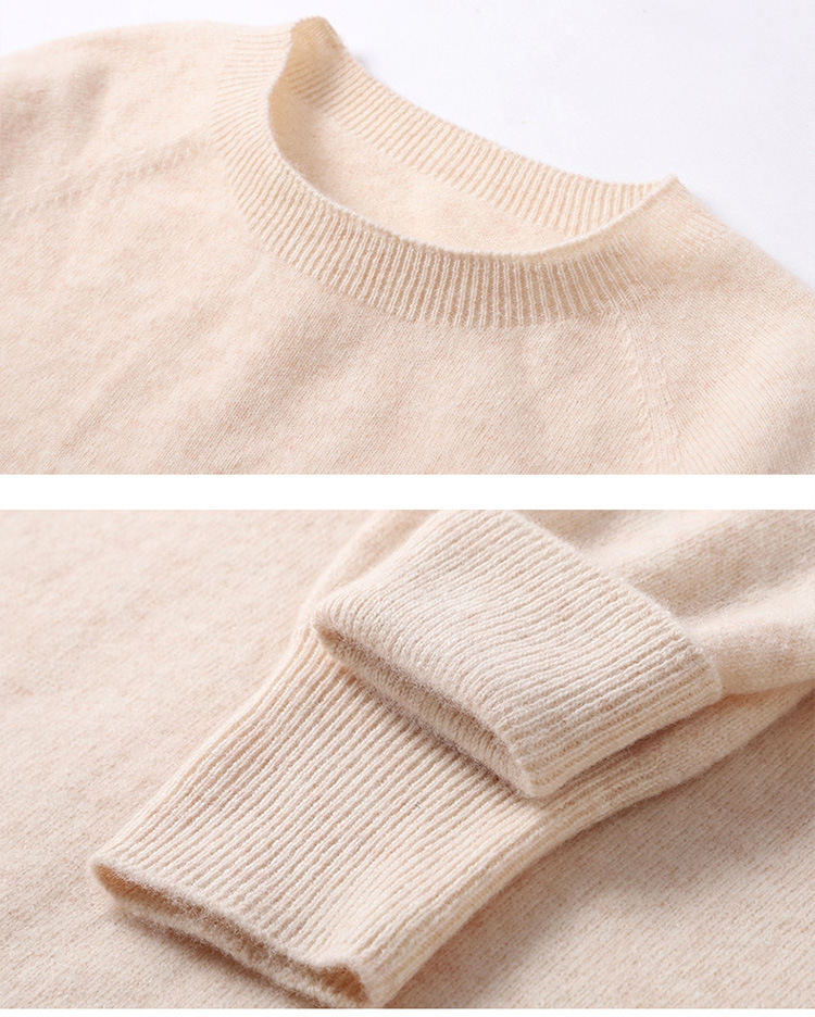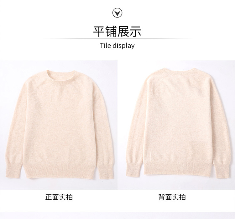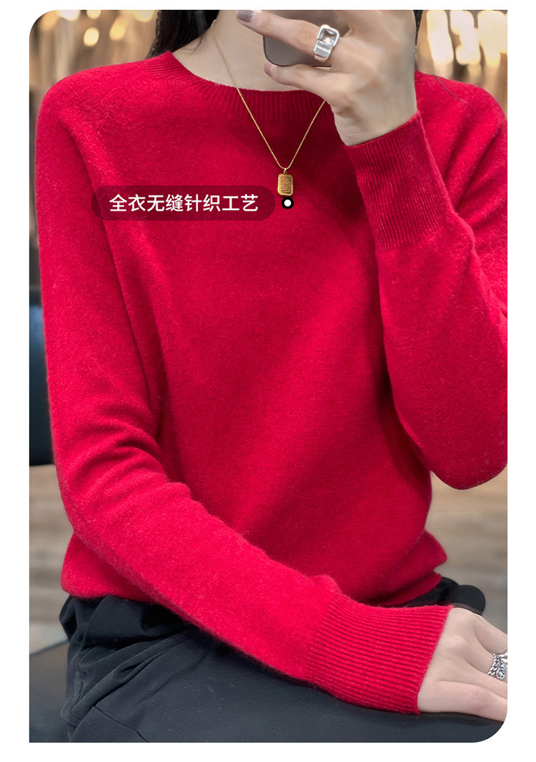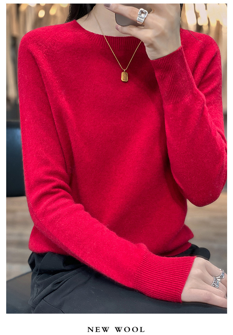 Runshi 100% wool sweater, loose round neck, women's pullover, autumn new cashmere knitted sweater, European and American base sweater