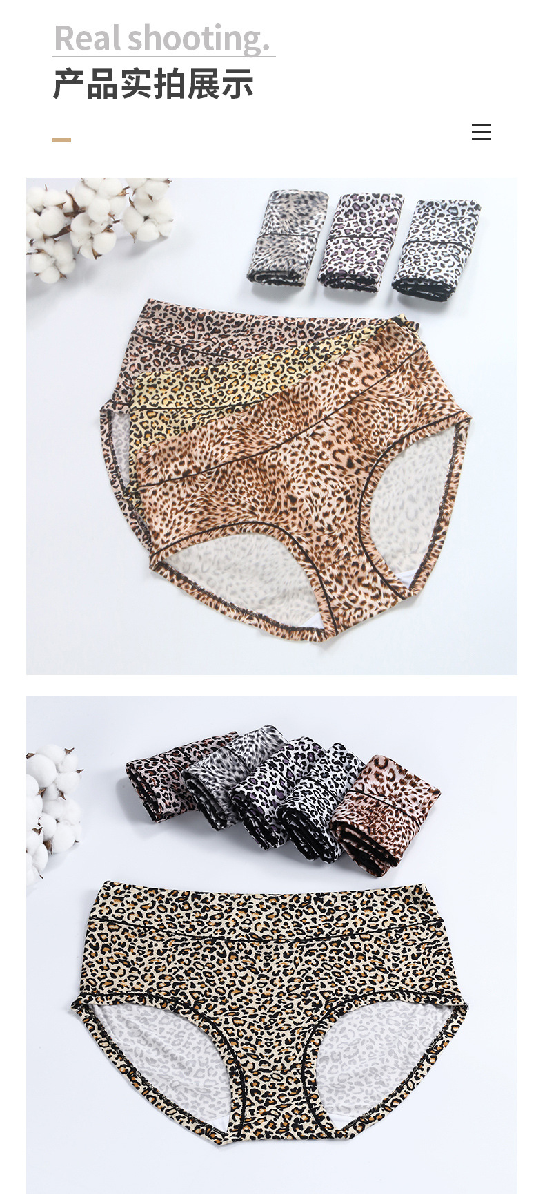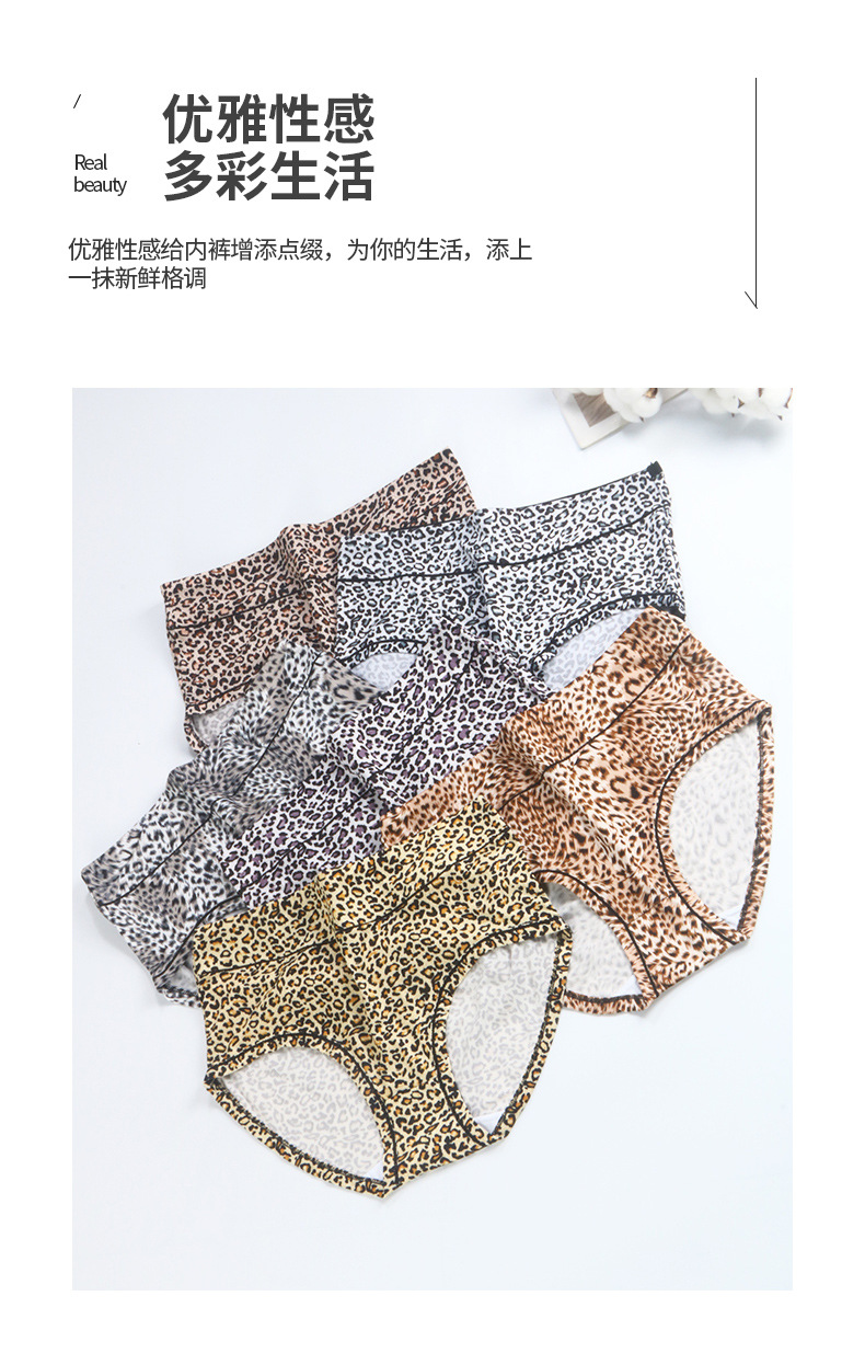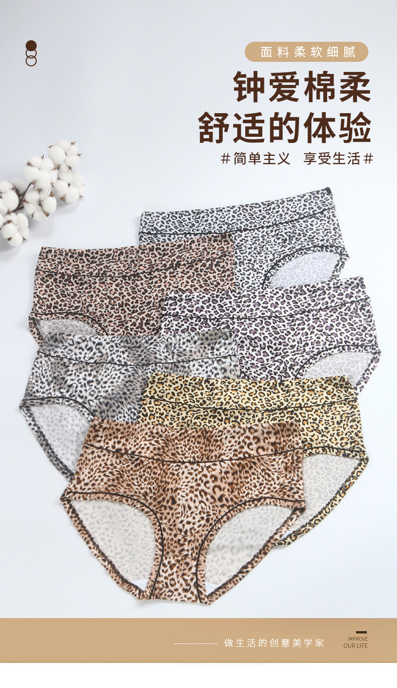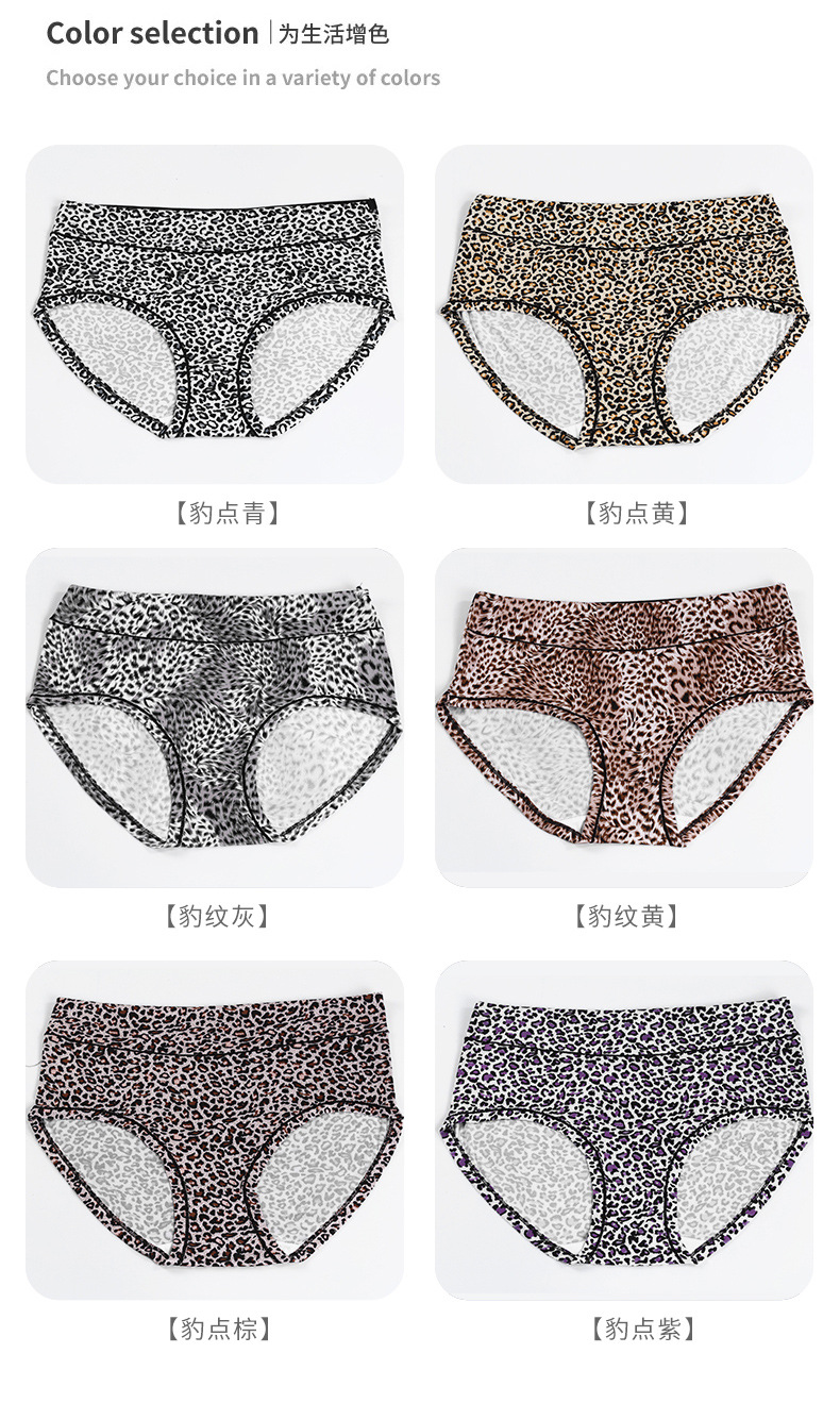 Russian women's underwear, leopard-print large, high-waisted, mid-waisted, breathable, large-sized stretch triangle pants for middle-aged and elderly people